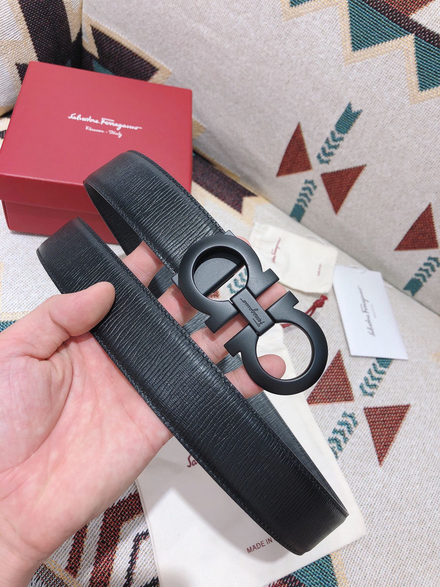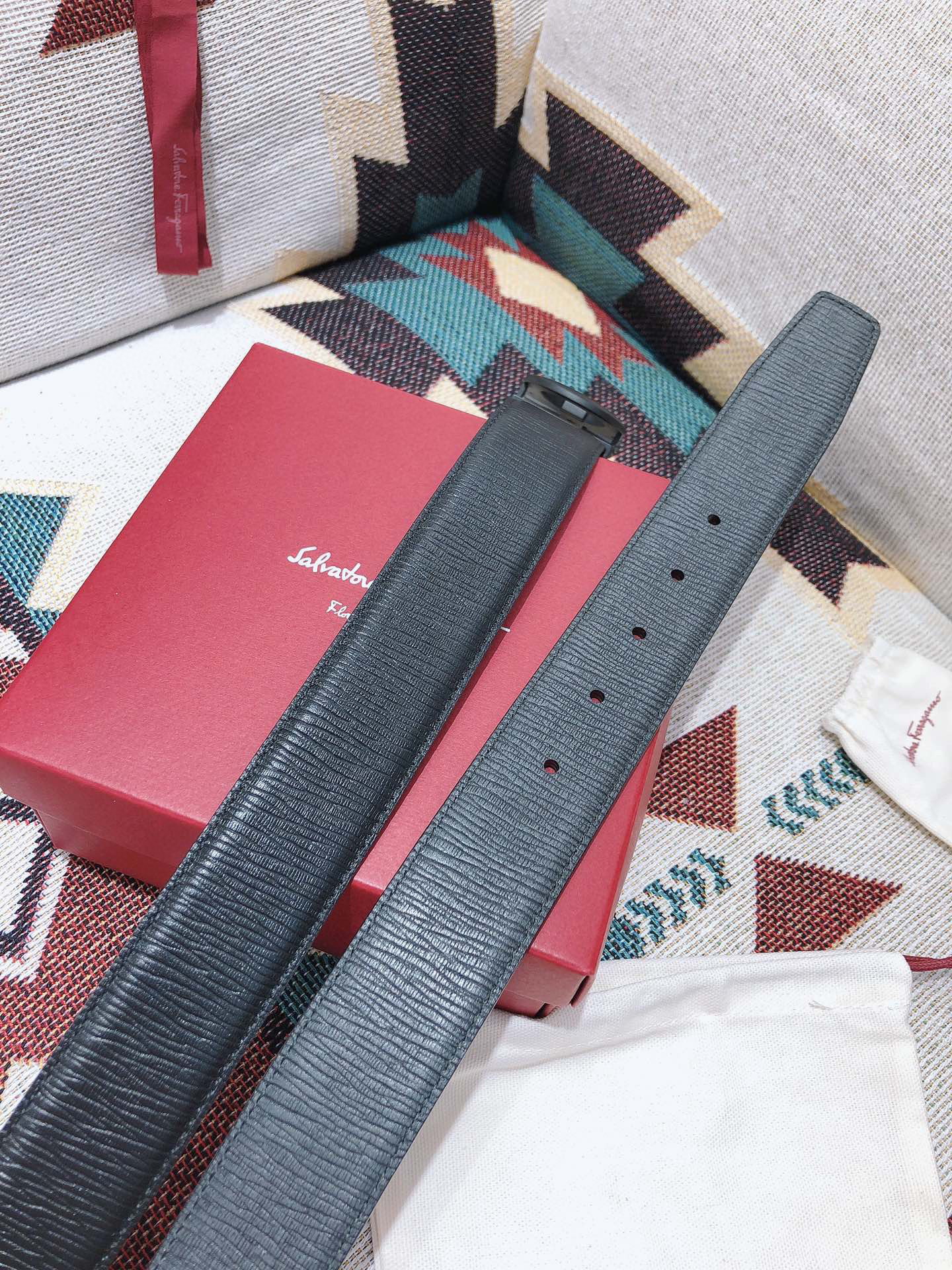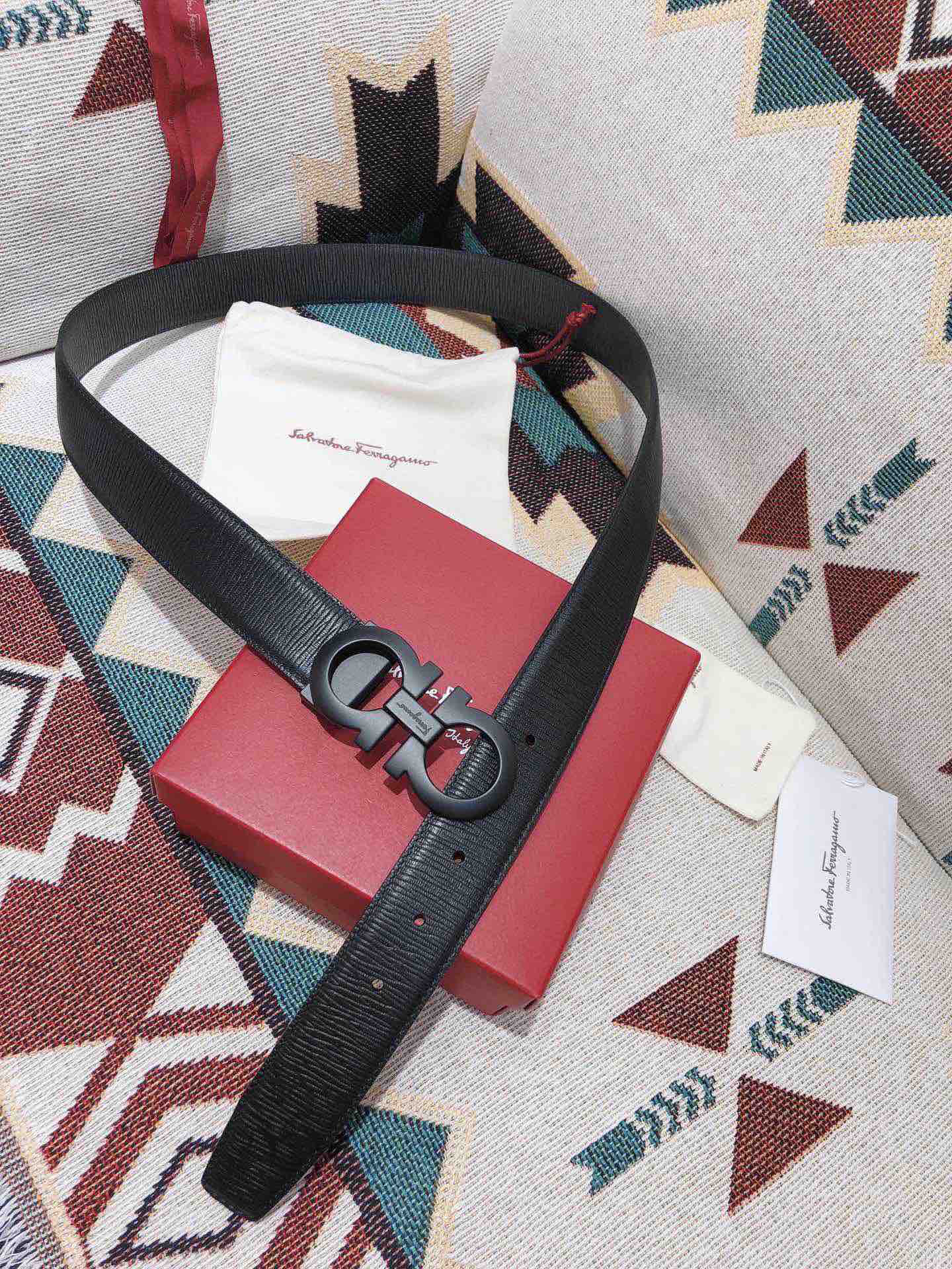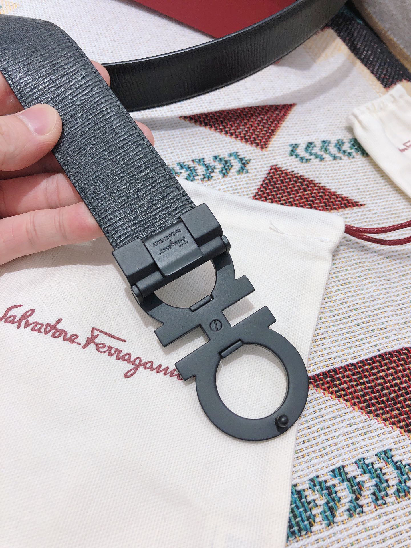 SF菲拉格慕-磨砂黑扣-水波纹