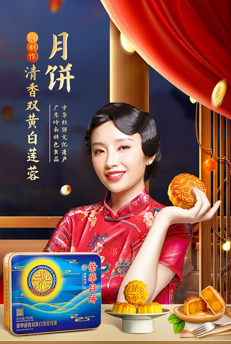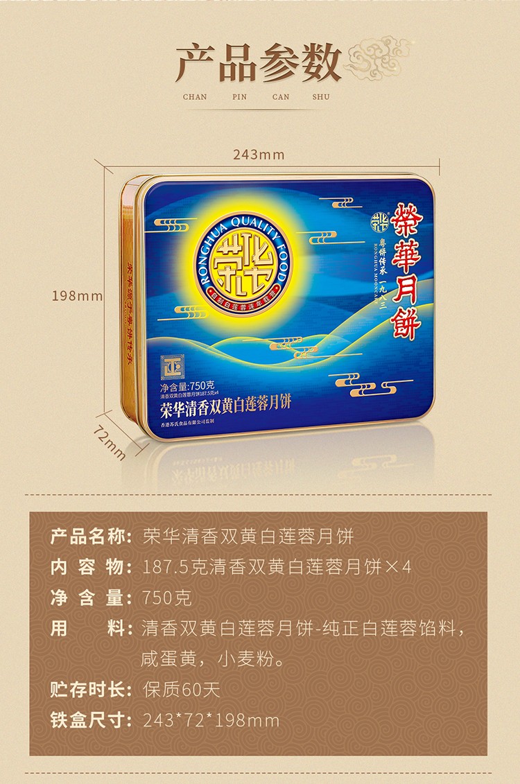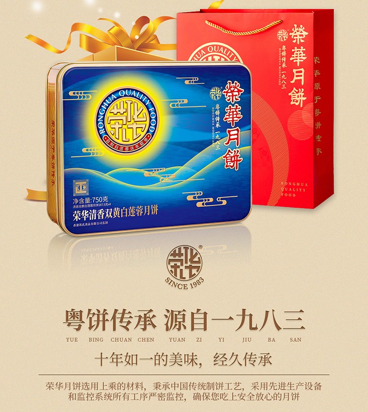 2021荣华 | 清香双黄白莲蓉 中秋月饼礼盒750g*4粒装