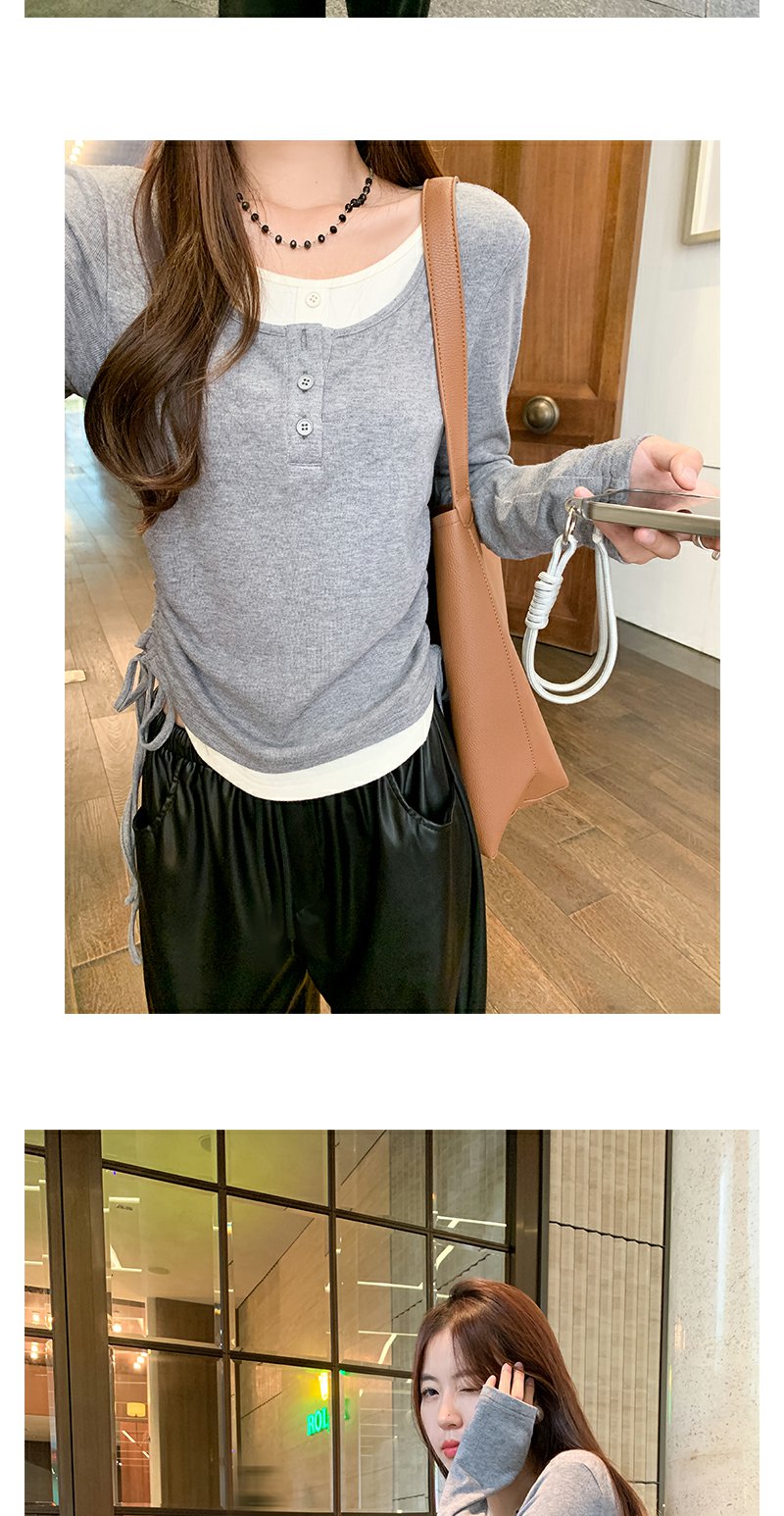 <曾小咸推荐>2色假两件侧边抽绳T恤打底衫 日常119.99 立减50 秒杀69.99!!
