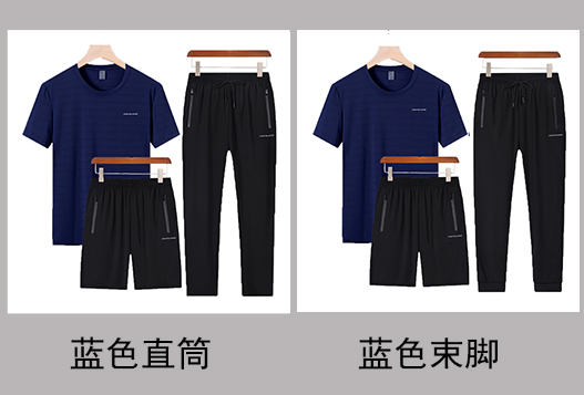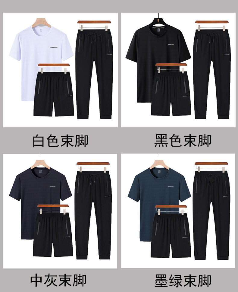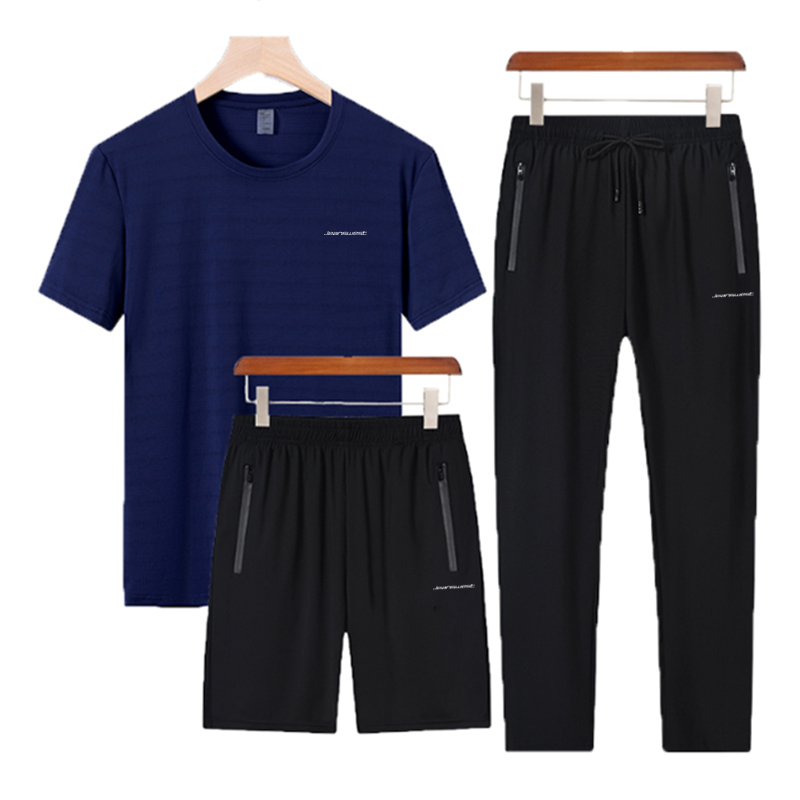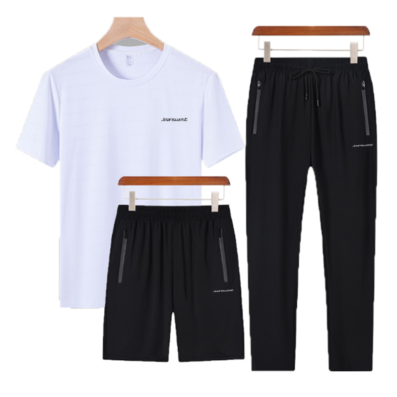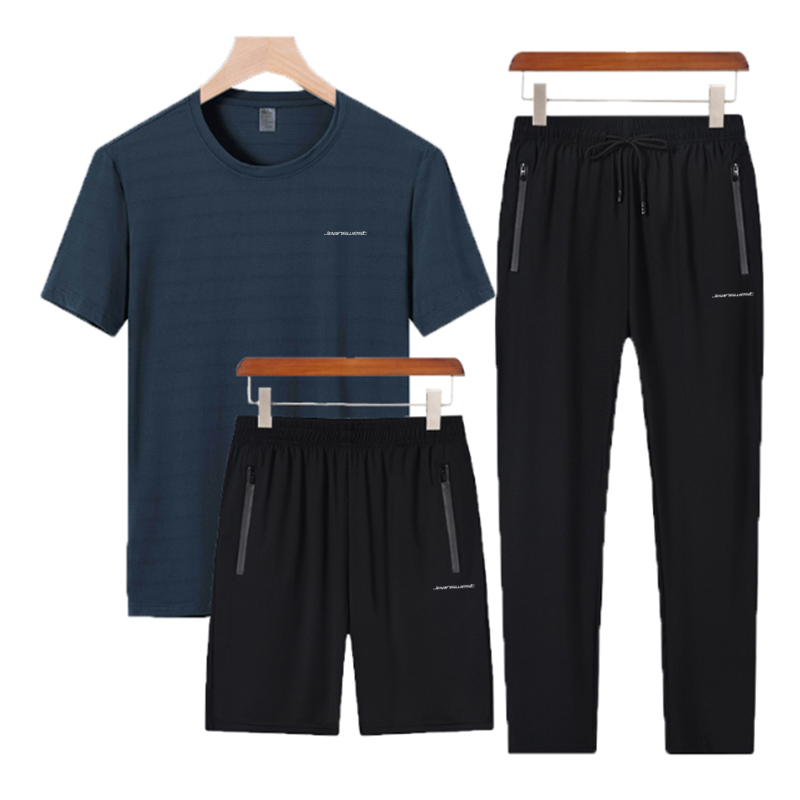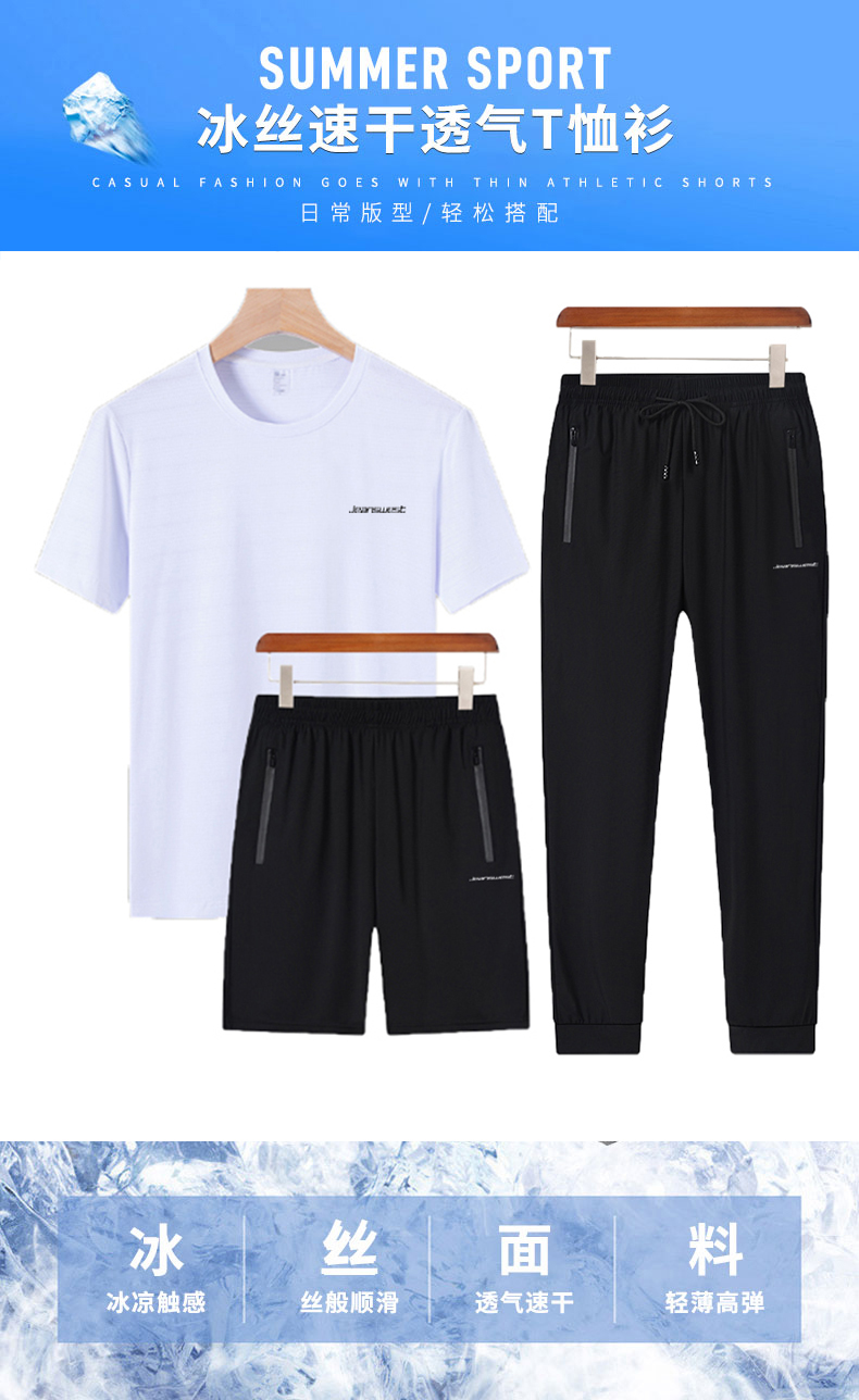 超值套装【拍1发3】真维斯高弹冰丝三件套 冰丝透气 短袖T恤 男士大码运动短裤 速干长裤 男装夏季 多色可选