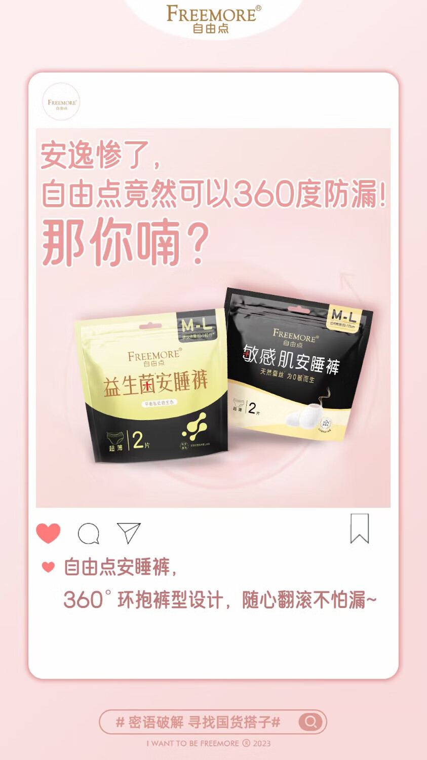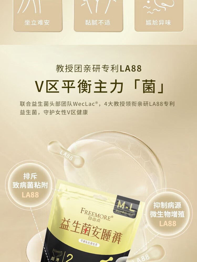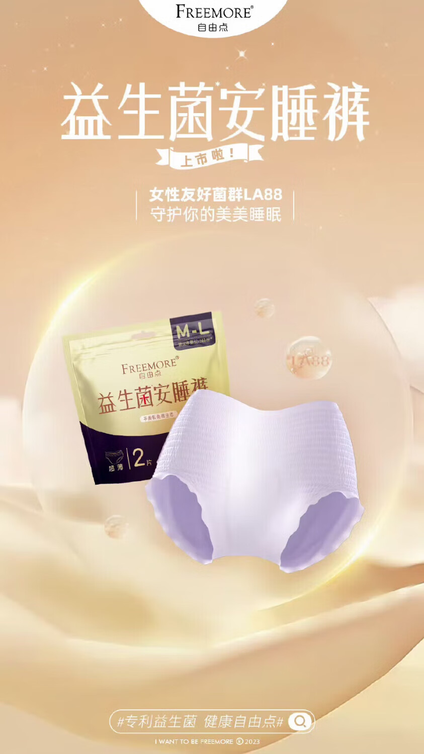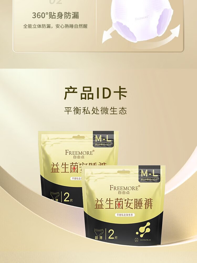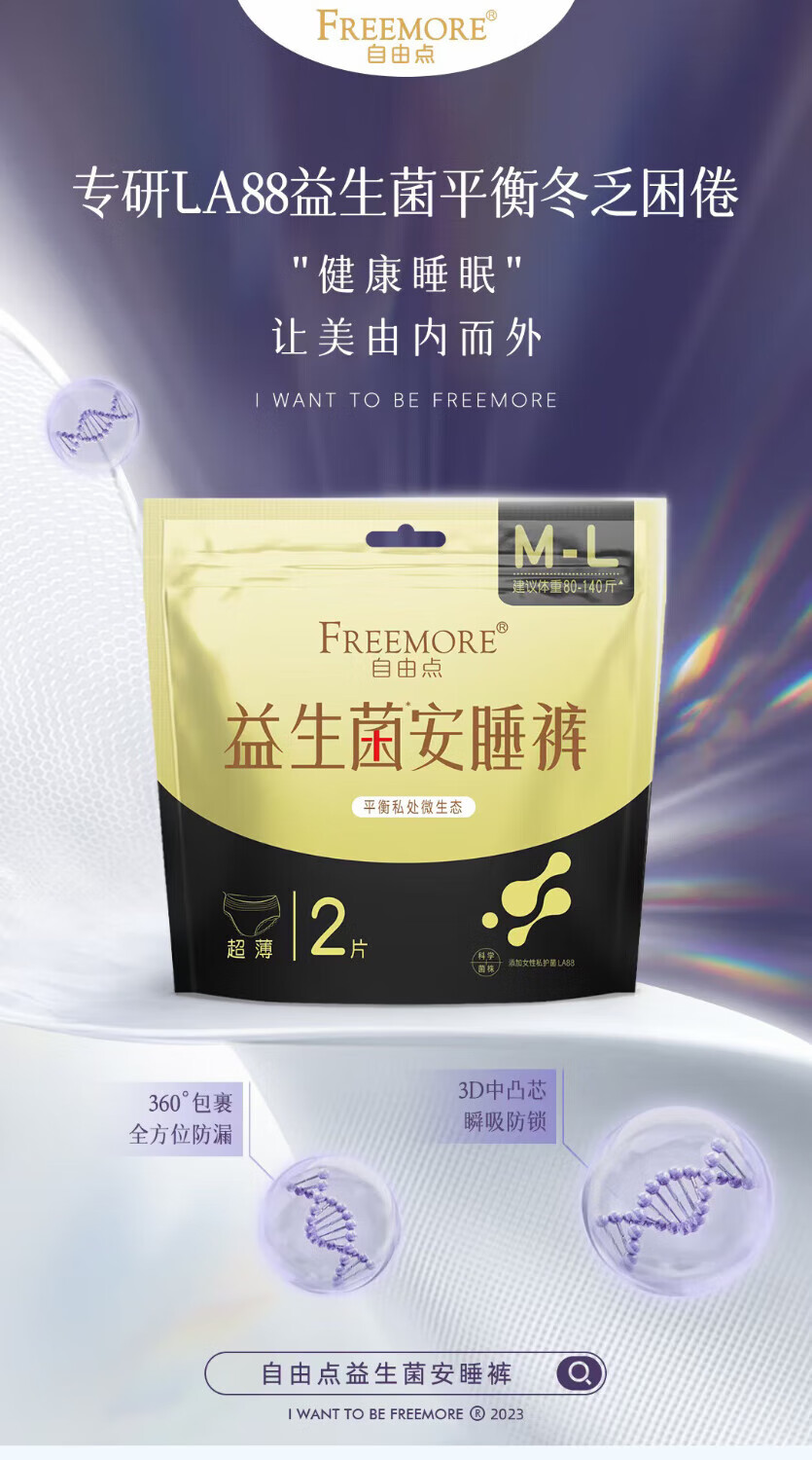 自由点益生菌卫生裤安心睡裤M-L 2片装/包