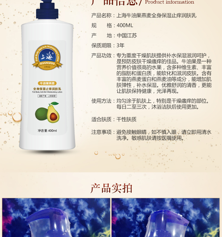 上海牛油果燕麦全身保湿止痒润肤乳400ml