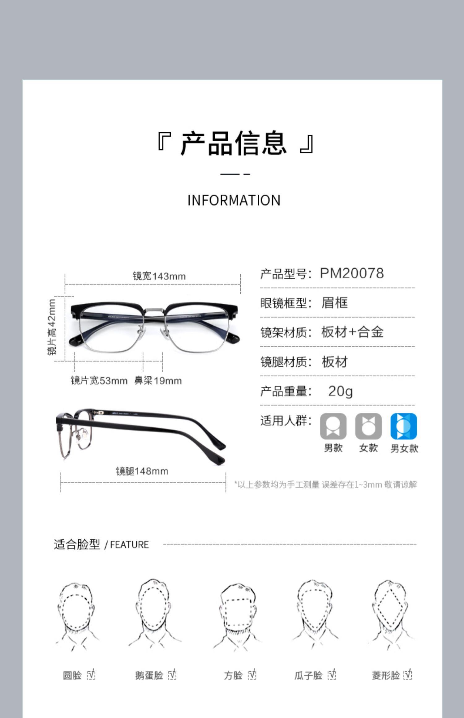 普莱斯PM20078/CH2040眉框 板材+合金/板材+钛 多色可选