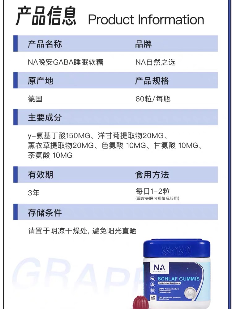 NA睡眠软糖舒压高含量gabo氨基丁酸晚安糖睡眠片缓解焦虑60粒