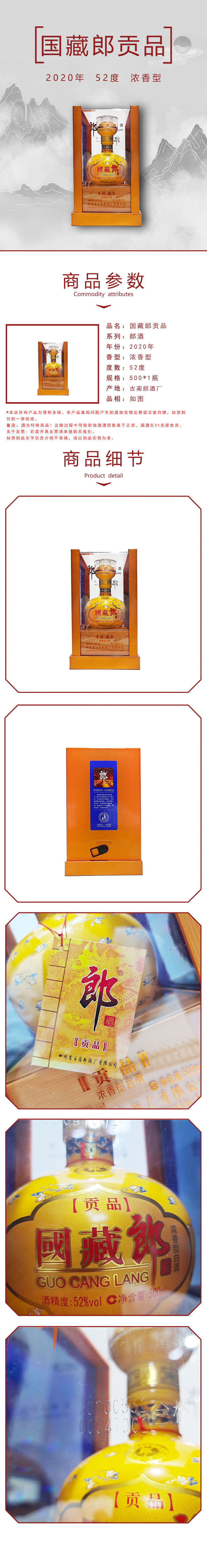 【清仓特价】郎酒国藏郎.贡品52度500ml*1瓶 外包装有损坏/瑕疵 不影响酒质 介意勿拍(2号仓发货)
