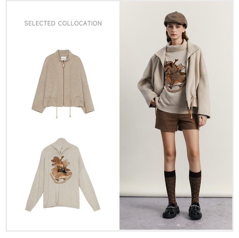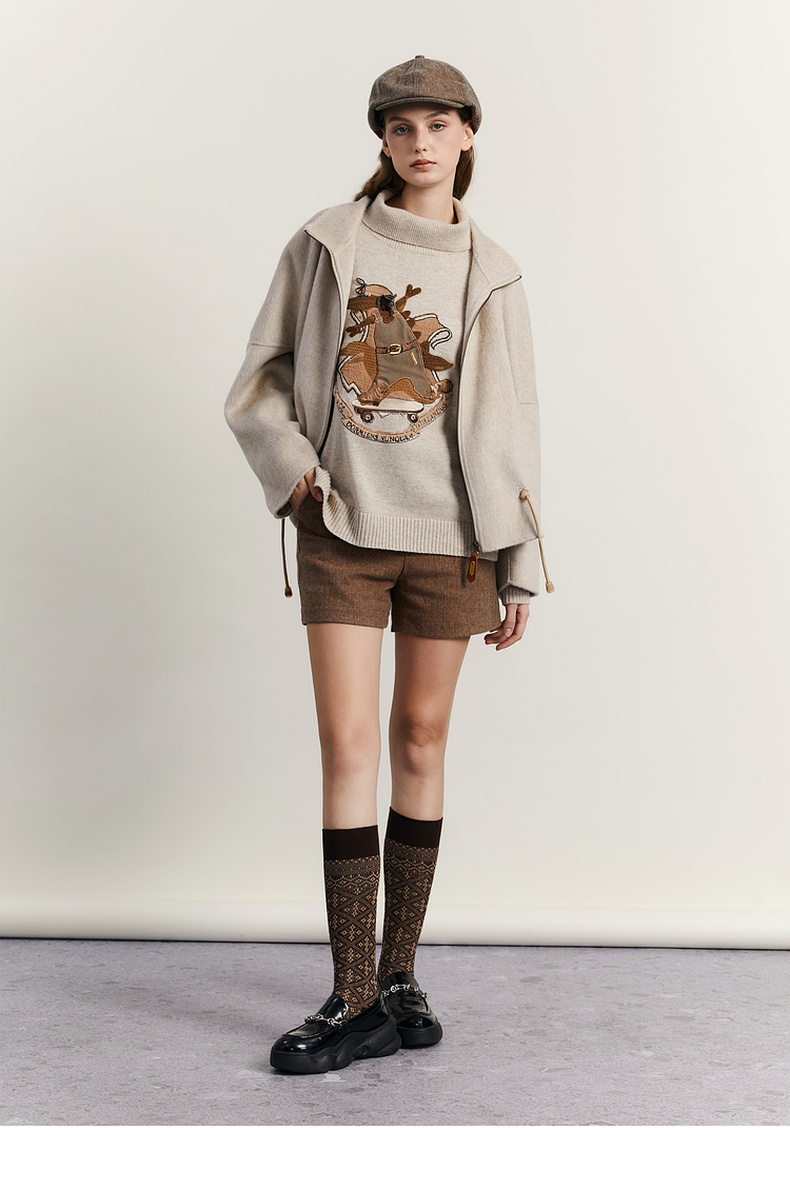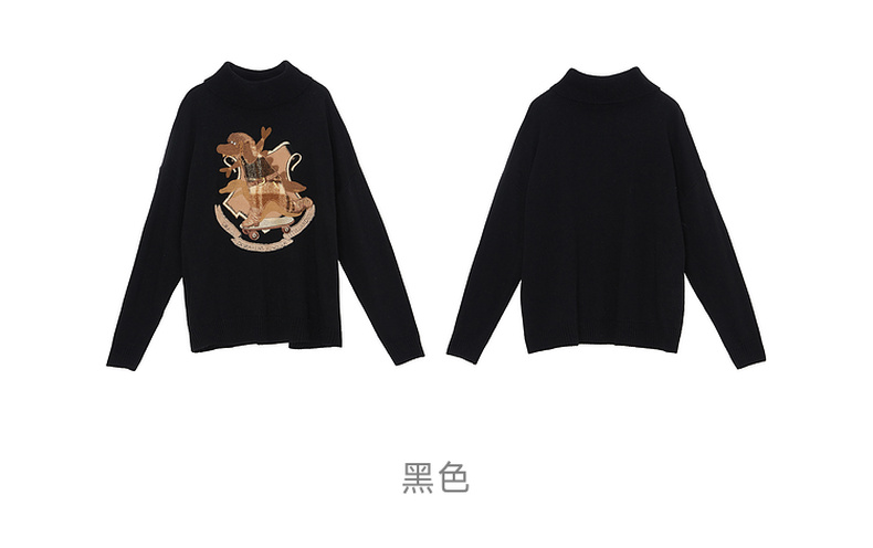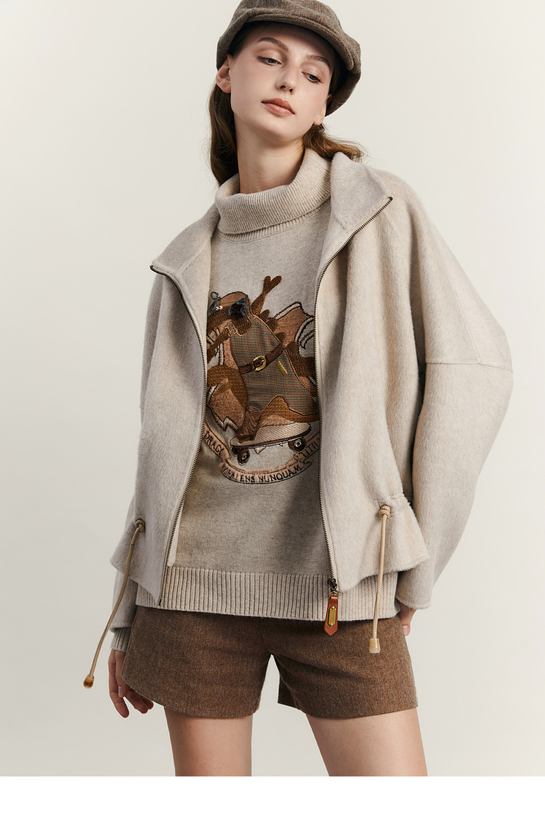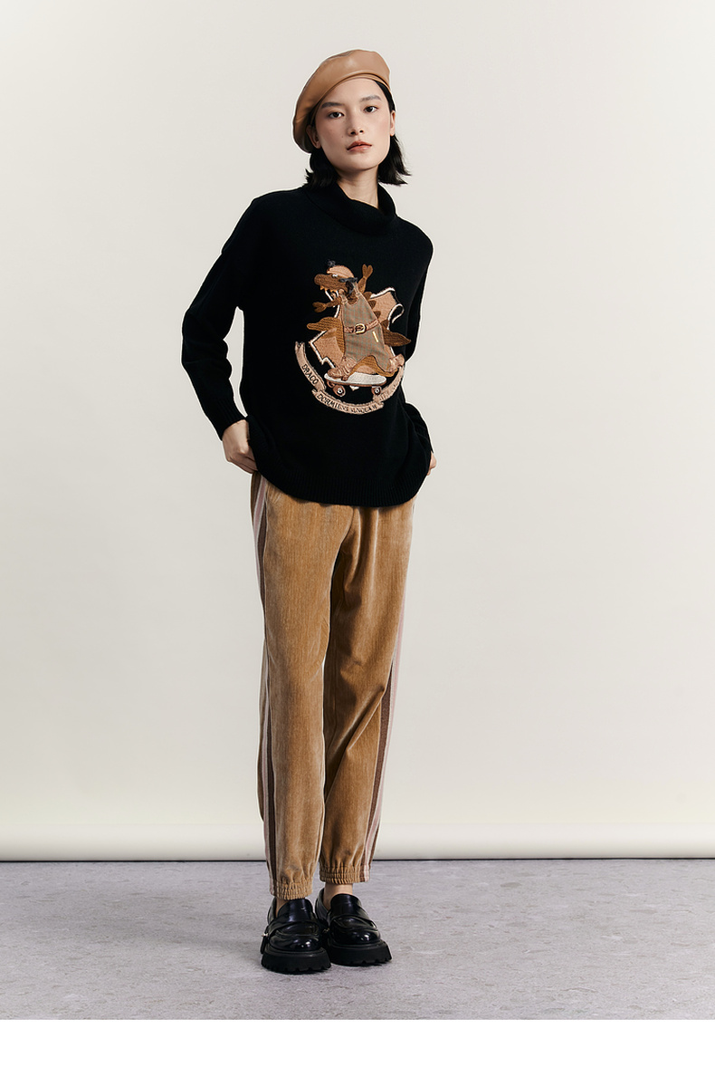 谜底高领针织衫女2023冬新品复古文艺绣花套头宽松毛衣234MZ1877