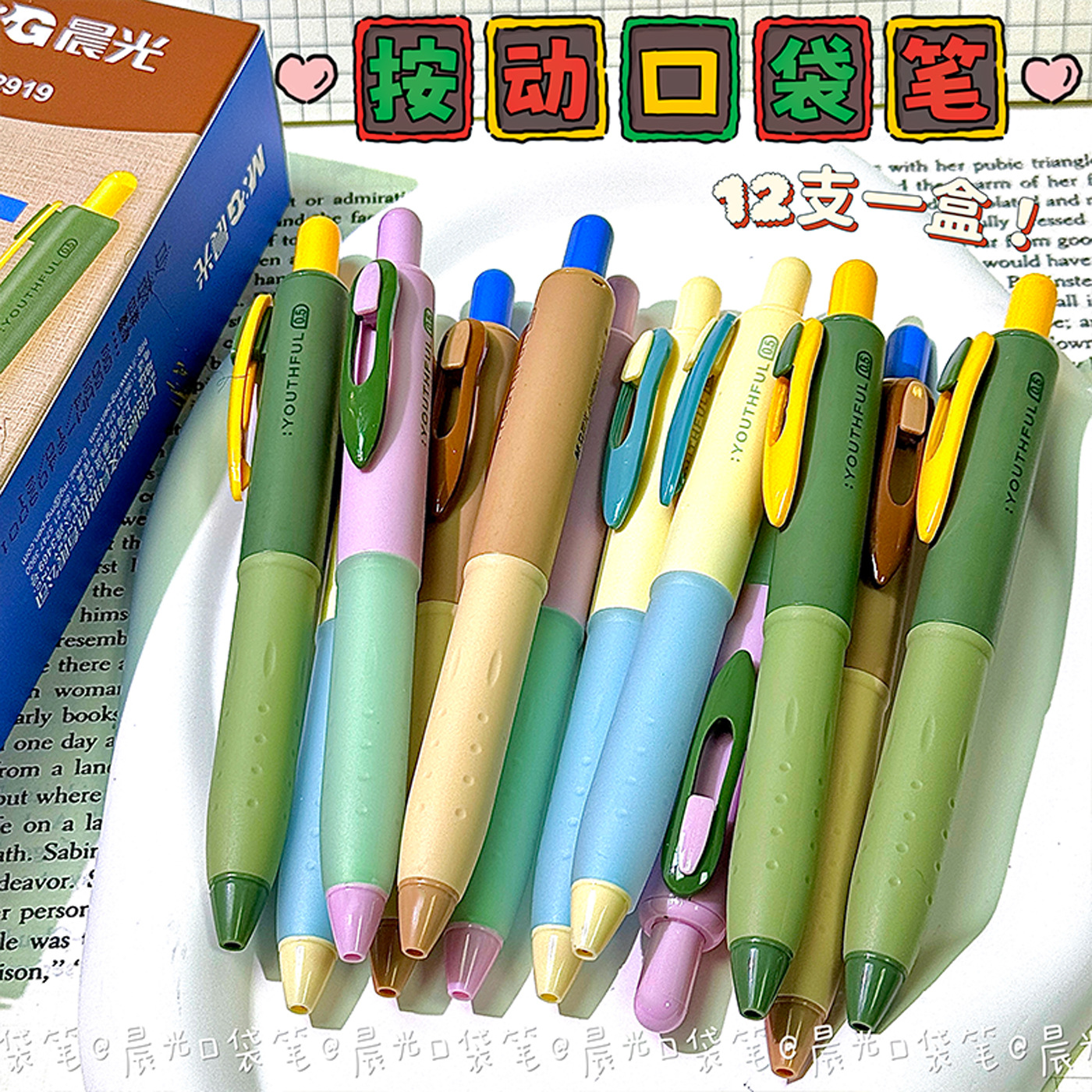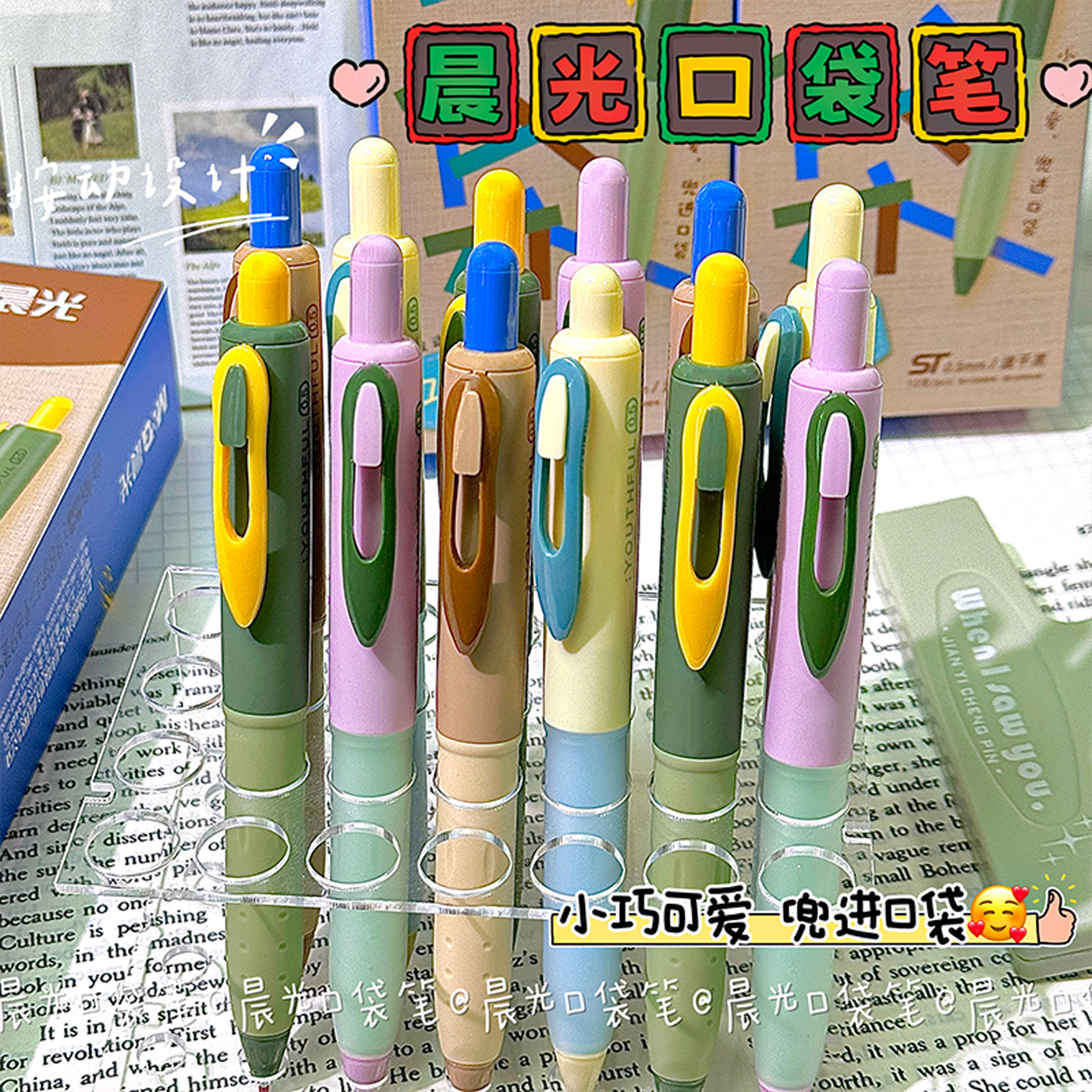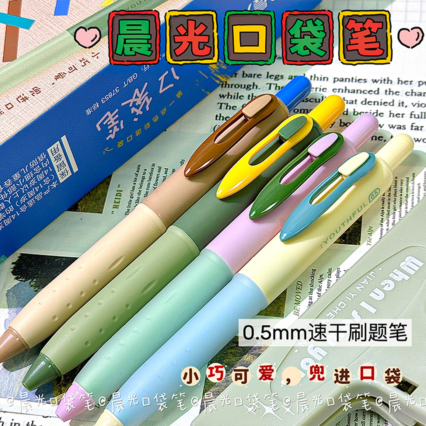 【敲好写的口袋笔】晨光0.5速干按动笔,小巧便携,随手一夹就出门!晨光按动中性笔口袋笔 学生用迷你速干按动st刷题笔🎒学生党人手必备✨