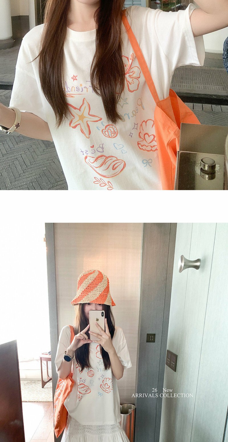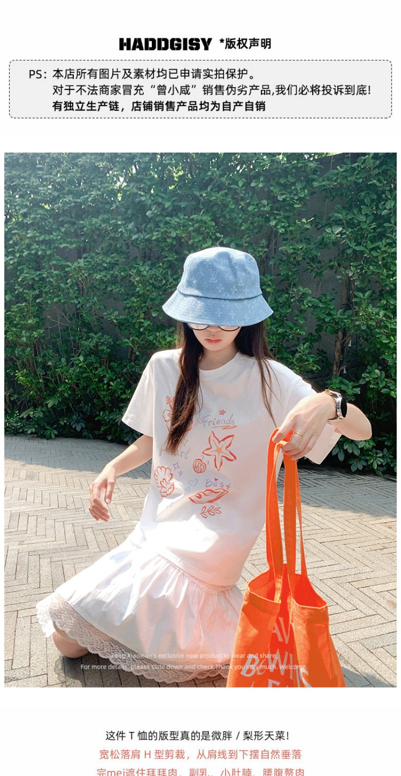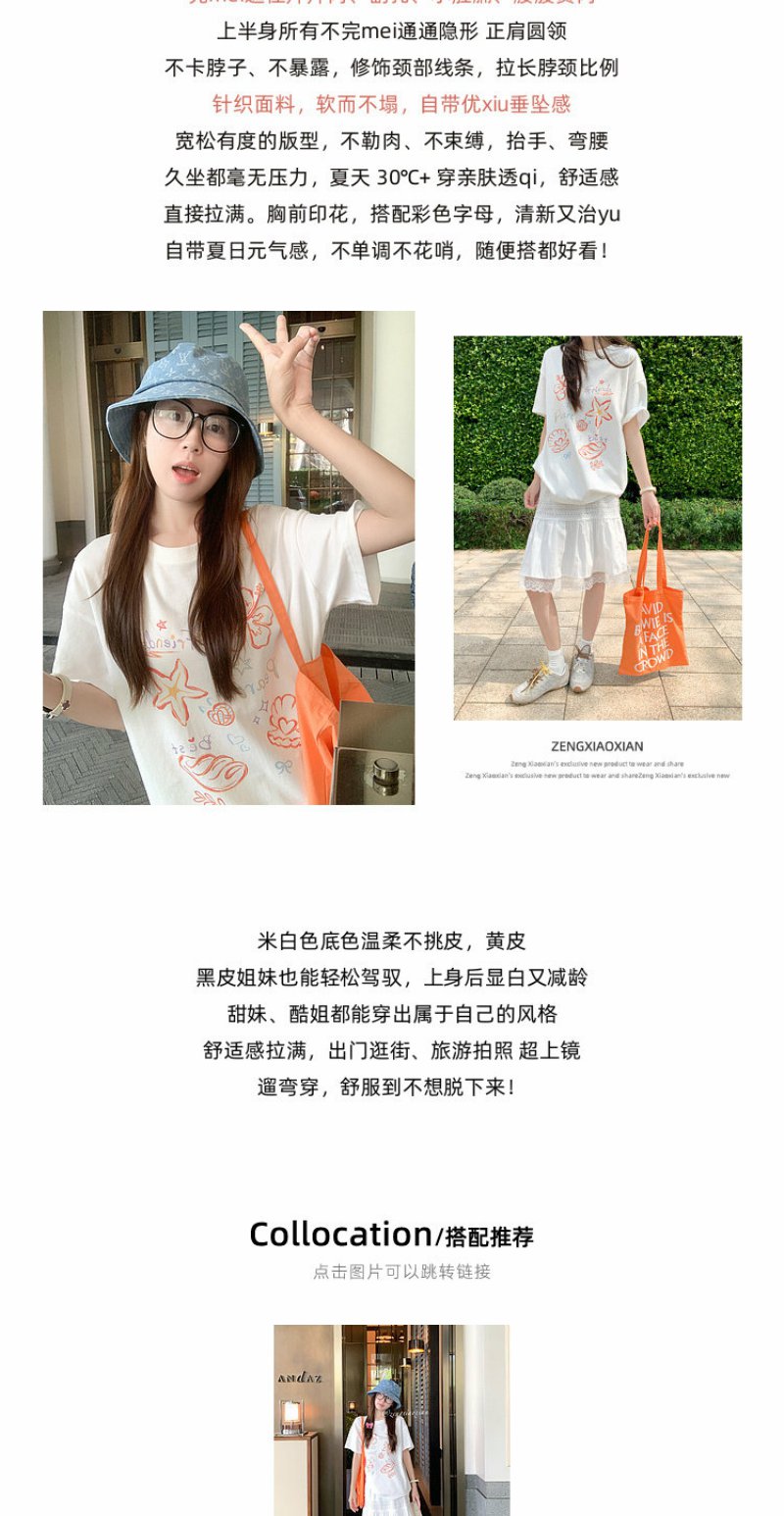 <曾小咸推荐>米白色宽松圆领印花短袖T恤【预售款,预计3-15天!!】