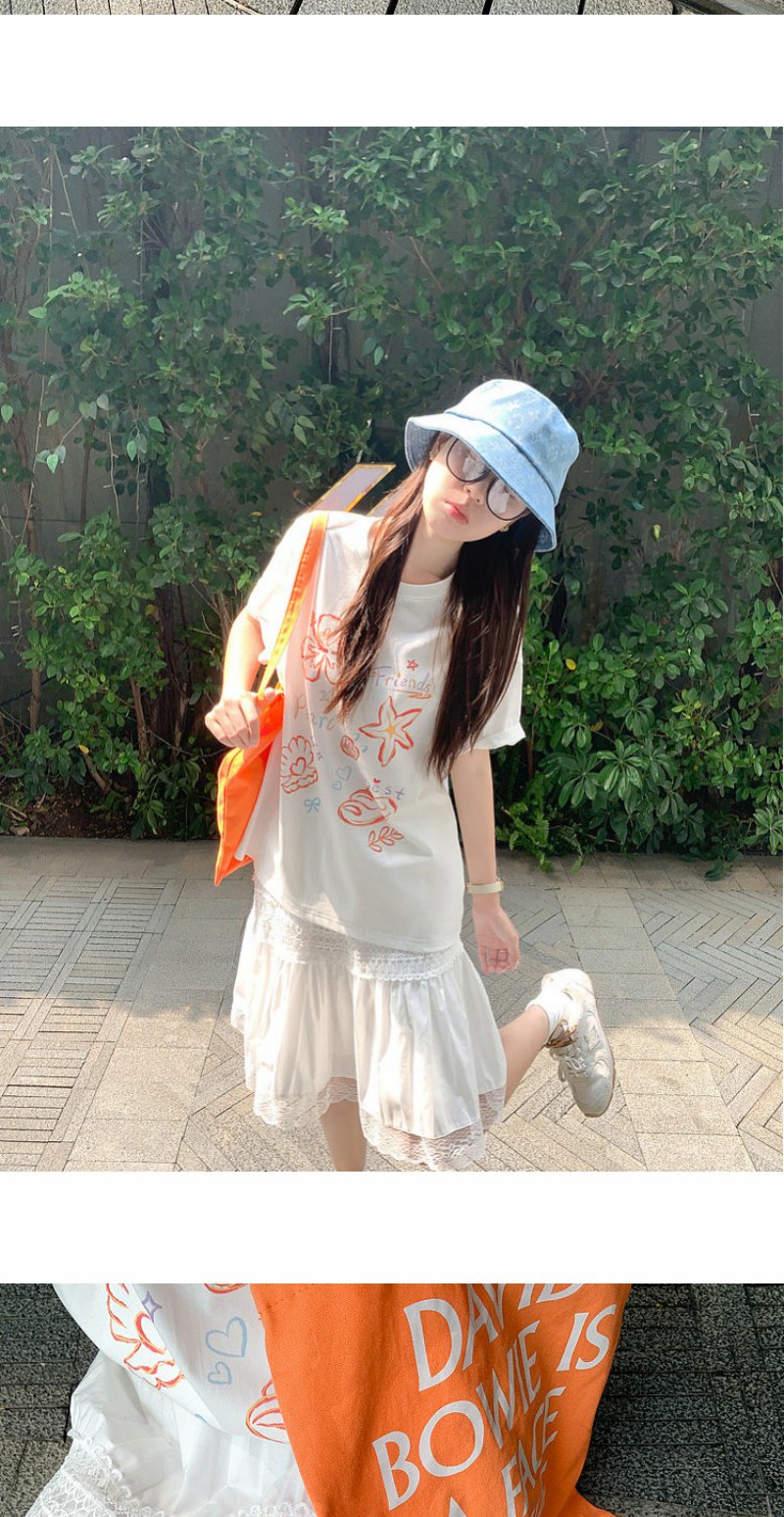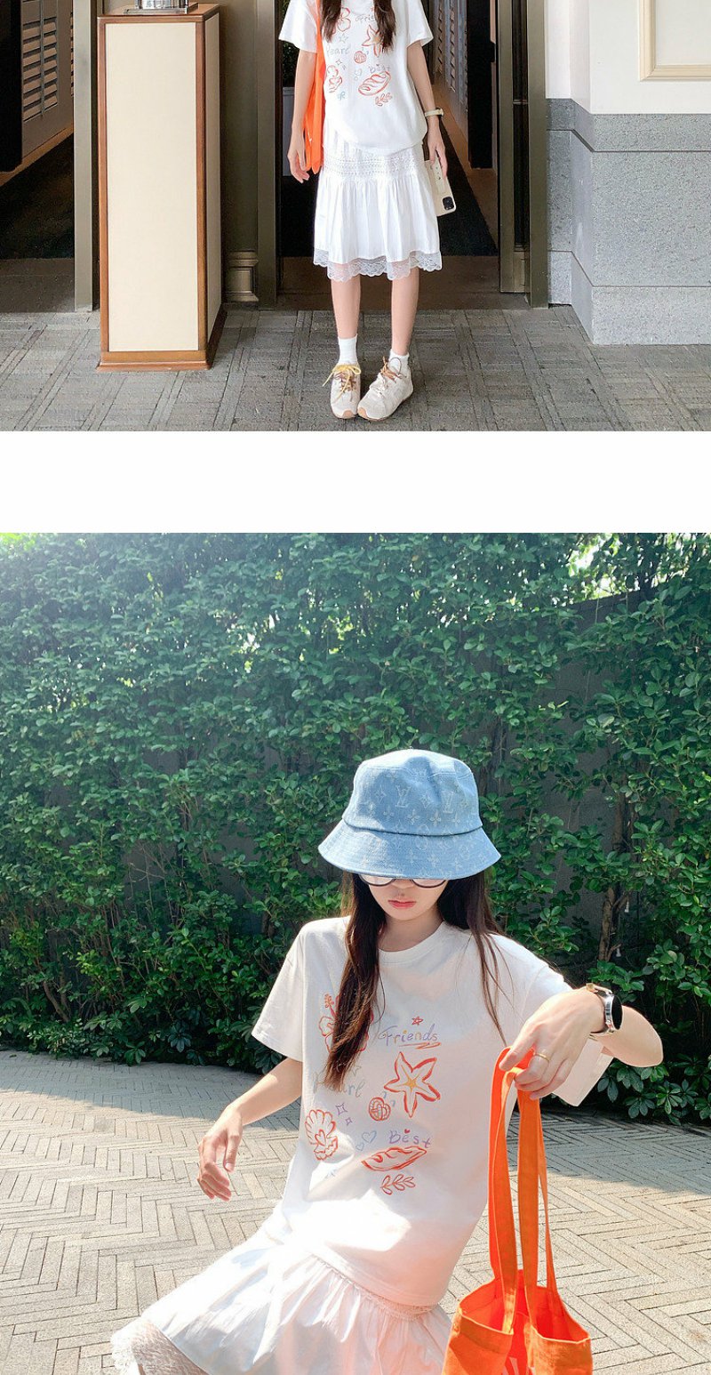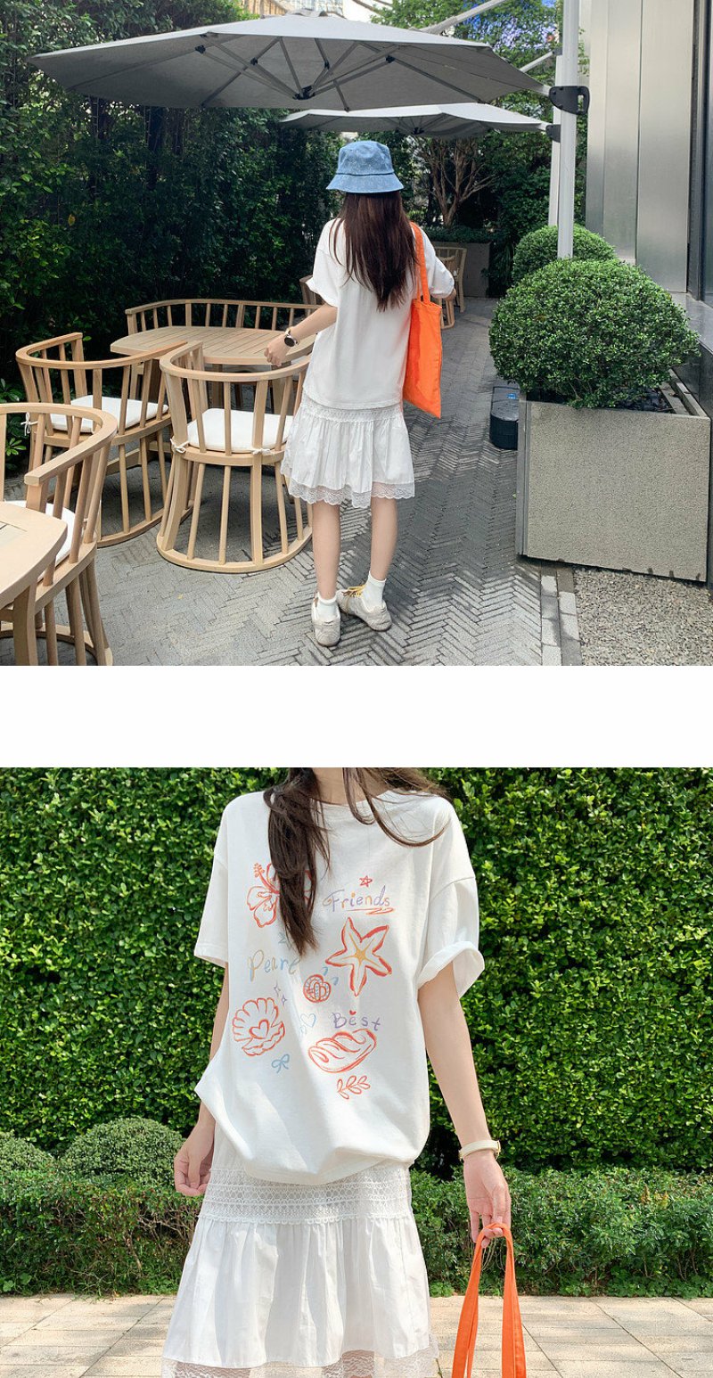 <曾小咸推荐>米白色宽松圆领印花短袖T恤【预售款,预计3-15天!!】
