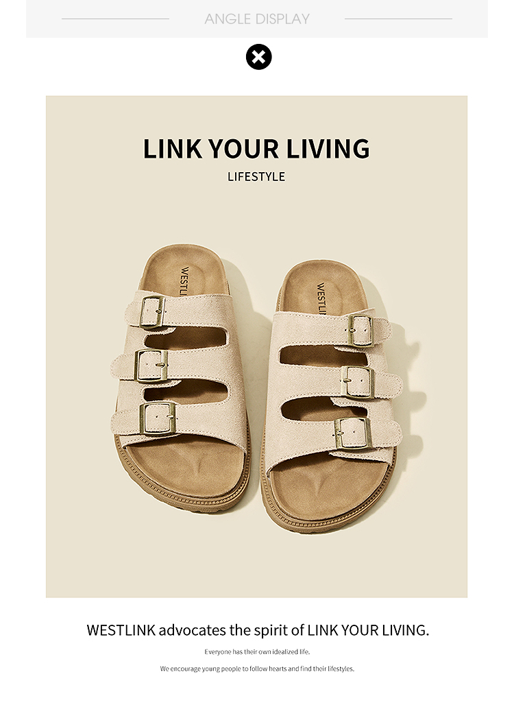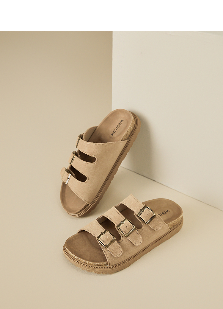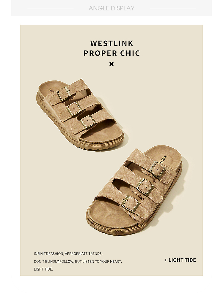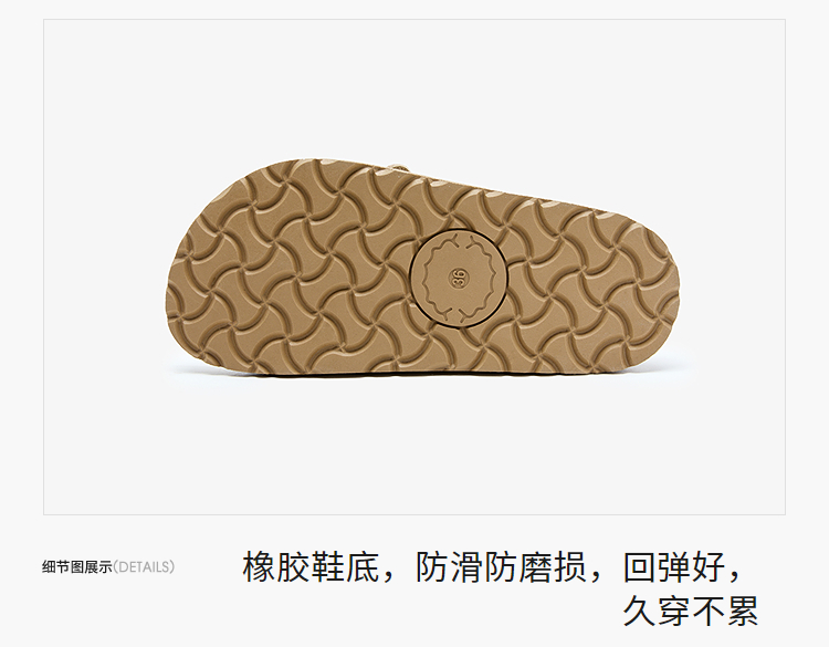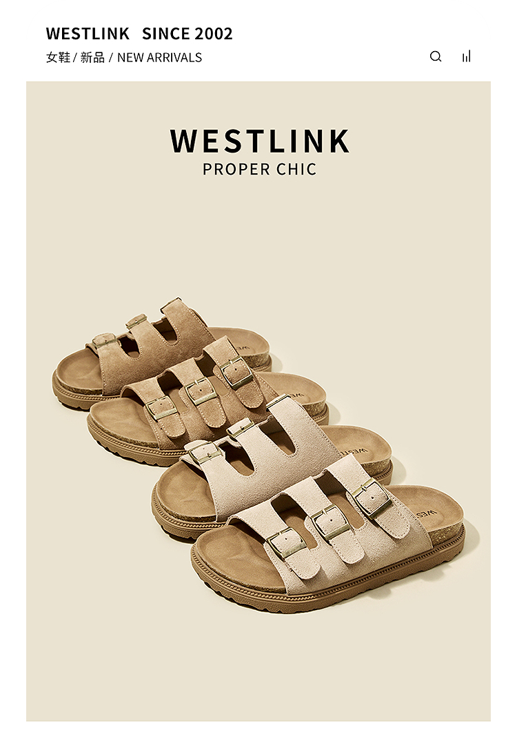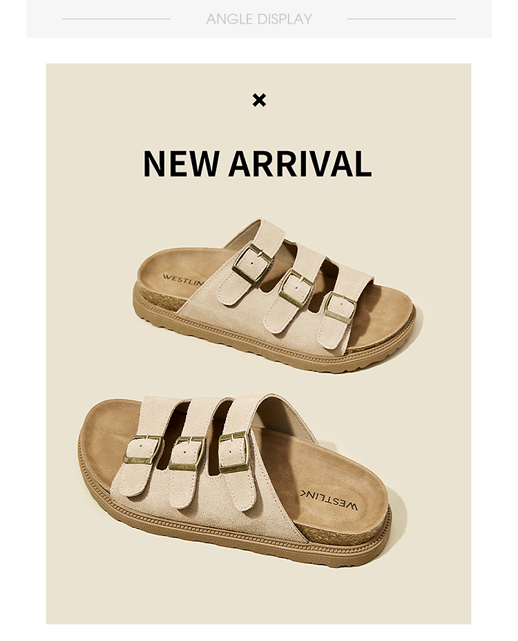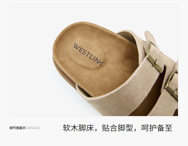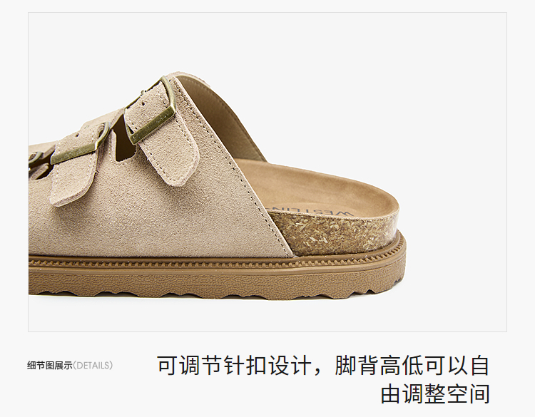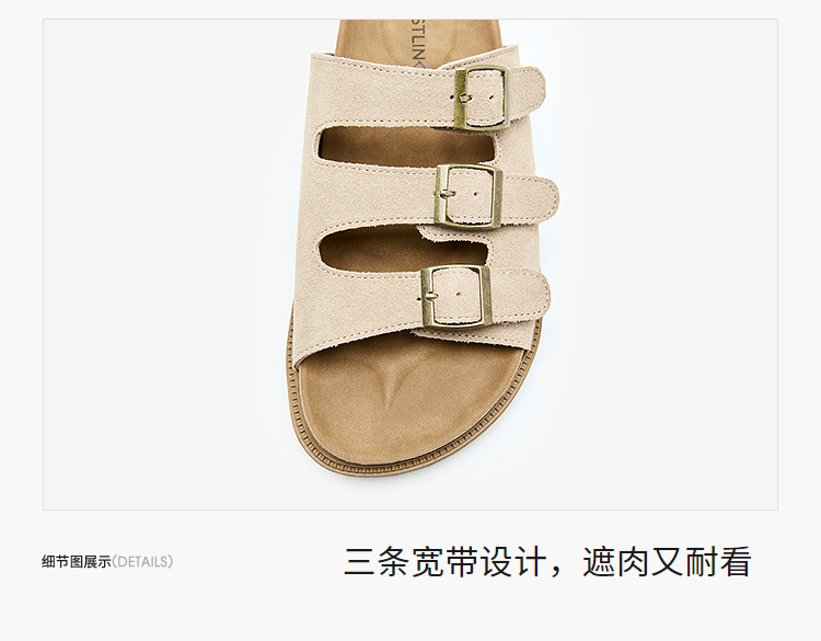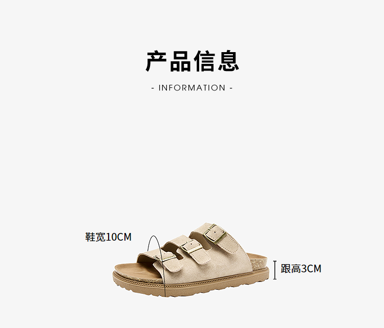 西遇勃肯凉拖鞋女夏外穿新款海边复古凉鞋厚底一字带软木拖鞋V0156588