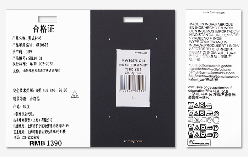 TOMMY 长袖衬衫男 MW30675-DW5 藏青色.