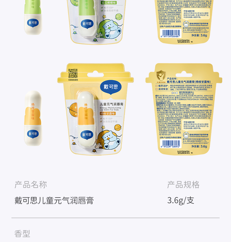 【果壳 推荐】戴可思儿童元气润唇膏 8h高效保湿 甜润嘟嘟唇 3岁+