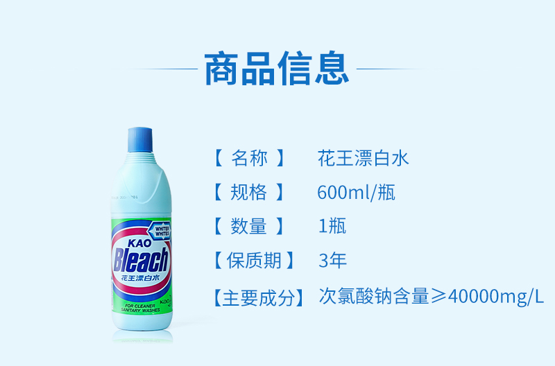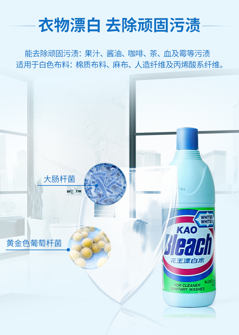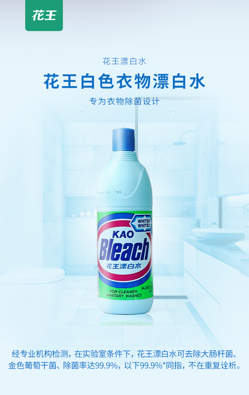 【特惠】花王(KAO)漂白水600ml(白色衣物可用 强力去渍去异味 杀菌率99.999% )