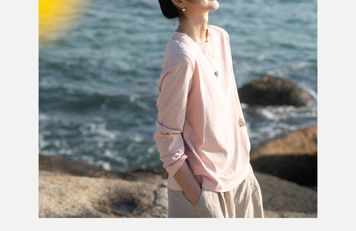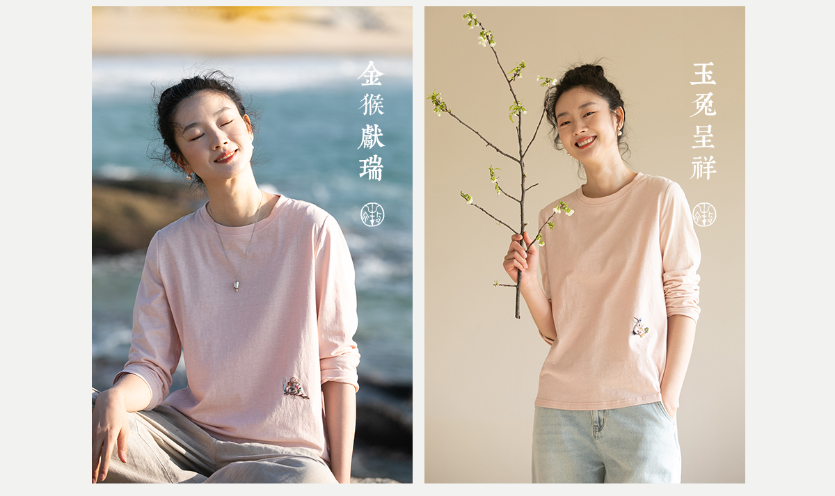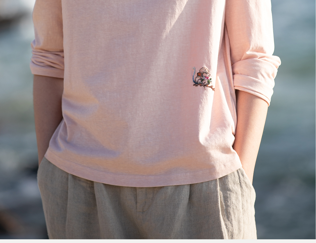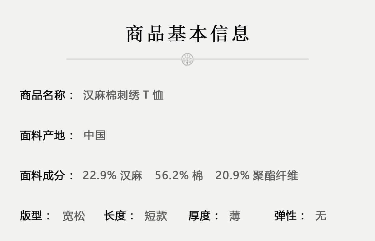 牧衣游原创 汉麻棉手工刺绣T恤限量福利款 叶纺【不支持会员折】