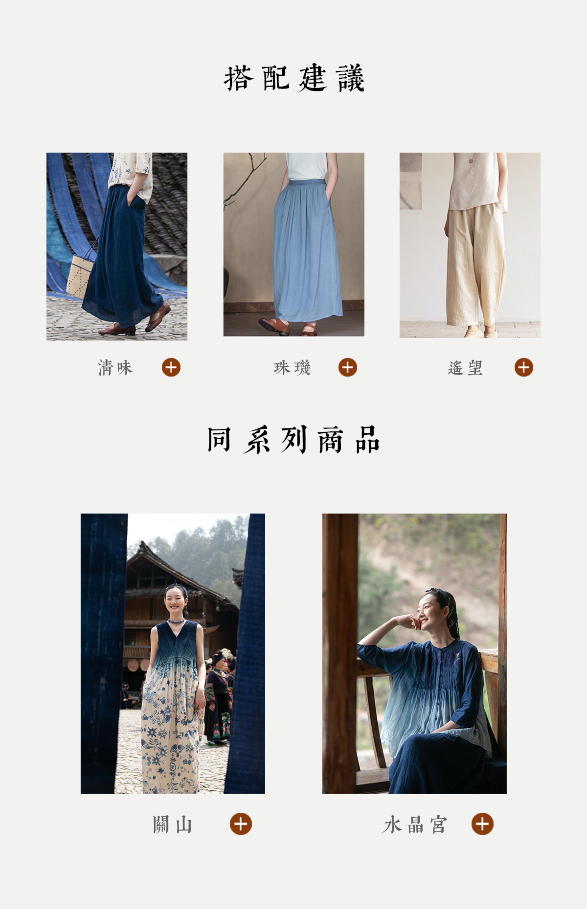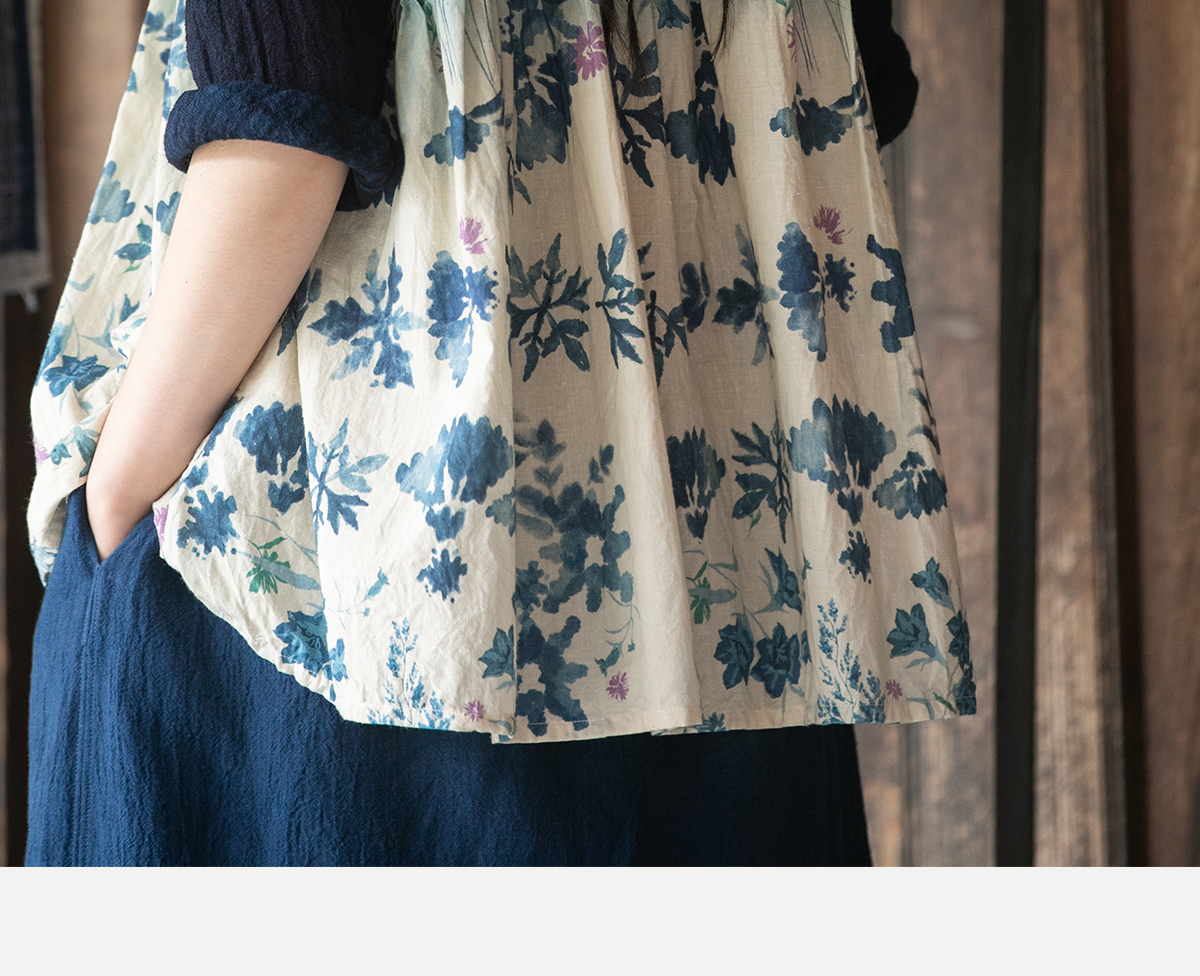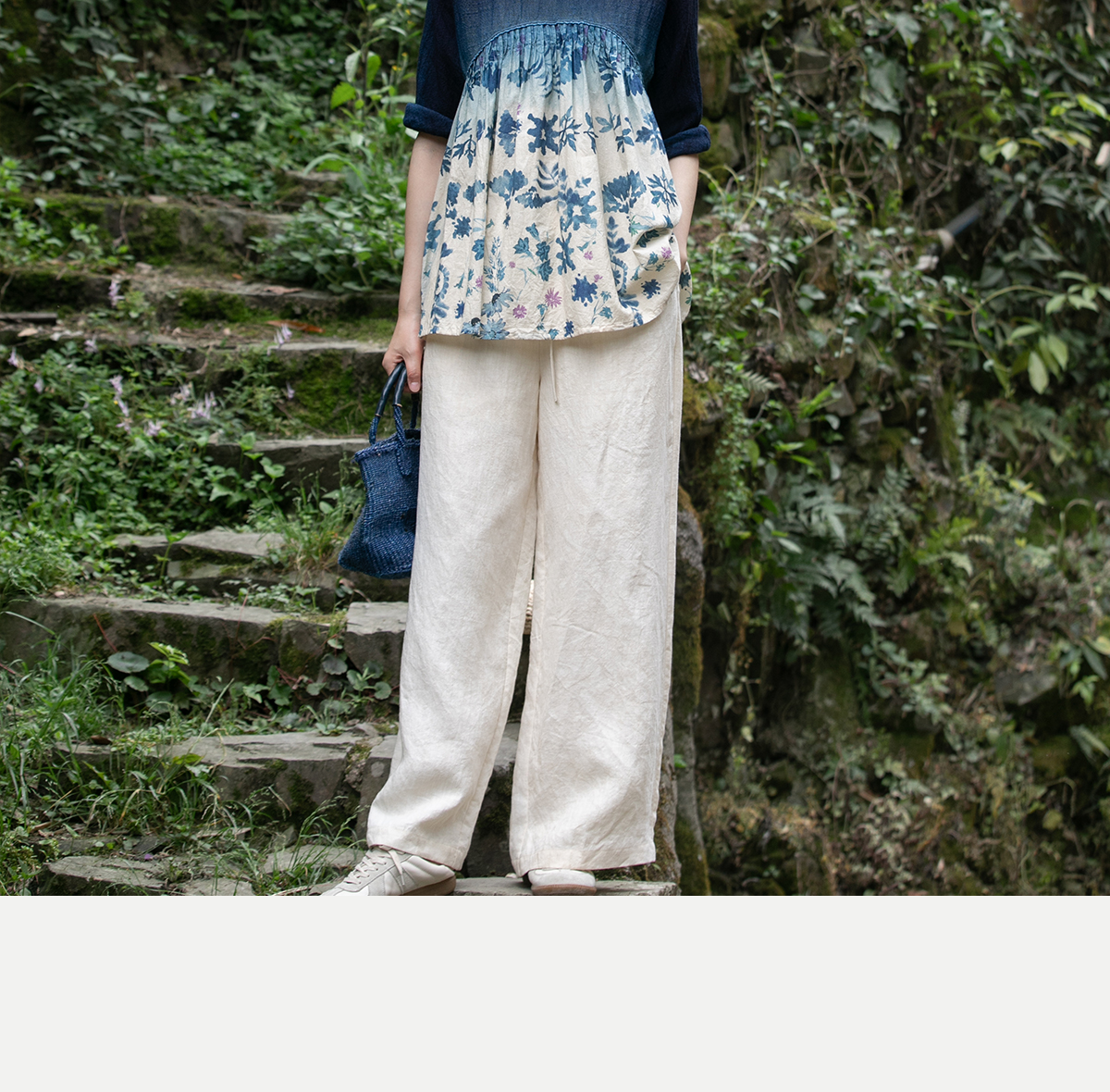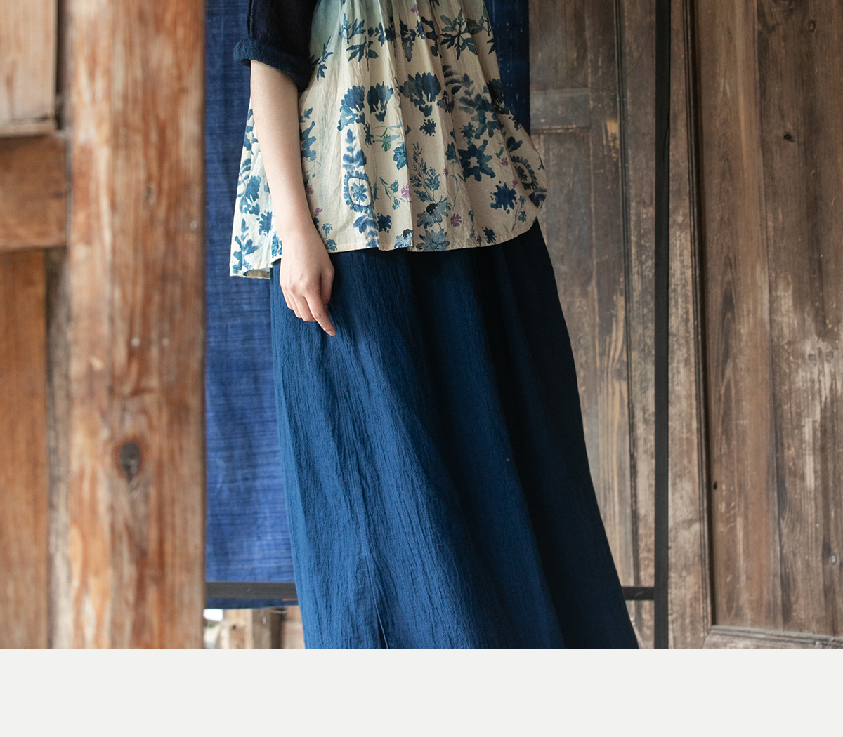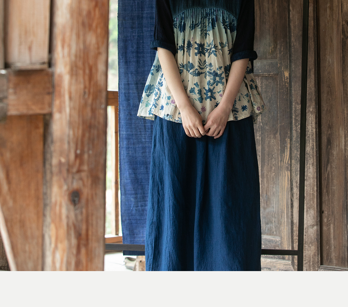 牧衣游原创 吊染蓝染印花亚麻套头衫渐变质朴复古文艺上衣 山水青