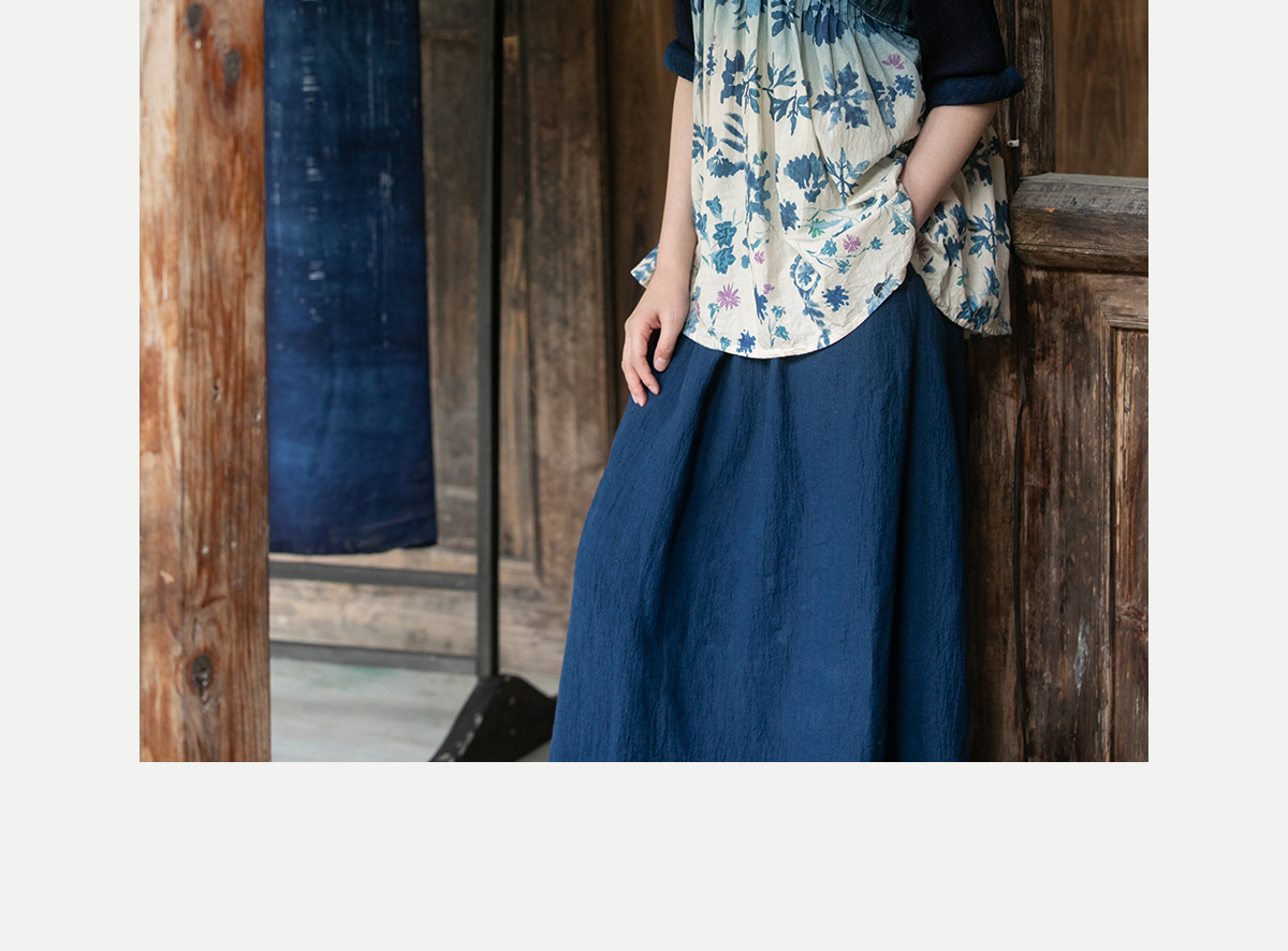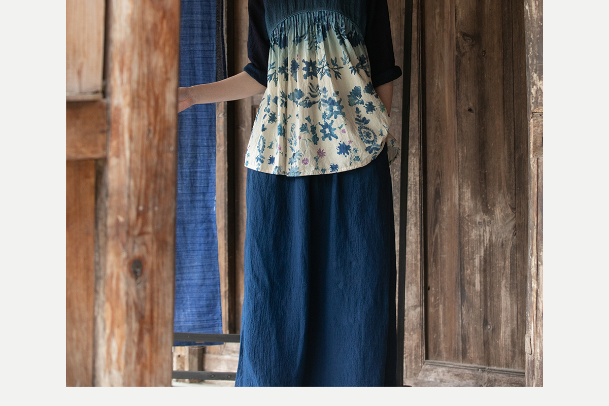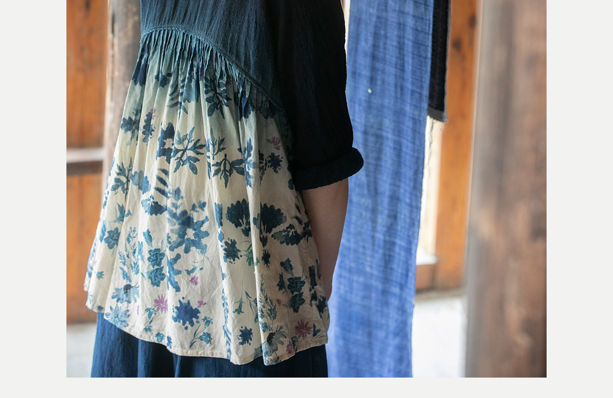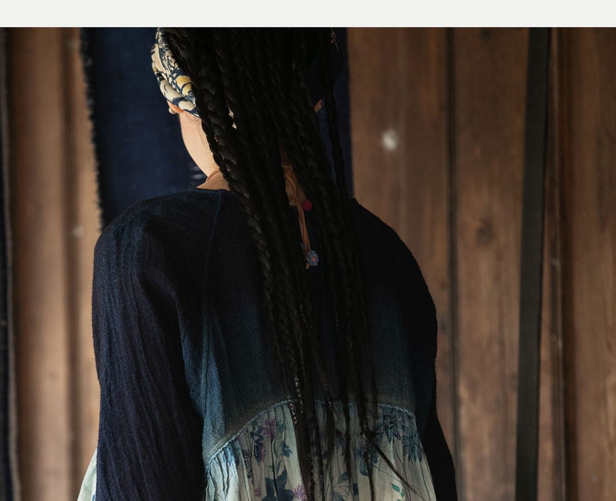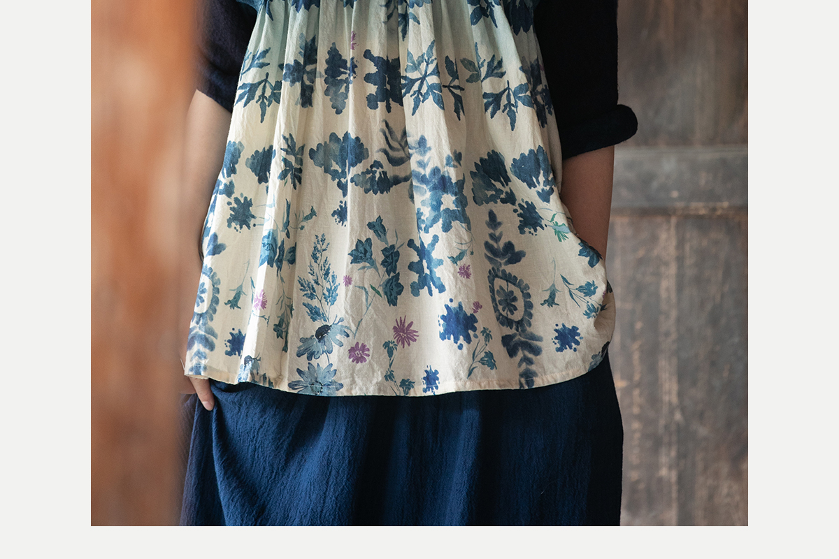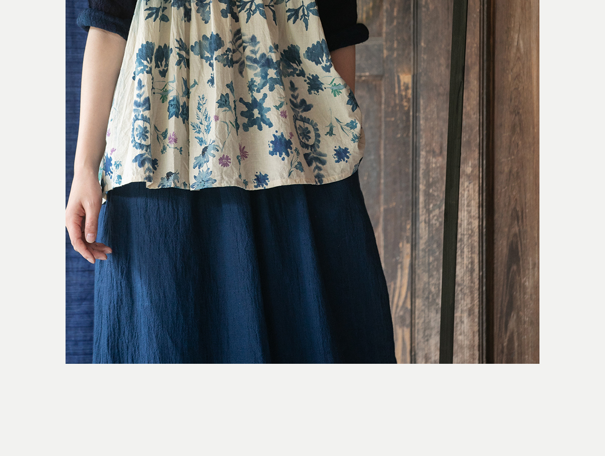 牧衣游原创 吊染蓝染印花亚麻套头衫渐变质朴复古文艺上衣 山水青