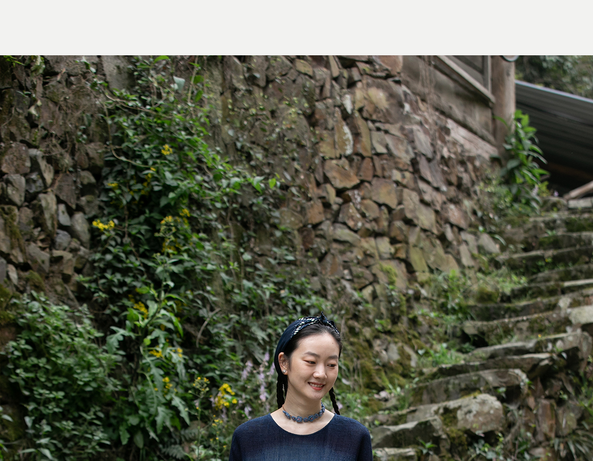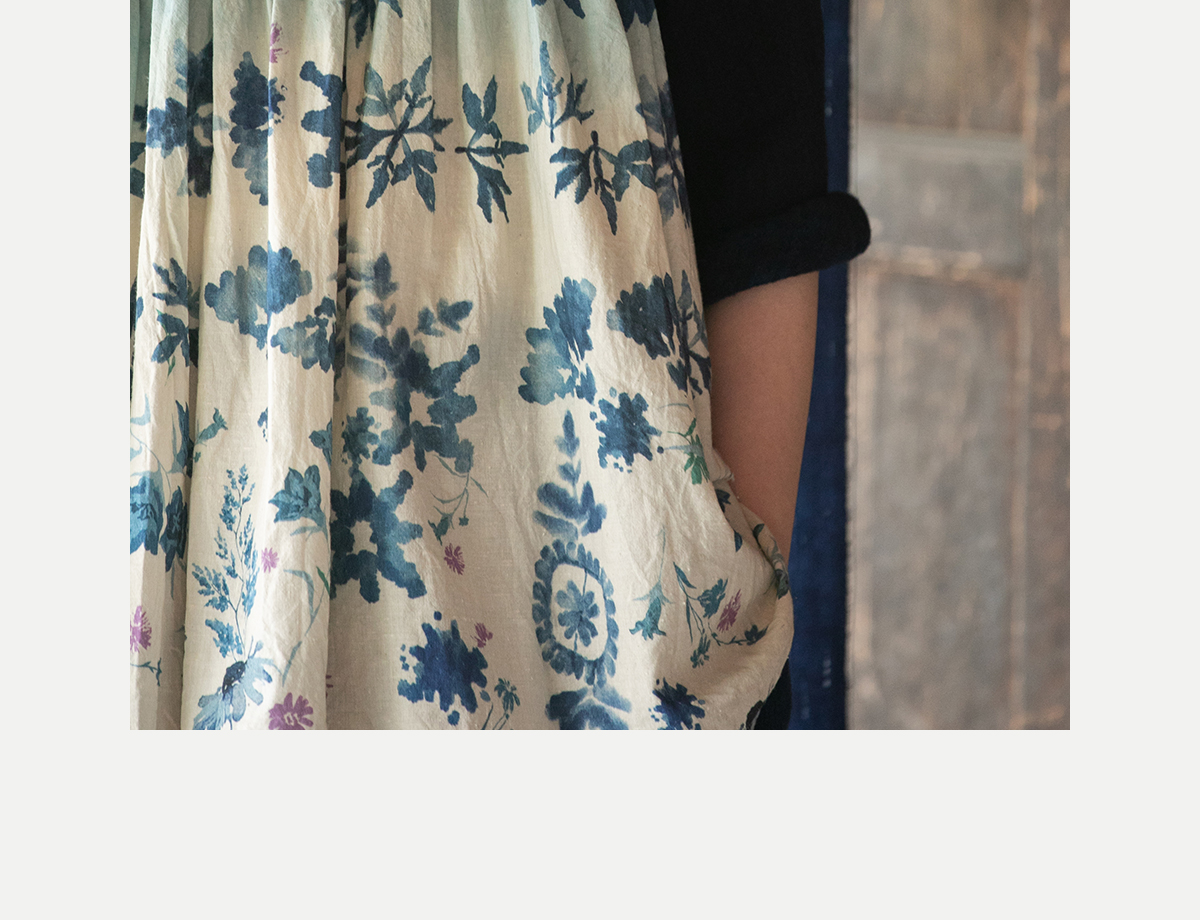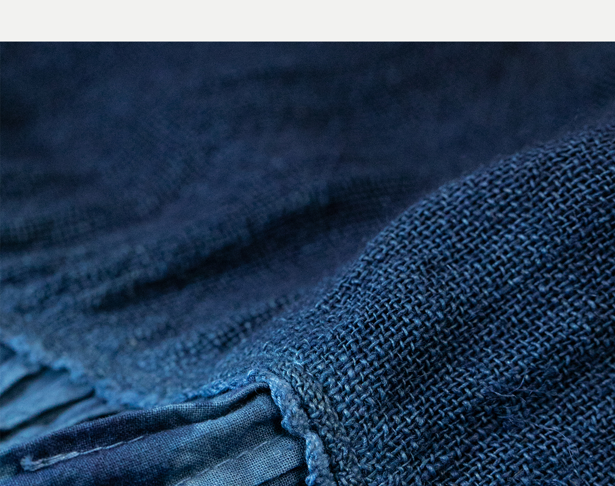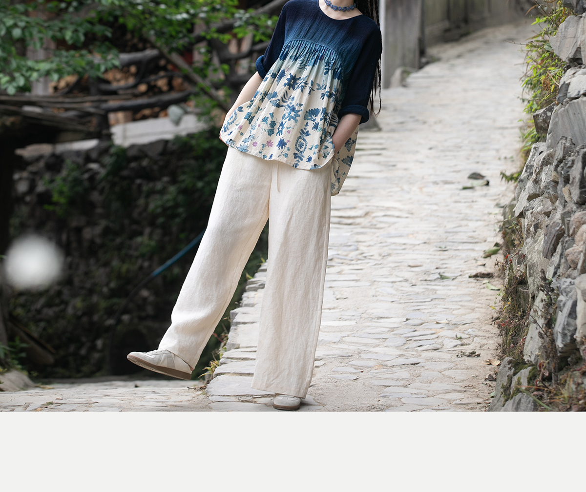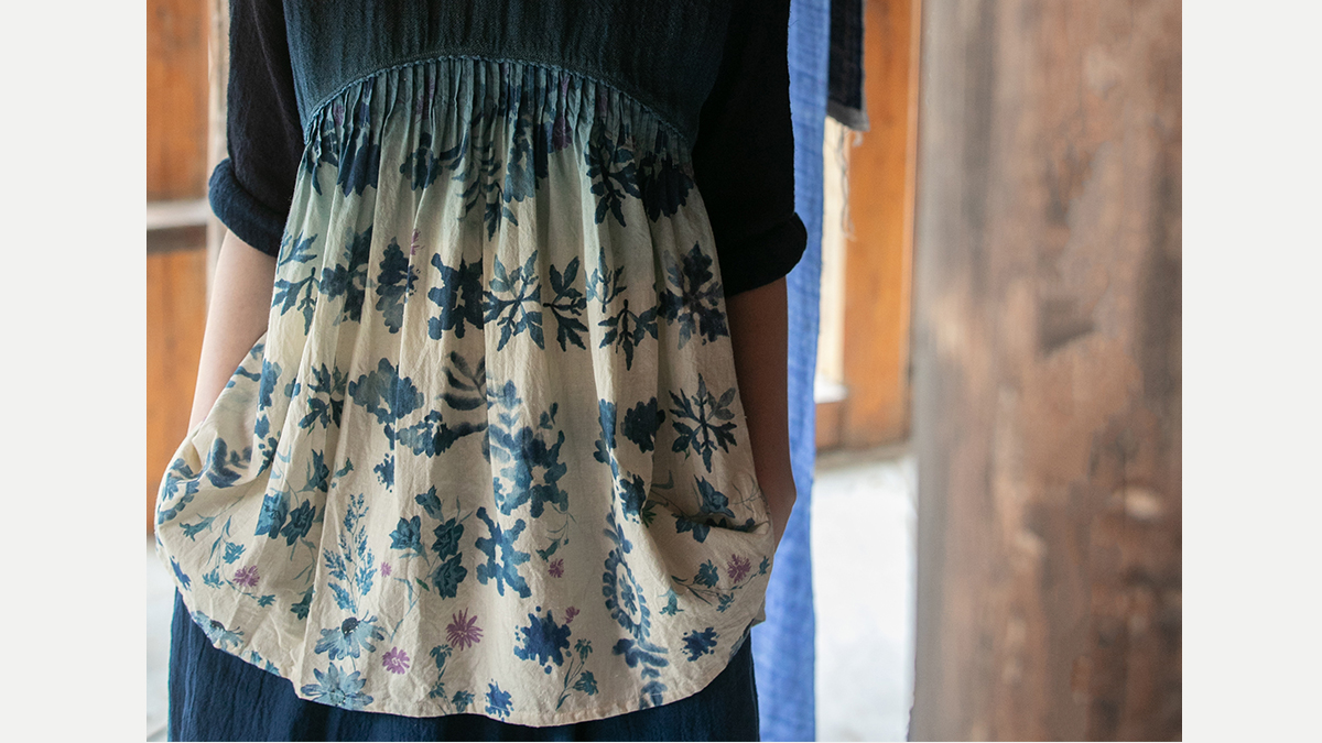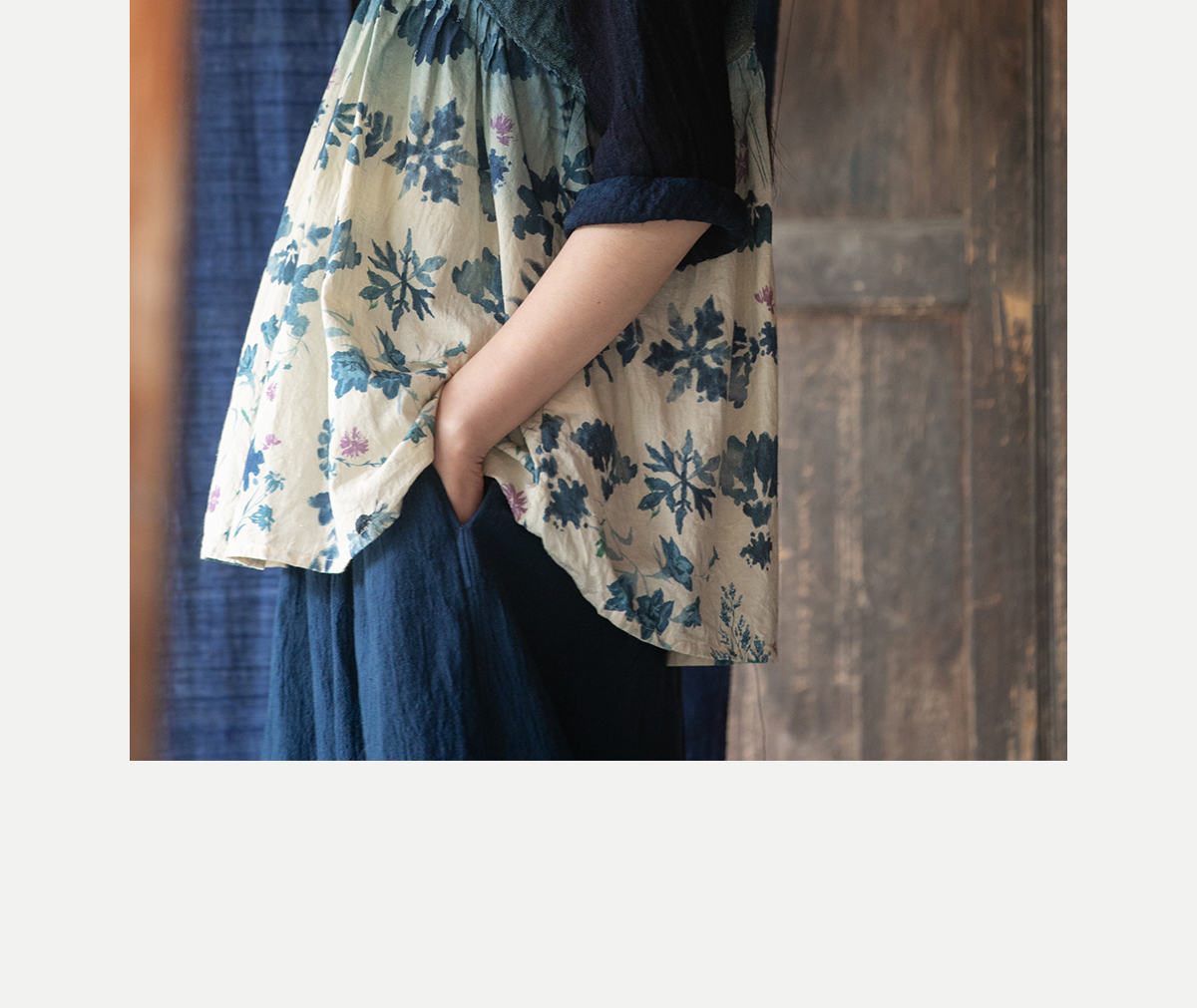 牧衣游原创 吊染蓝染印花亚麻套头衫渐变质朴复古文艺上衣 山水青