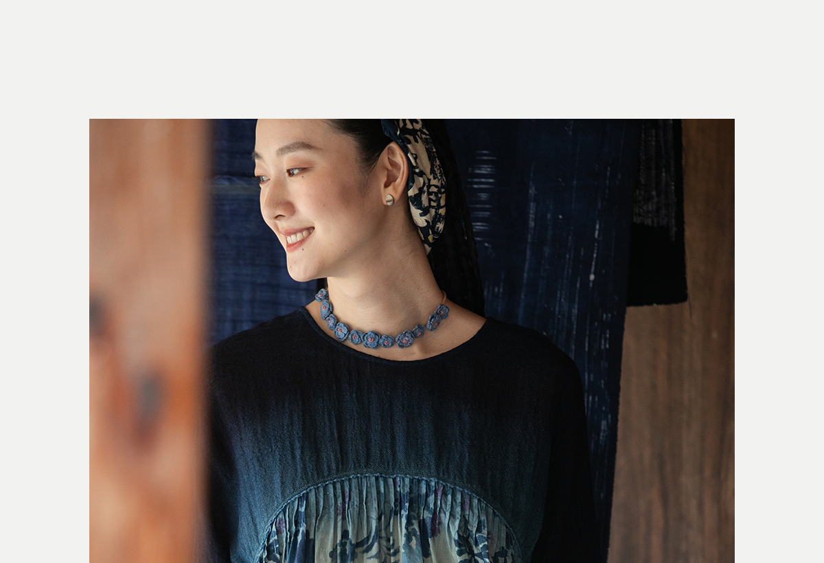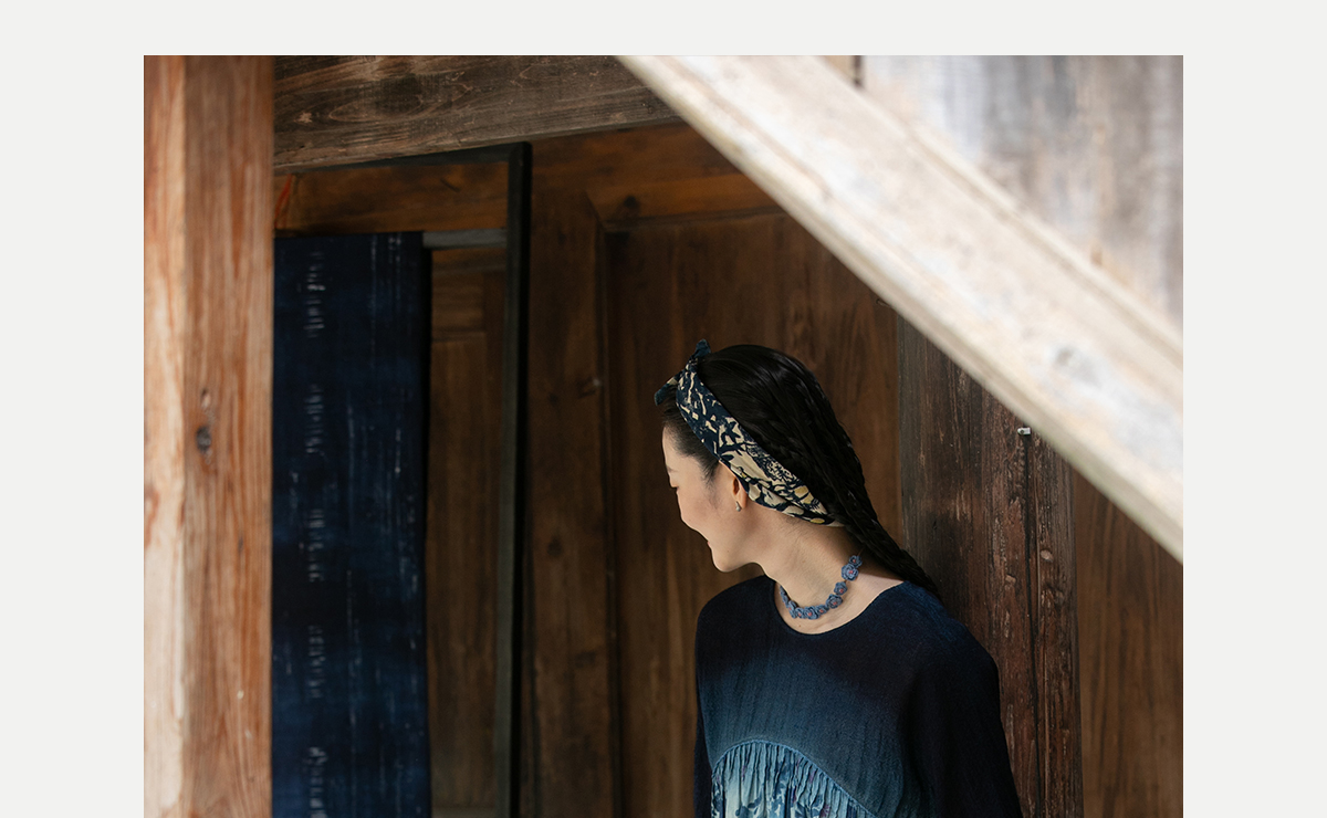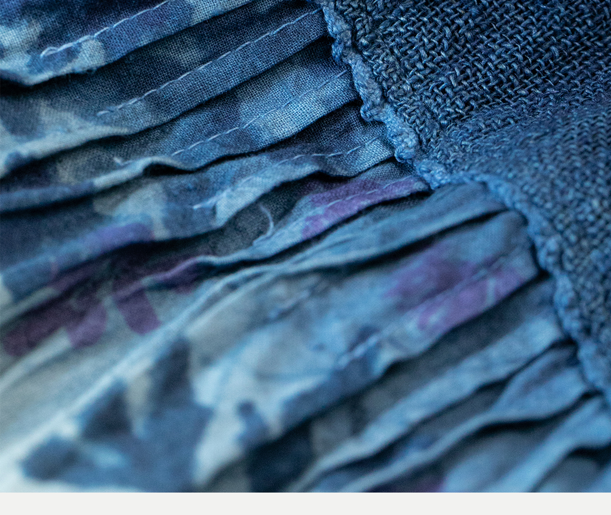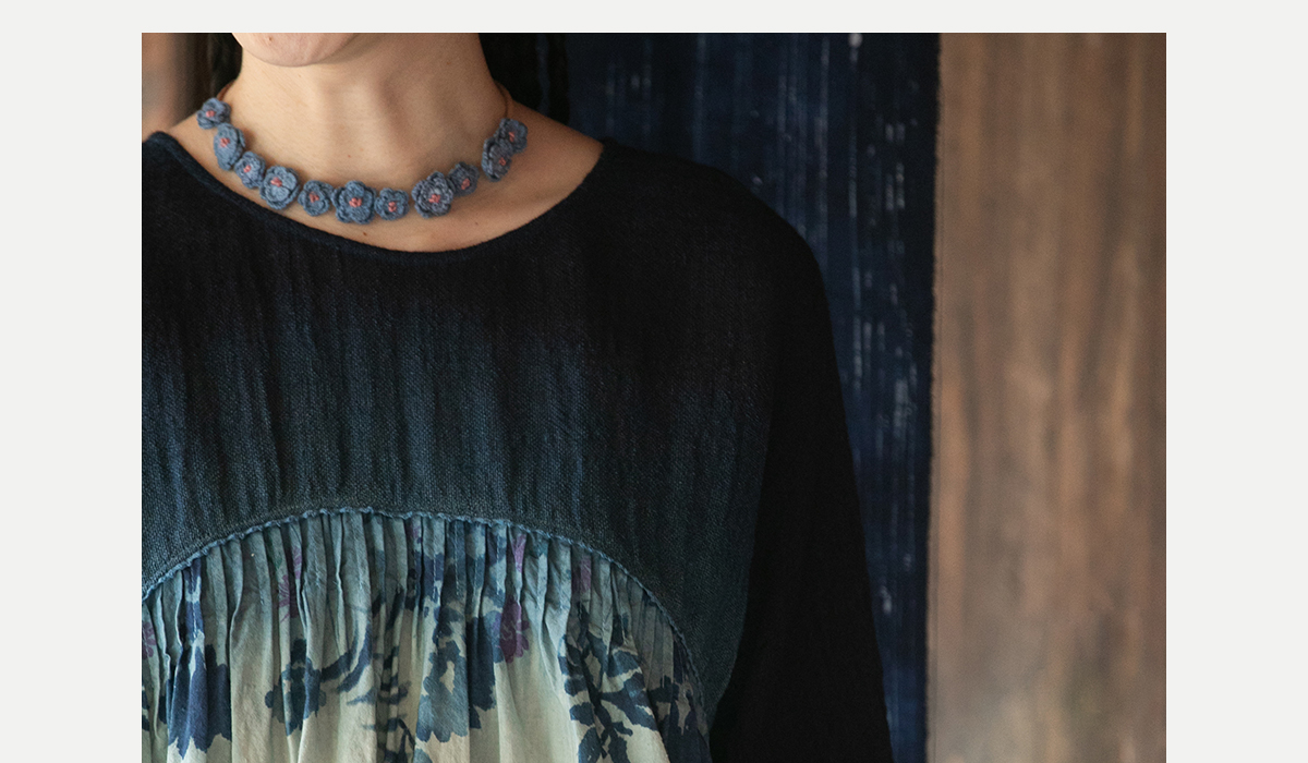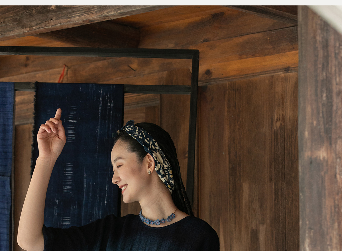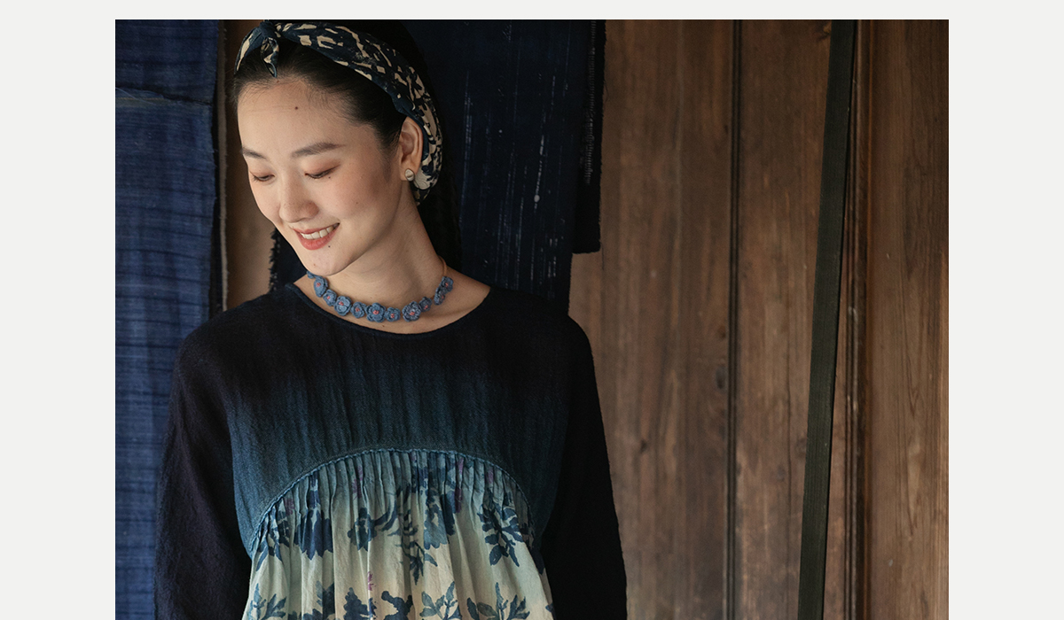 牧衣游原创 吊染蓝染印花亚麻套头衫渐变质朴复古文艺上衣 山水青