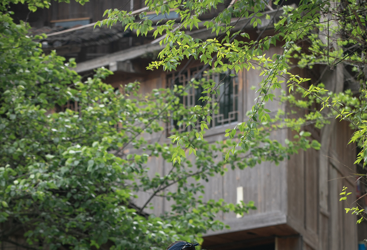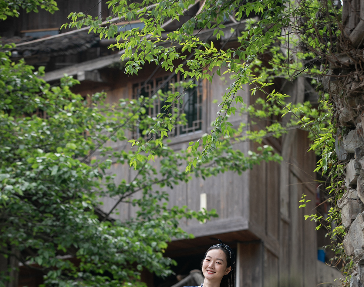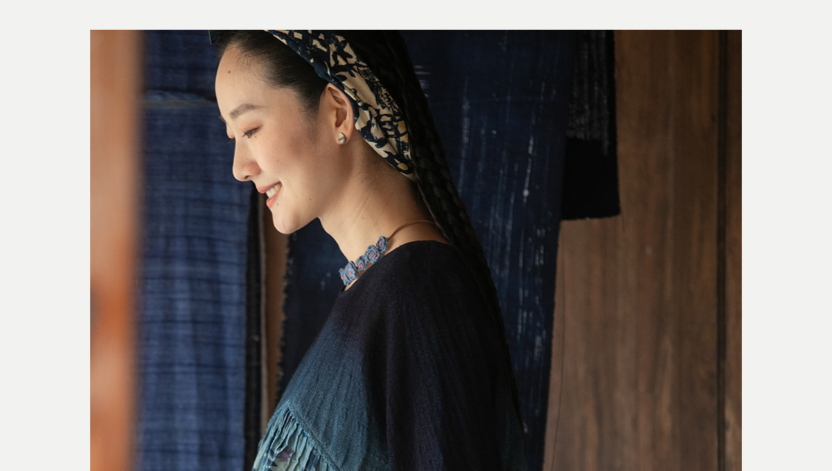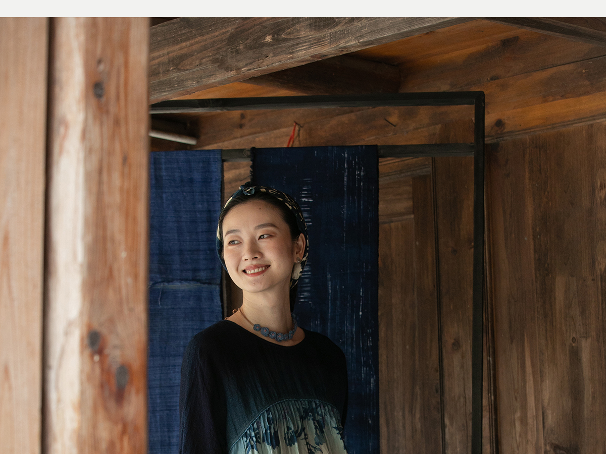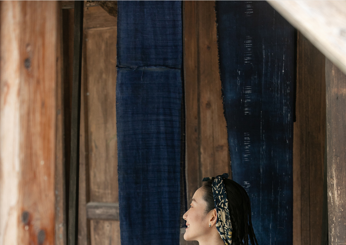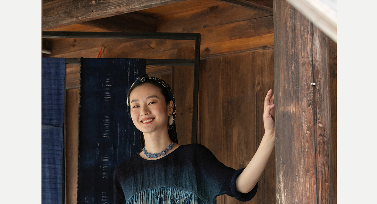 牧衣游原创 吊染蓝染印花亚麻套头衫渐变质朴复古文艺上衣 山水青