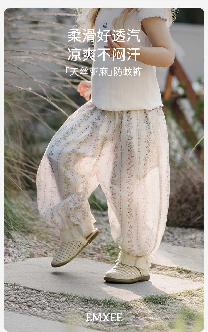 【宝宝服饰】嫚熙童装儿童防蚊裤2026夏季新款女童凉感薄款裤子女宝碎花长裤