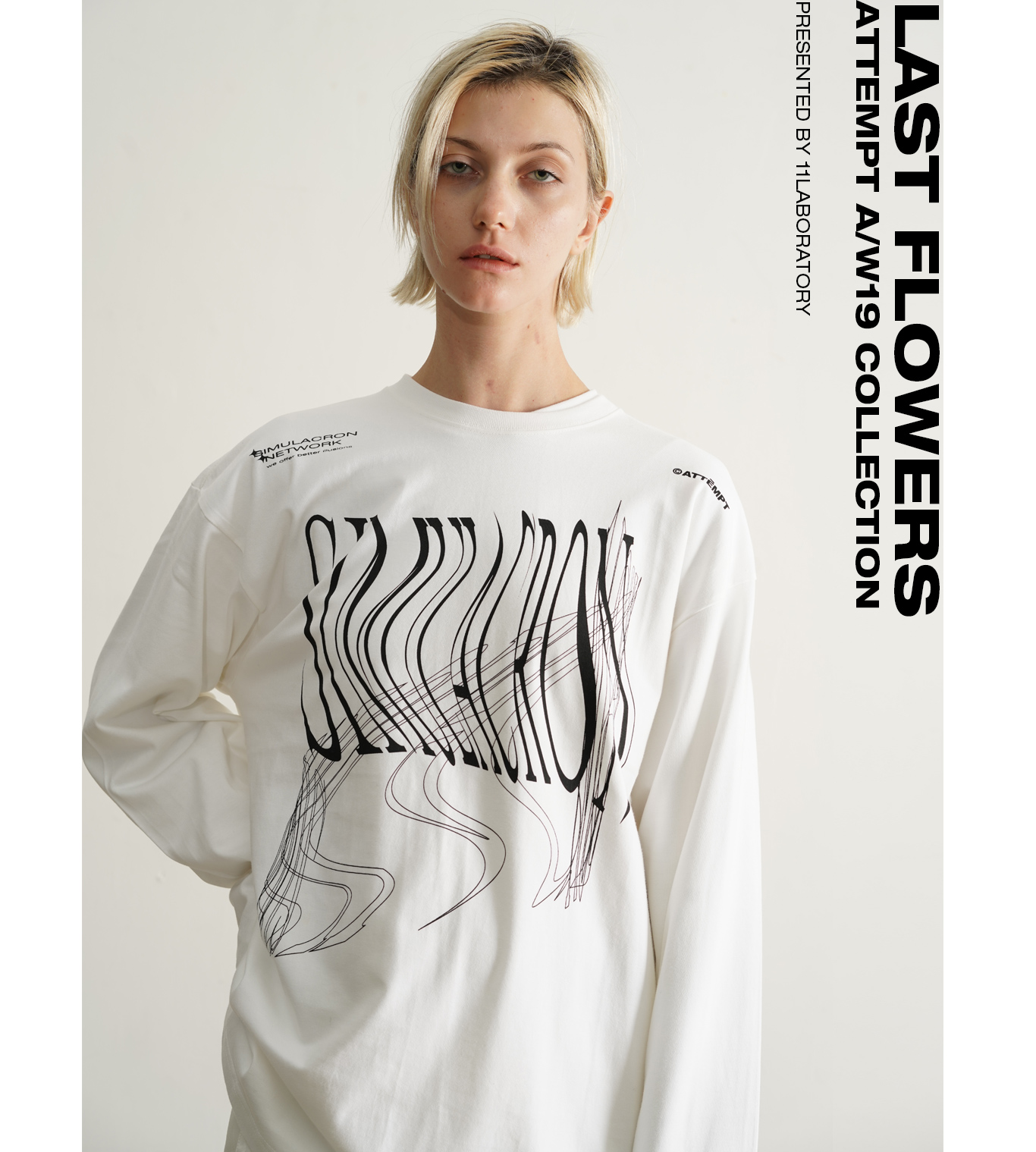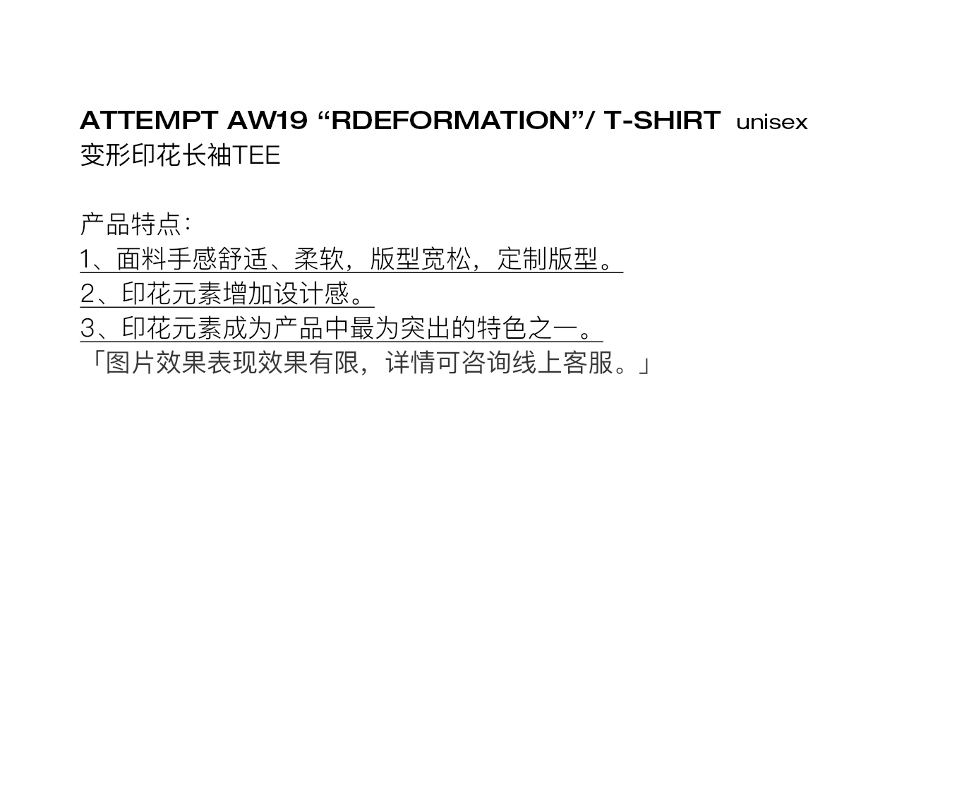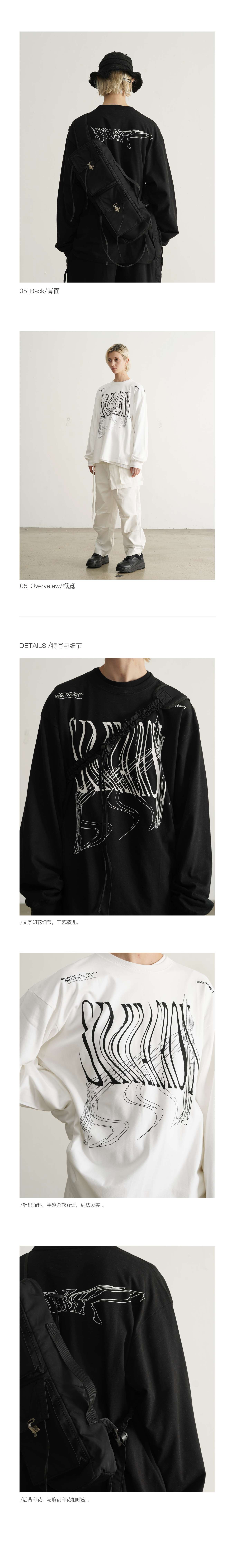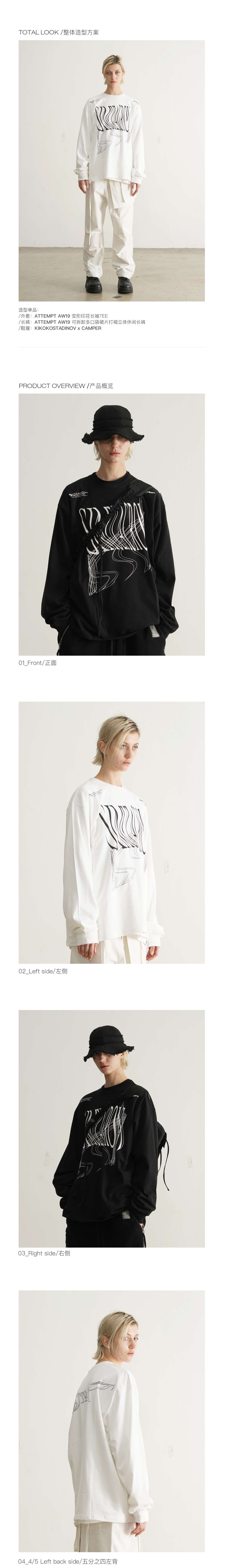 ATTEMPT 定番产品 变形印花长袖TEE 新款设计感宽松T恤 三色入