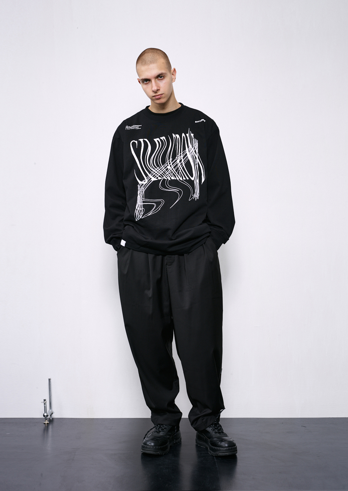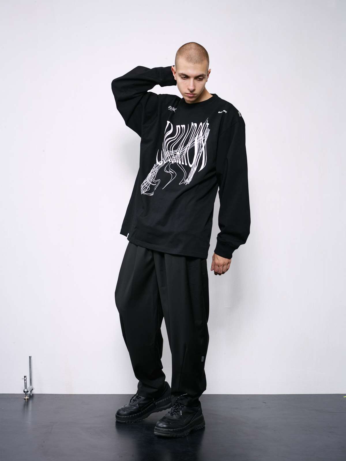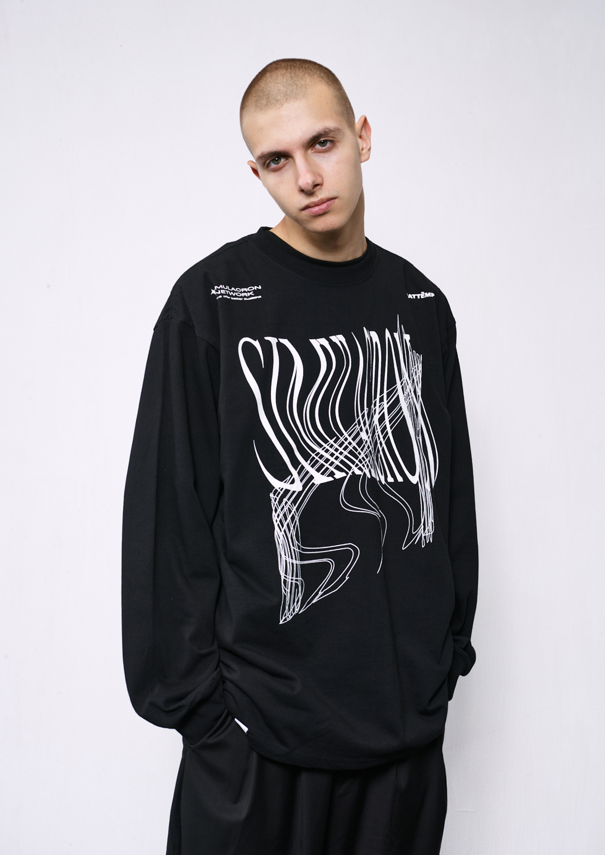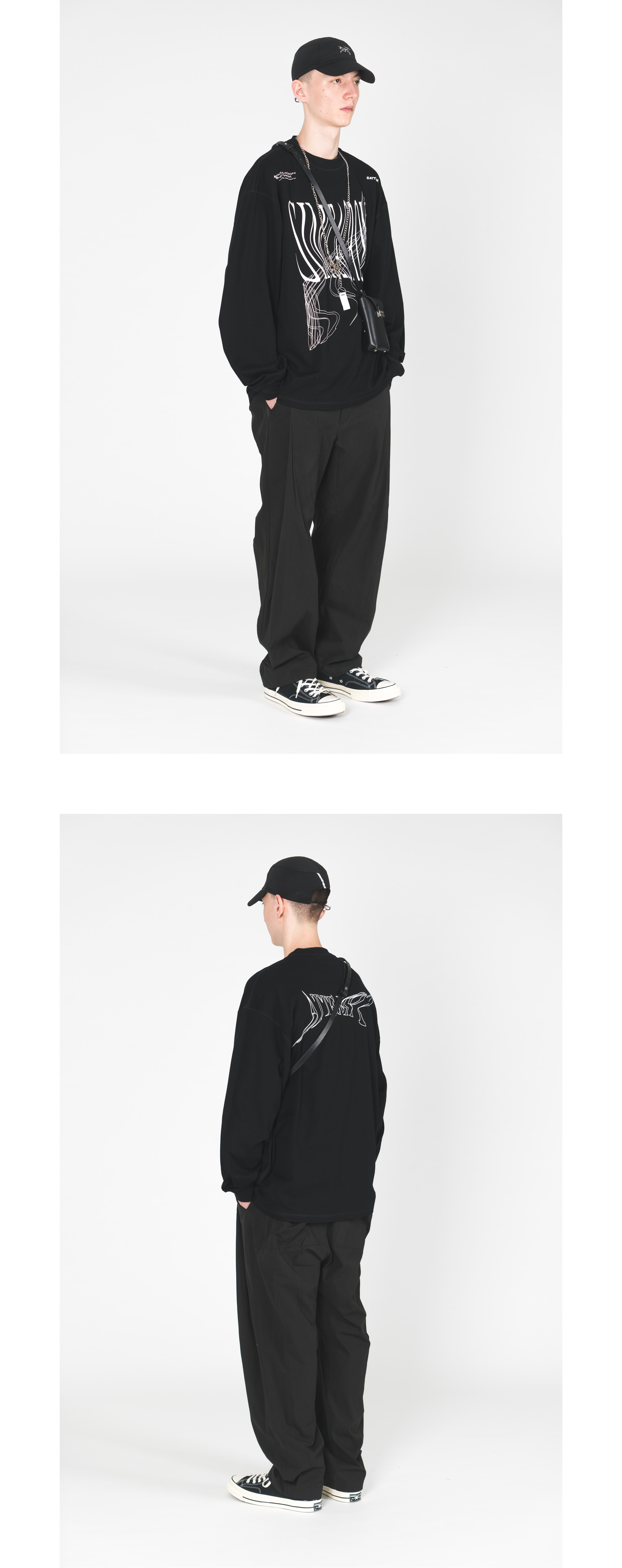 ATTEMPT 定番产品 变形印花长袖TEE 新款设计感宽松T恤 三色入
