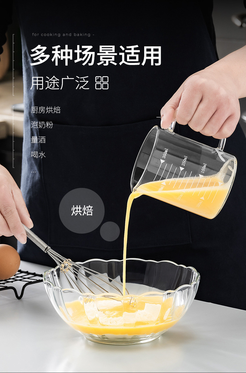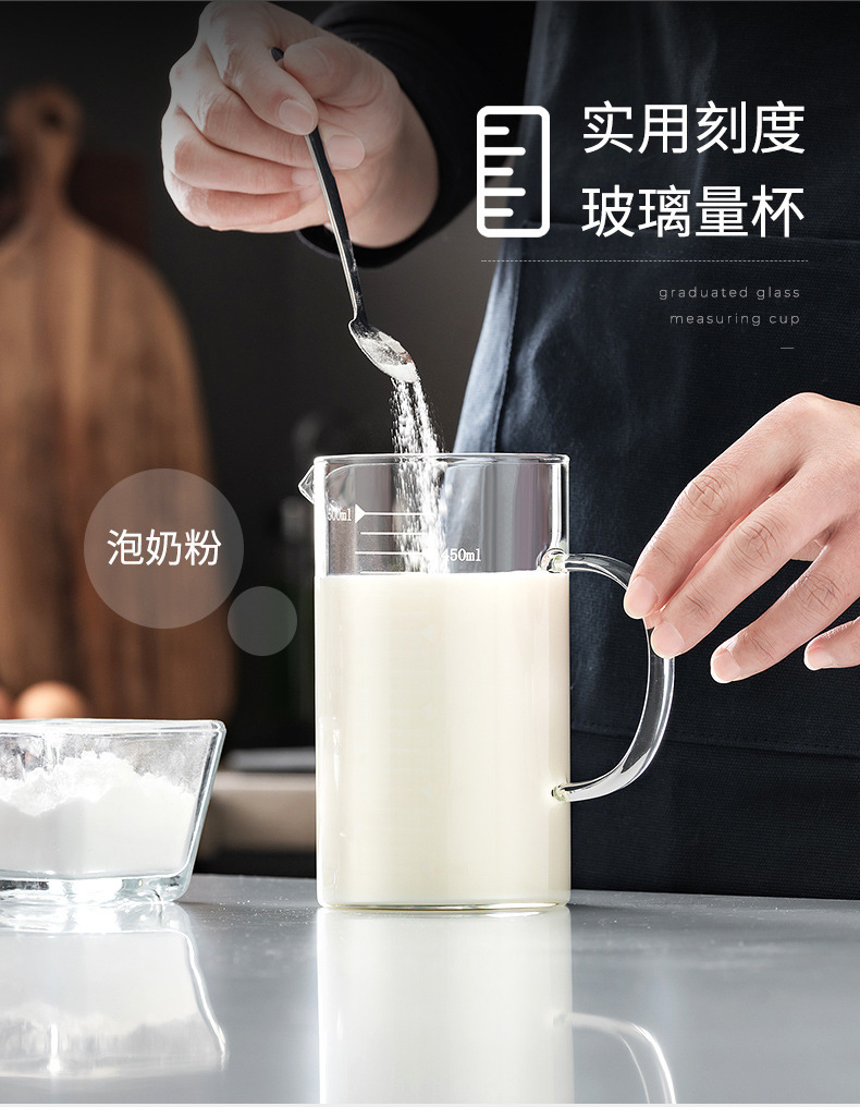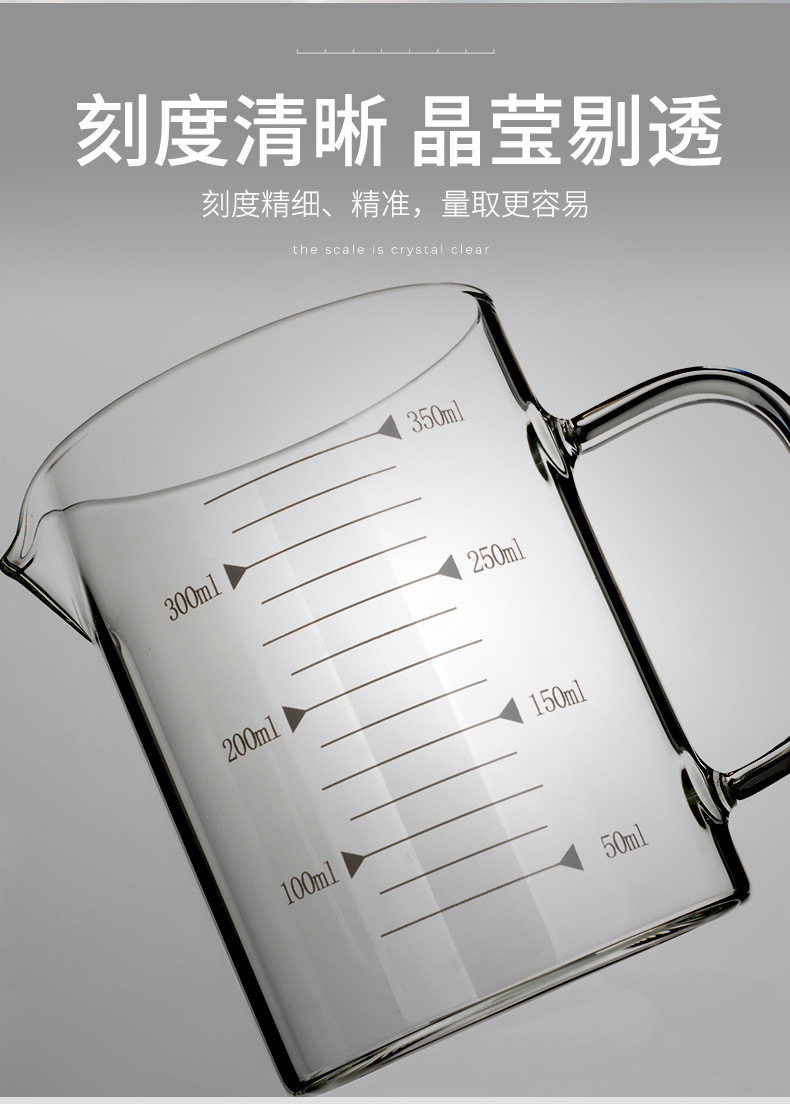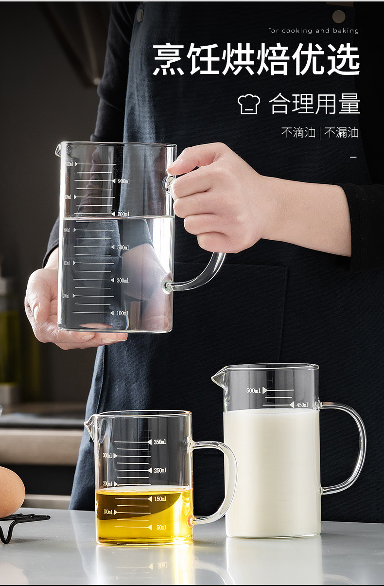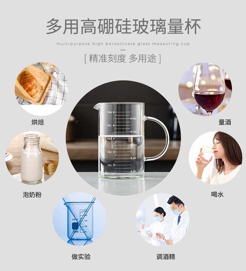 家用加厚烧杯带刻度带盖玻璃量杯牛奶杯烘焙计量杯中年加热量水杯