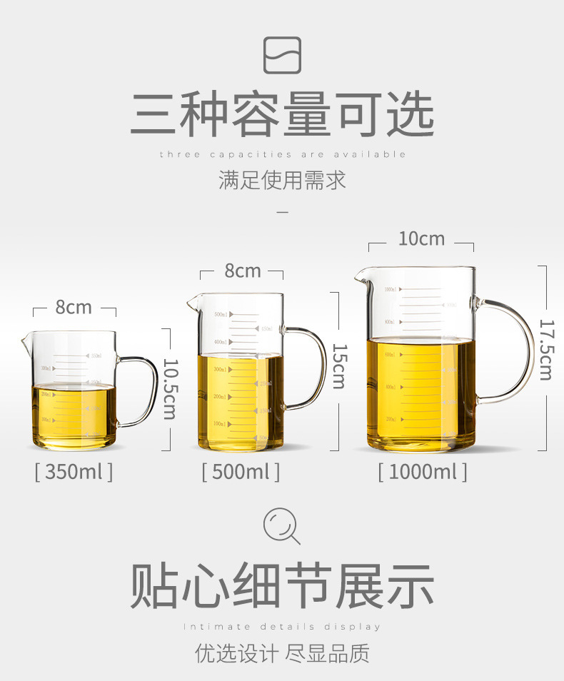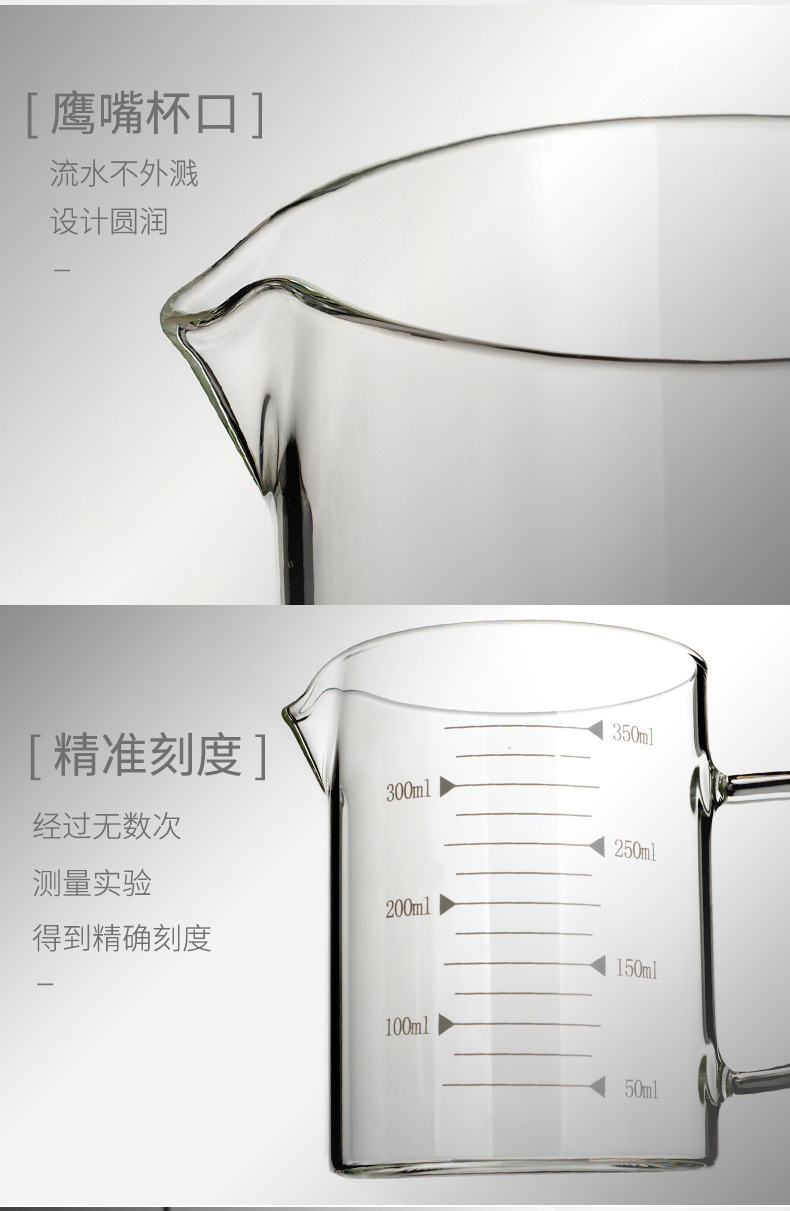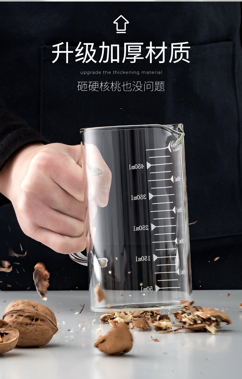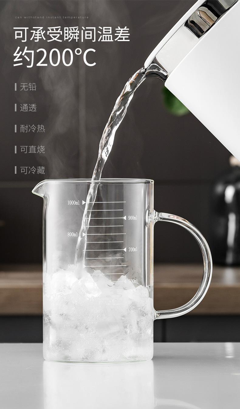 家用加厚烧杯带刻度带盖玻璃量杯牛奶杯烘焙计量杯中年加热量水杯