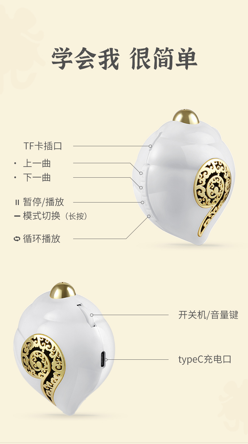 新款海螺蓝牙音响小型TF插卡播放器便携唱戏机禅乐播放机