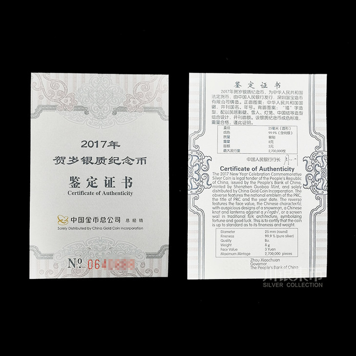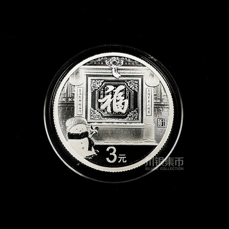 规格:普制币,面额3元,圆形,直径25毫米,含纯银8克,成色99.9%,最大发行量270万枚。
