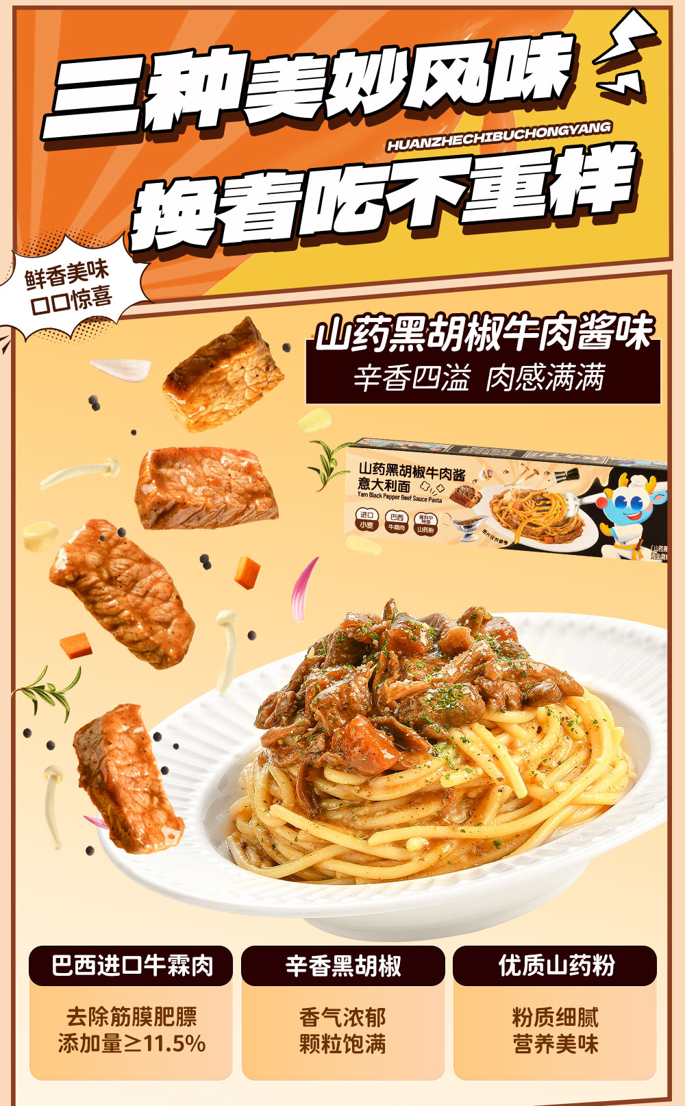 【肉酱意面】山药黑椒牛柳酱/益生元咖喱鸡丁酱/鸡内金黑松露培根酱