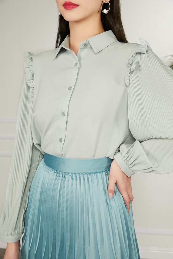 Le Malene 泡泡袖压褶衬衣 11224
