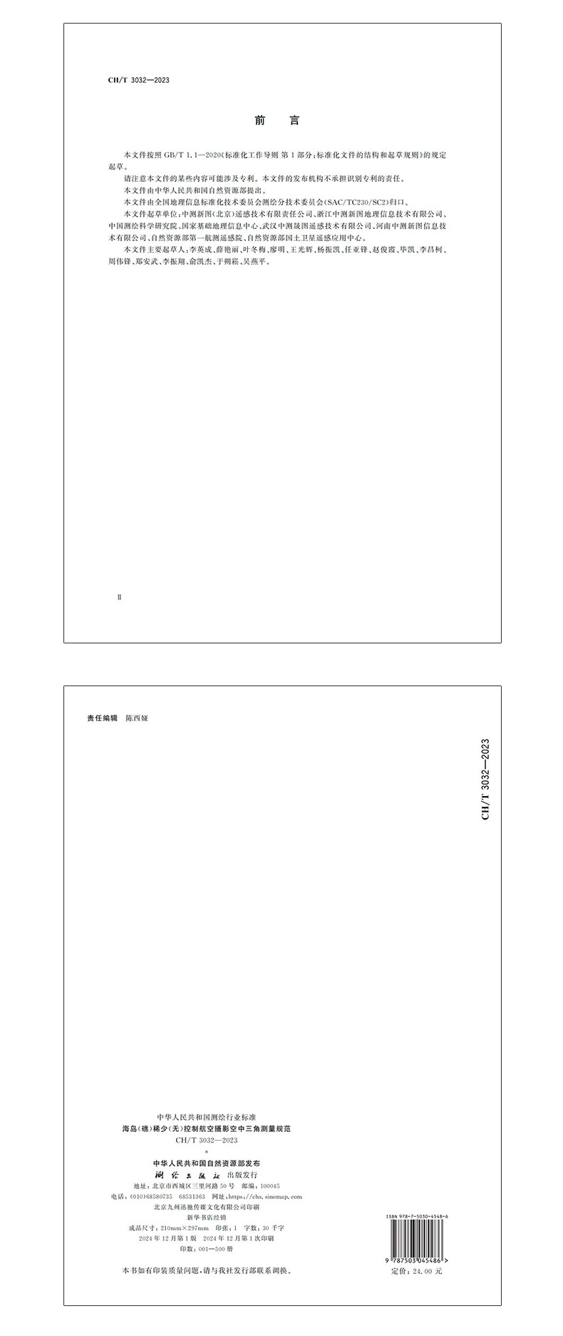测绘行业标准 海岛(礁)稀少(无)控制航空摄影空中三角测量规范——CHT 3032—2023