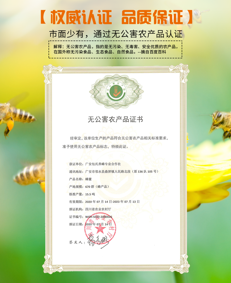 包德安 邻水土蜂蜜精品礼盒460g*2瓶/盒