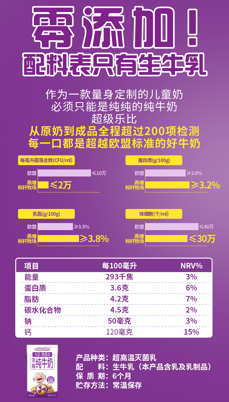 【广垦优品】燕塘丨A2-β酪蛋白浓缩纯牛奶 (超级乐比) 120ml*16 【仅广东省内包邮】