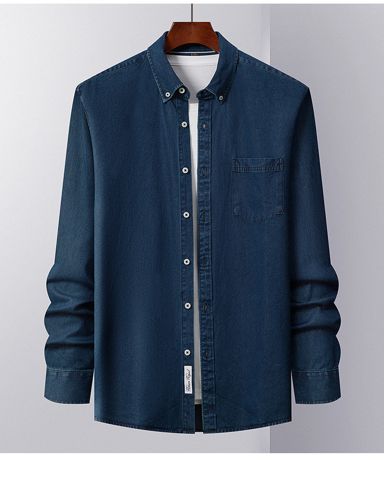 100棉|罗蒙秋冬厚款牛仔衬衣外套男士休闲百搭衫长袖衬衫上衣