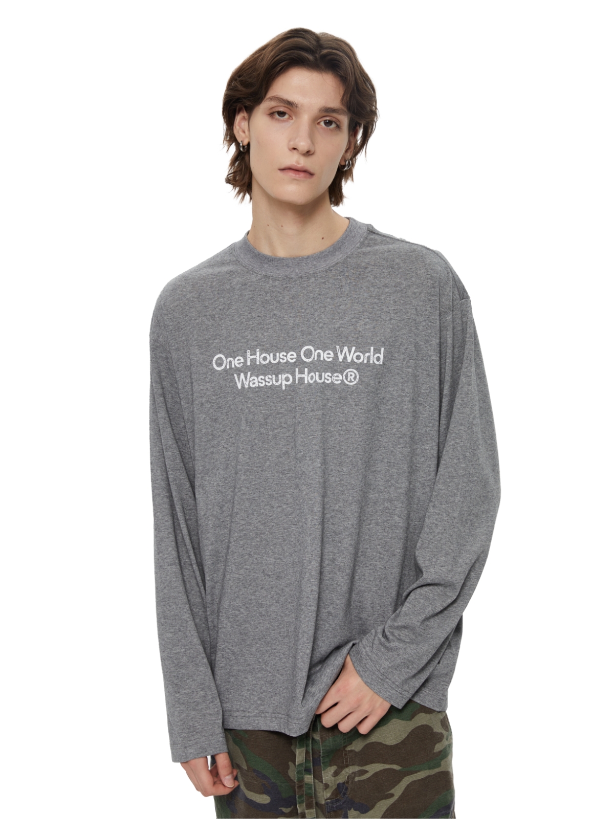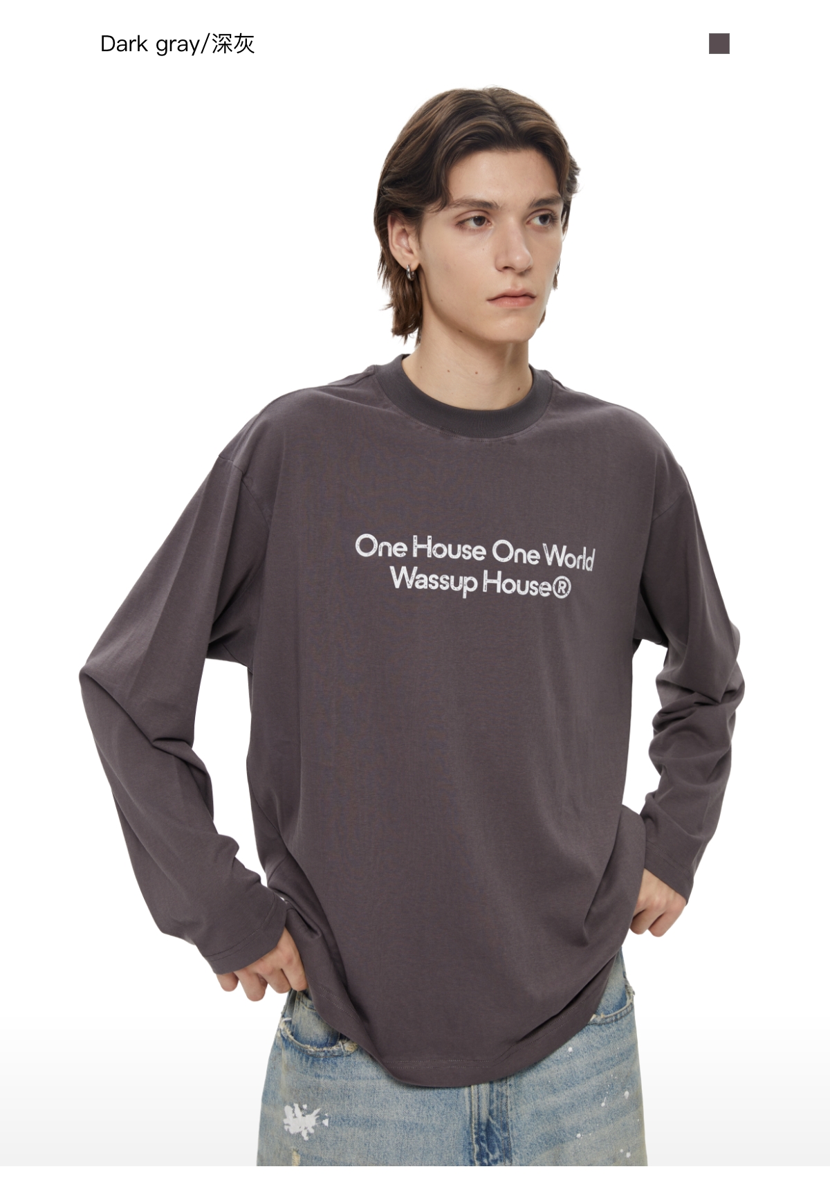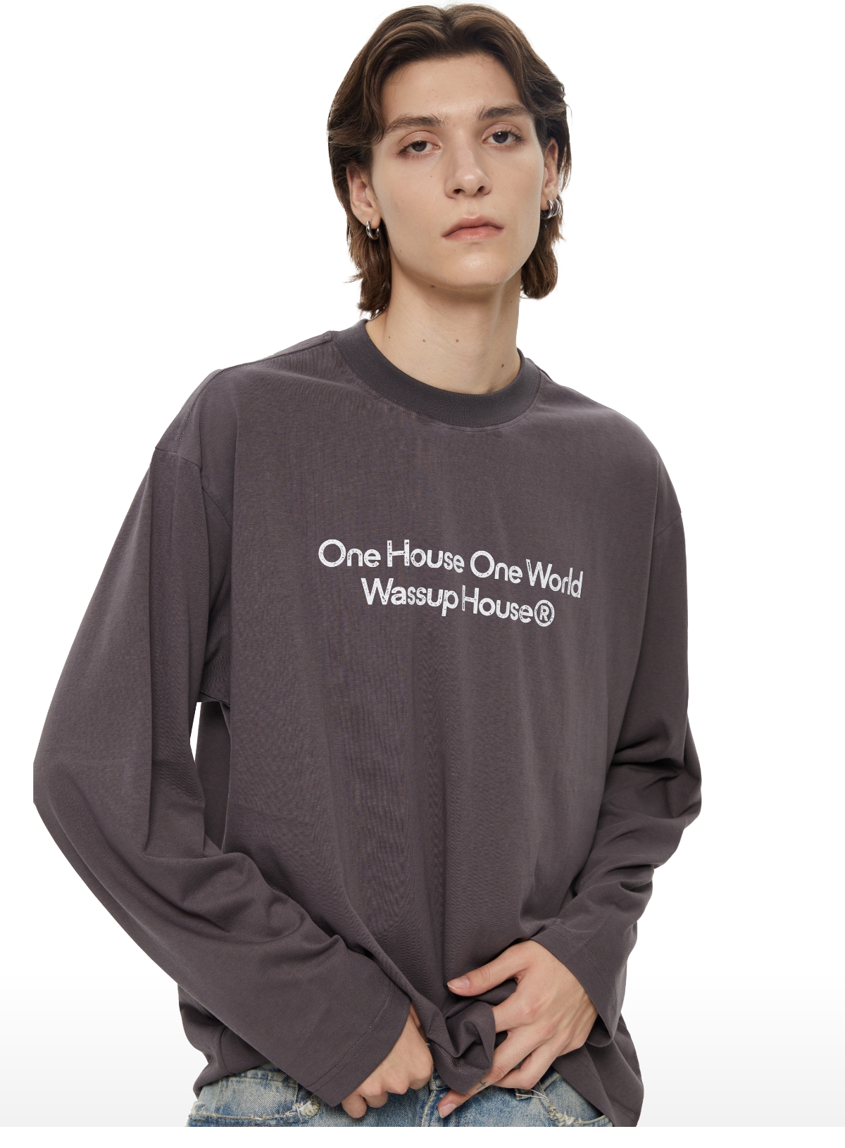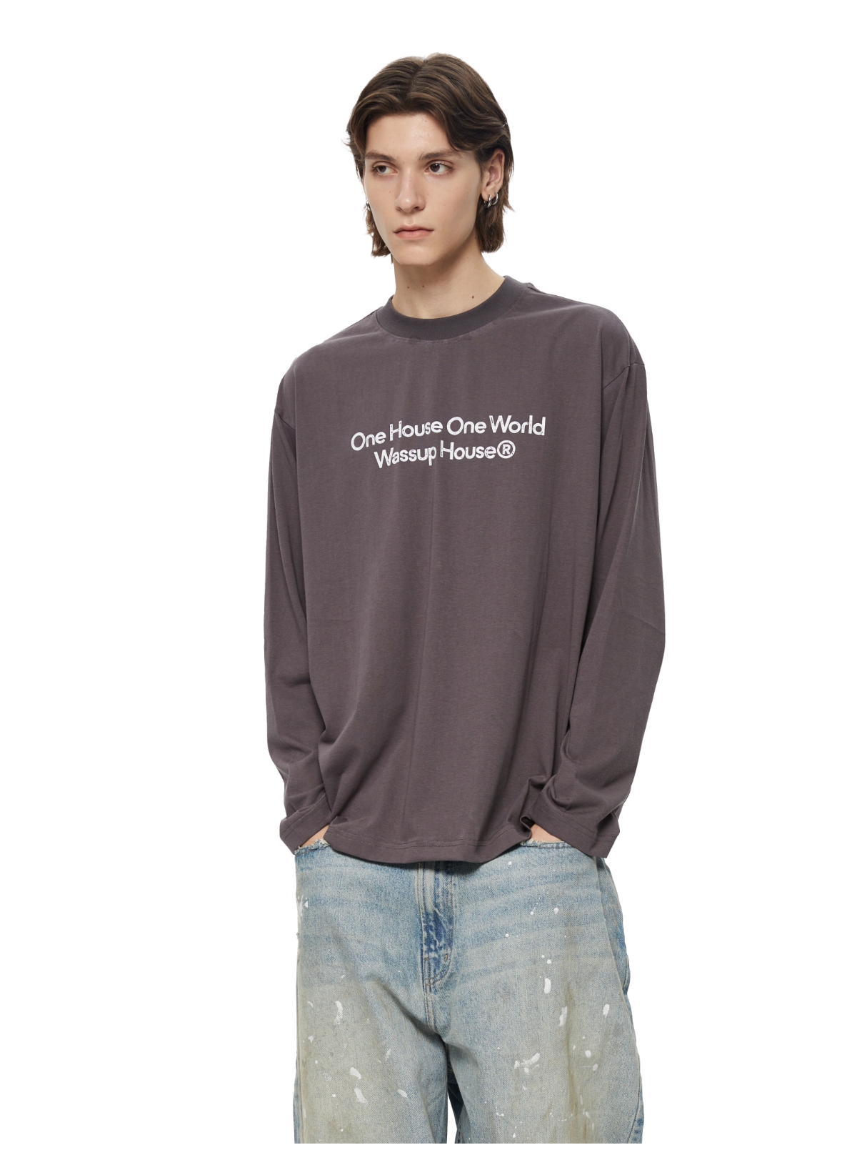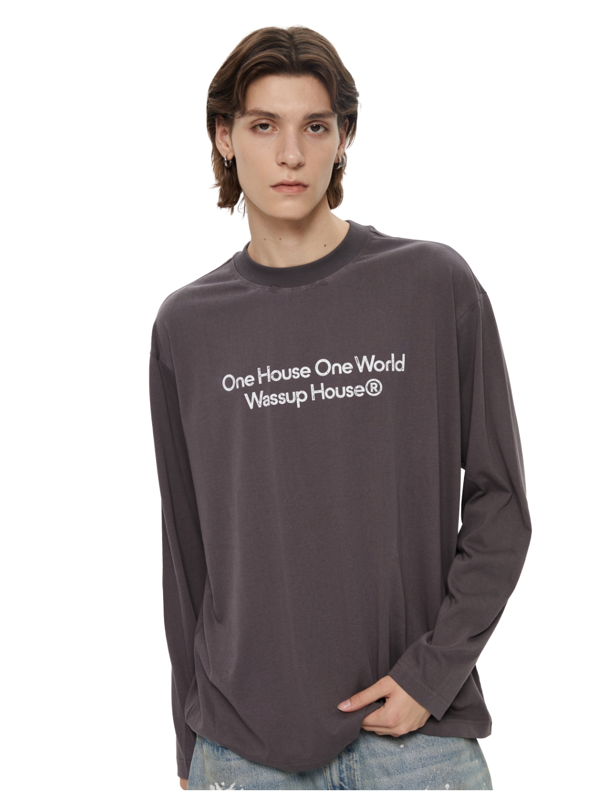 WassupHouse 做旧斑驳印花云朵纱长袖T恤