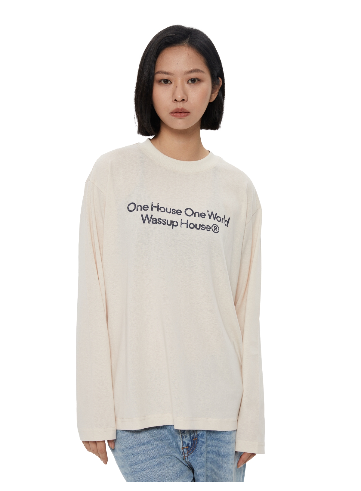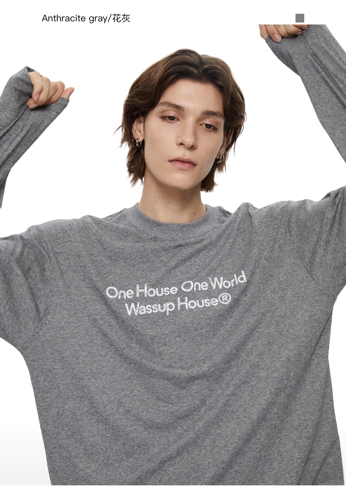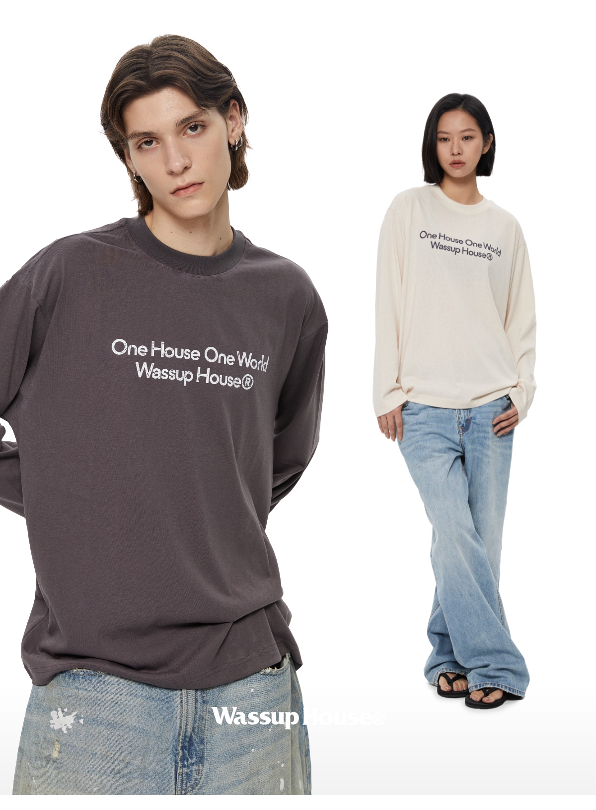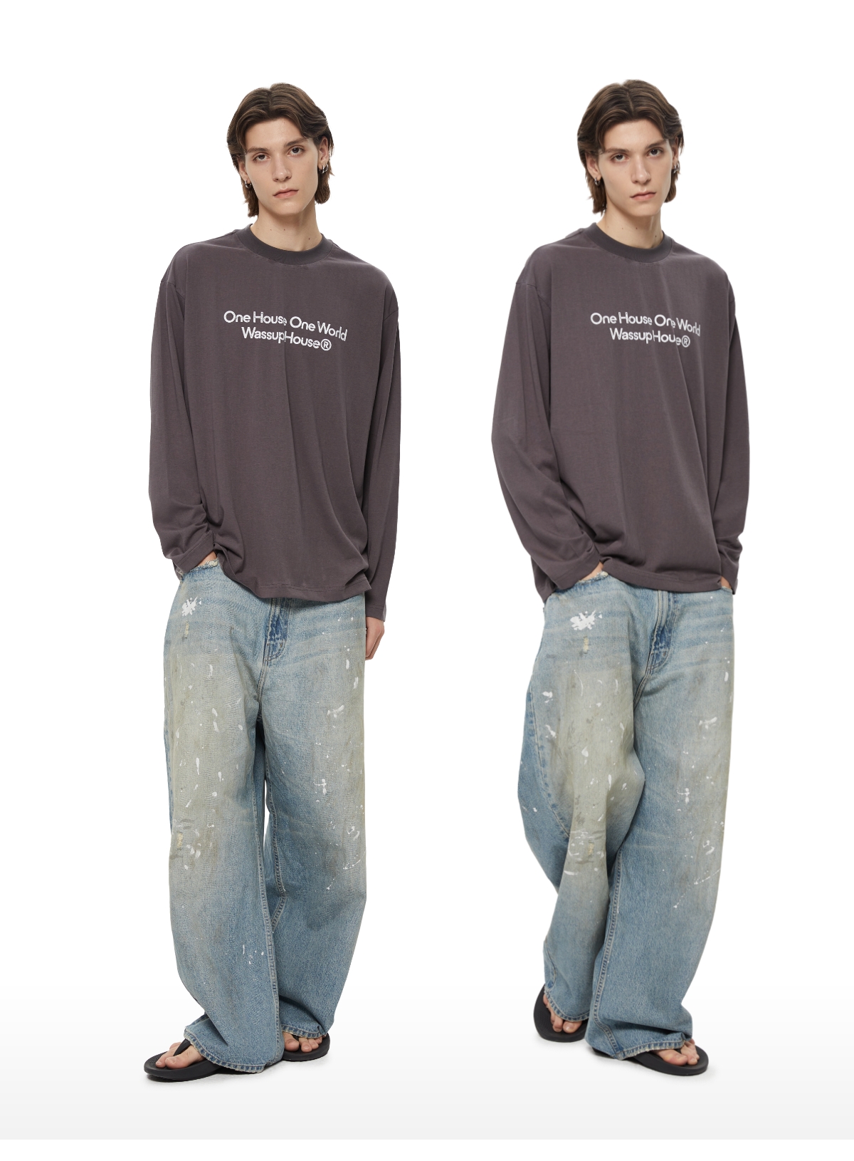 WassupHouse 做旧斑驳印花云朵纱长袖T恤