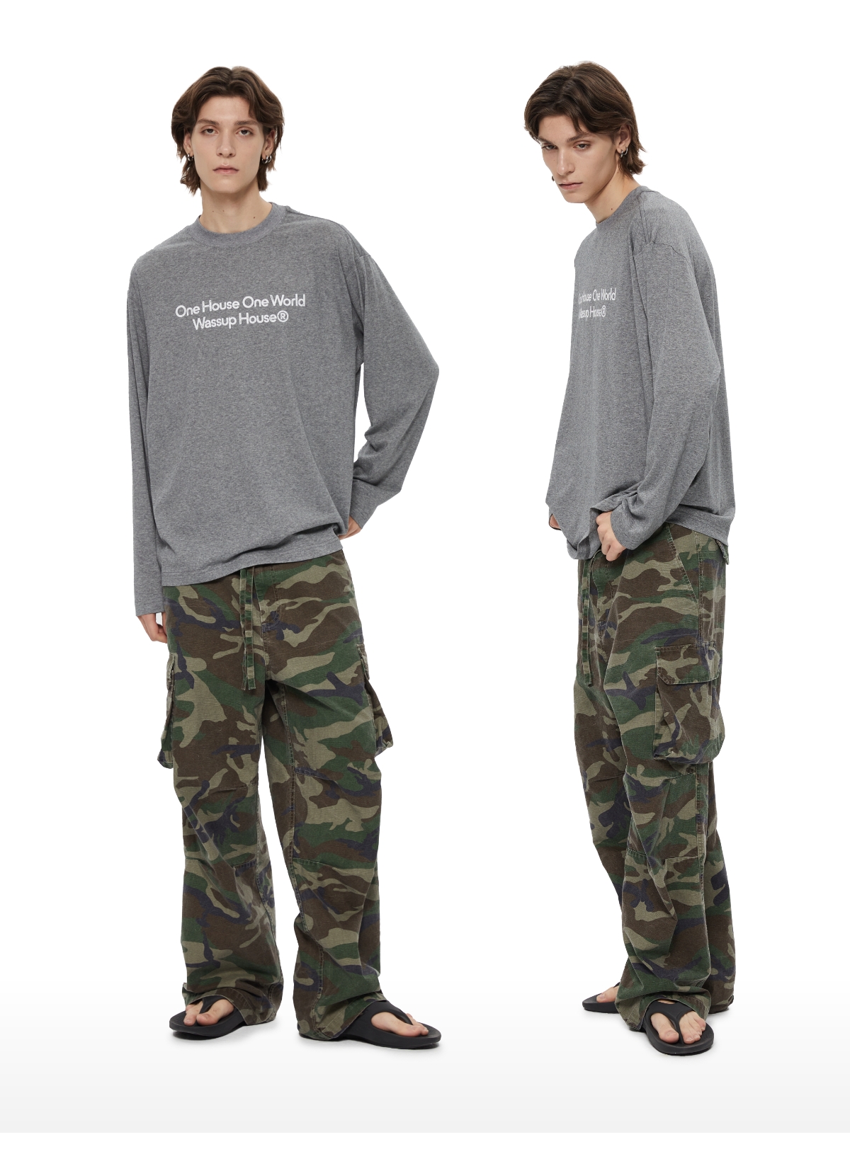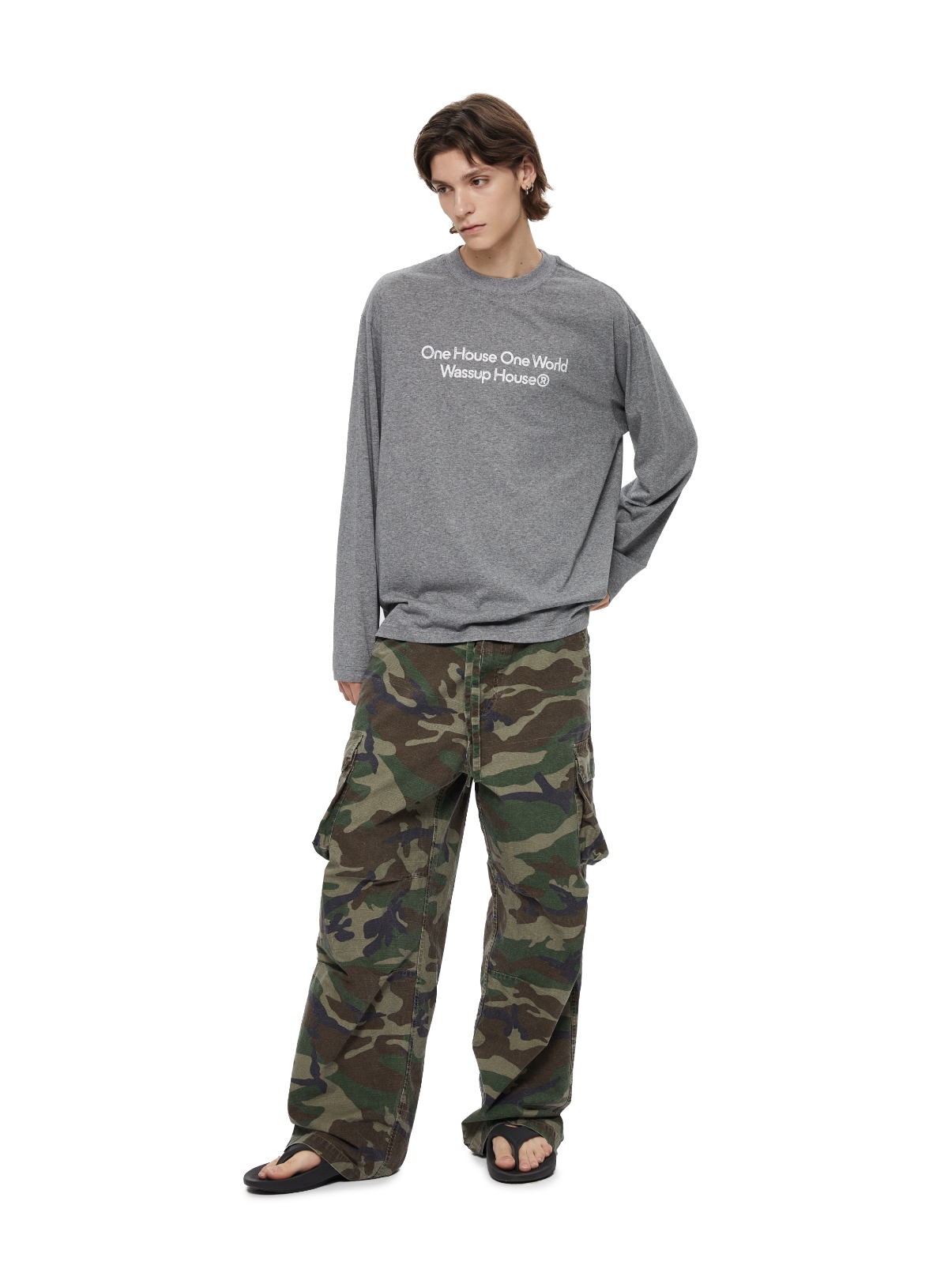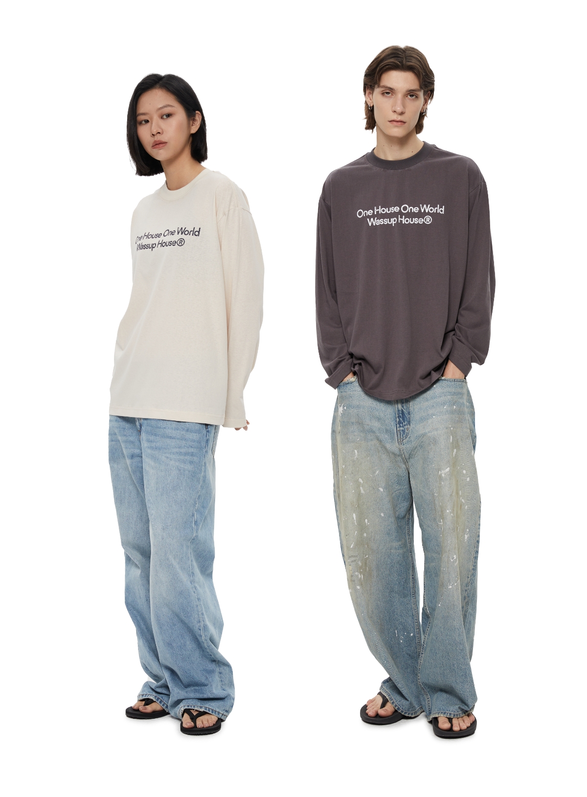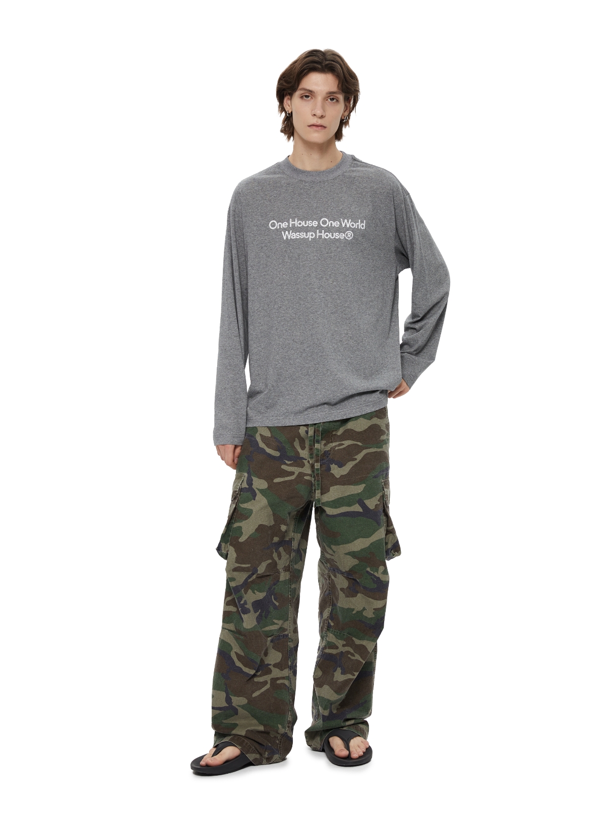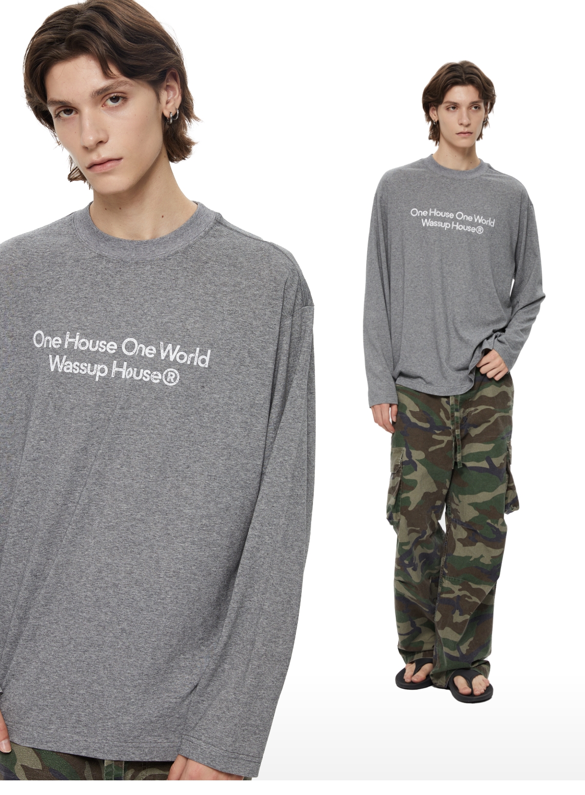 WassupHouse 做旧斑驳印花云朵纱长袖T恤