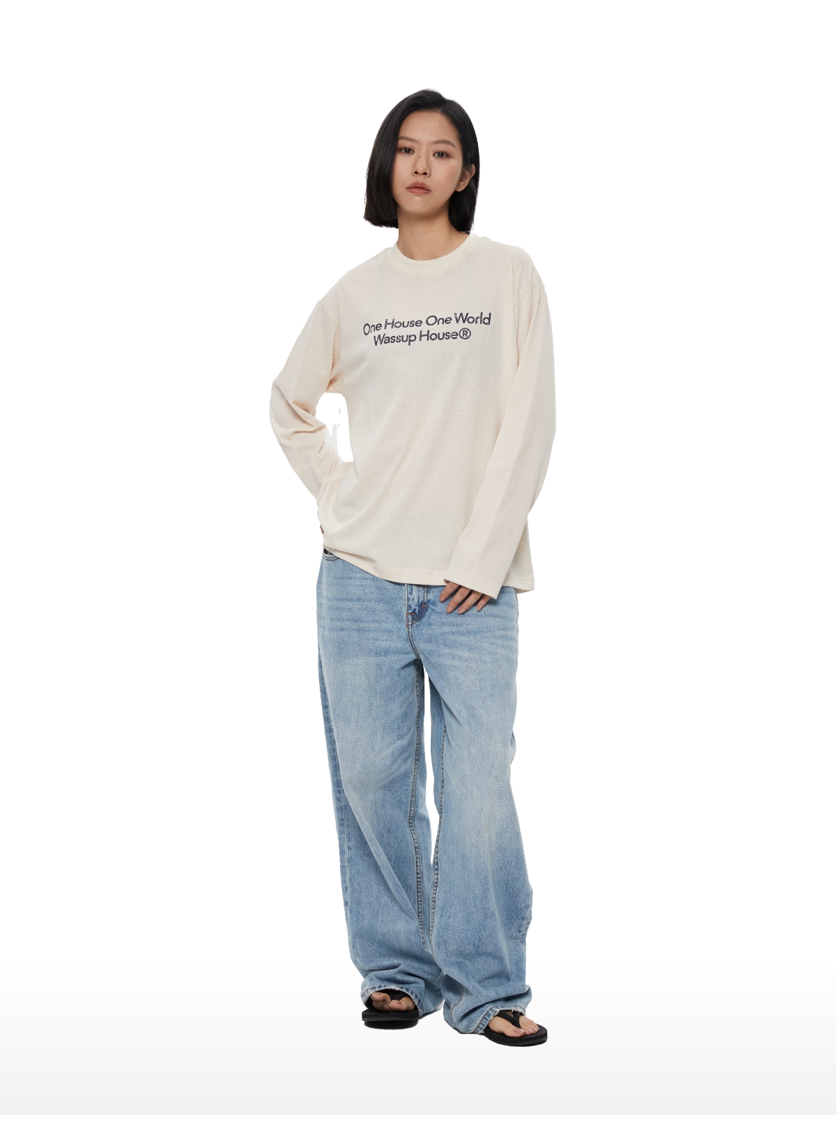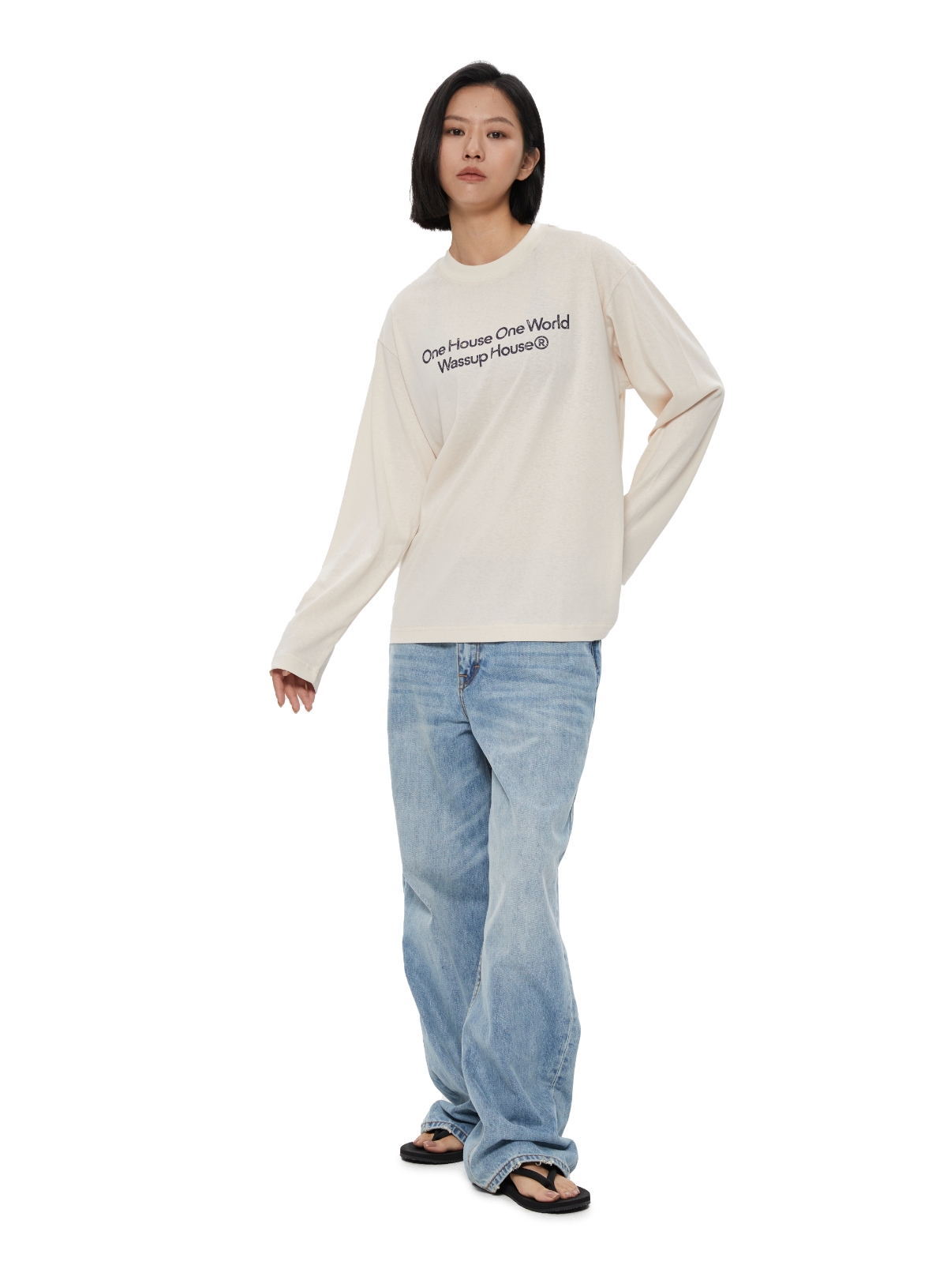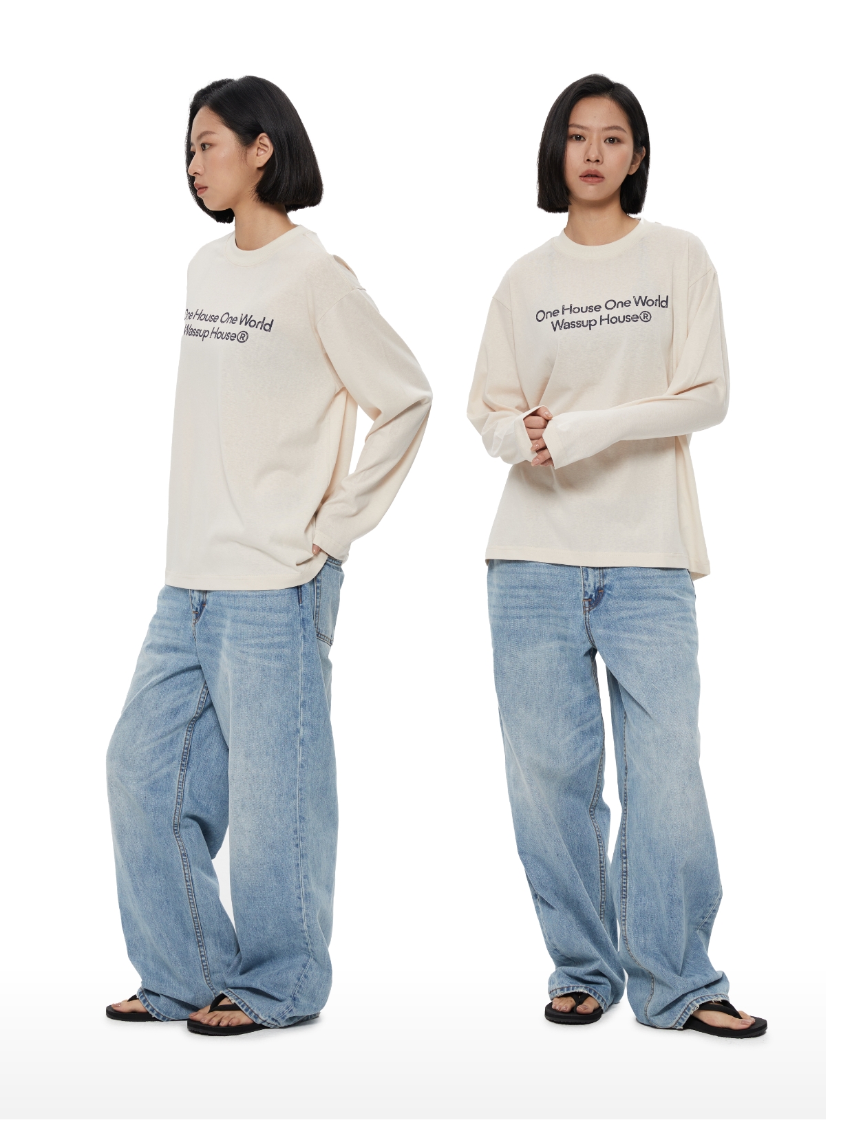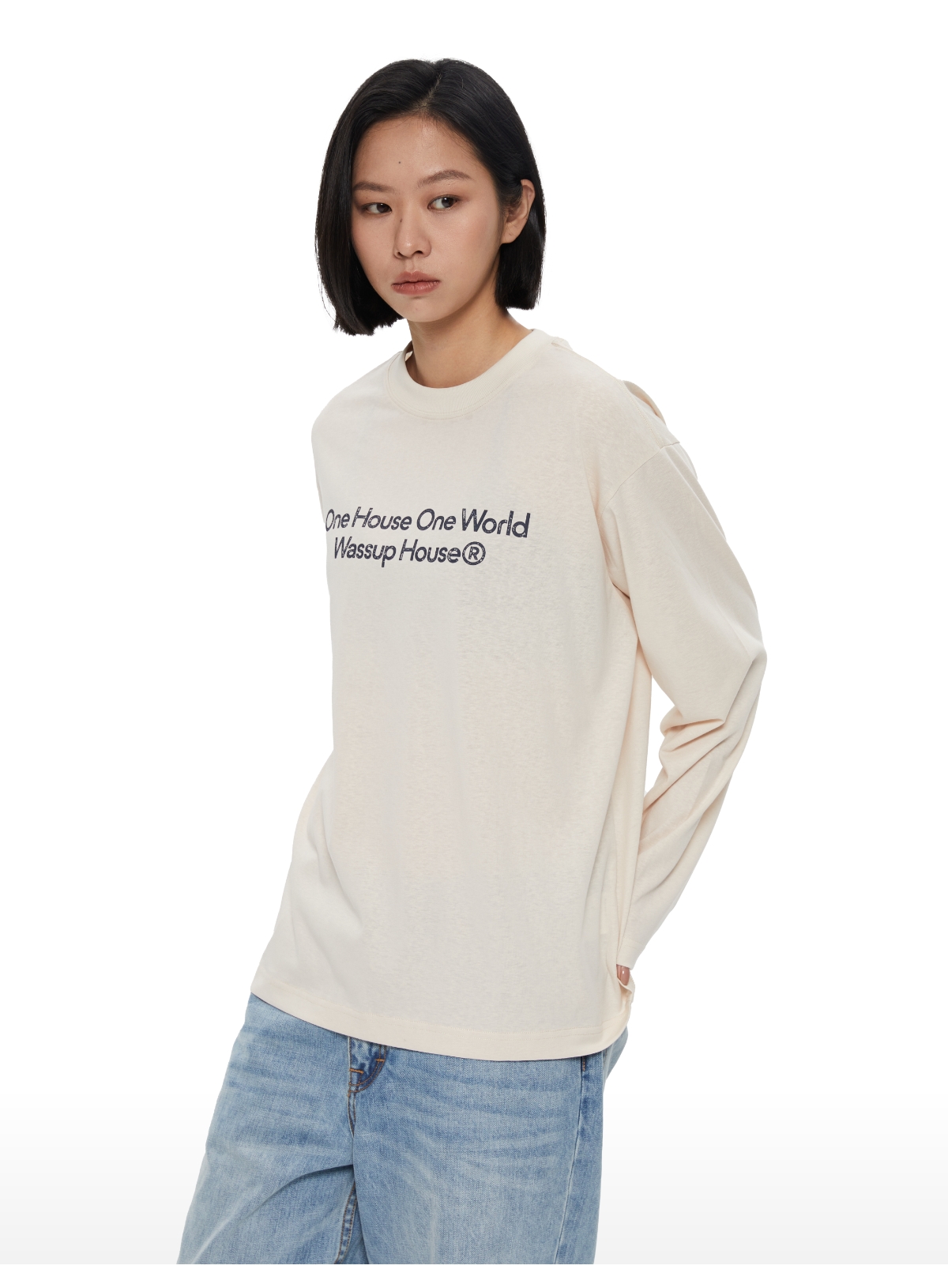Oneup一字领修身插肩长袖