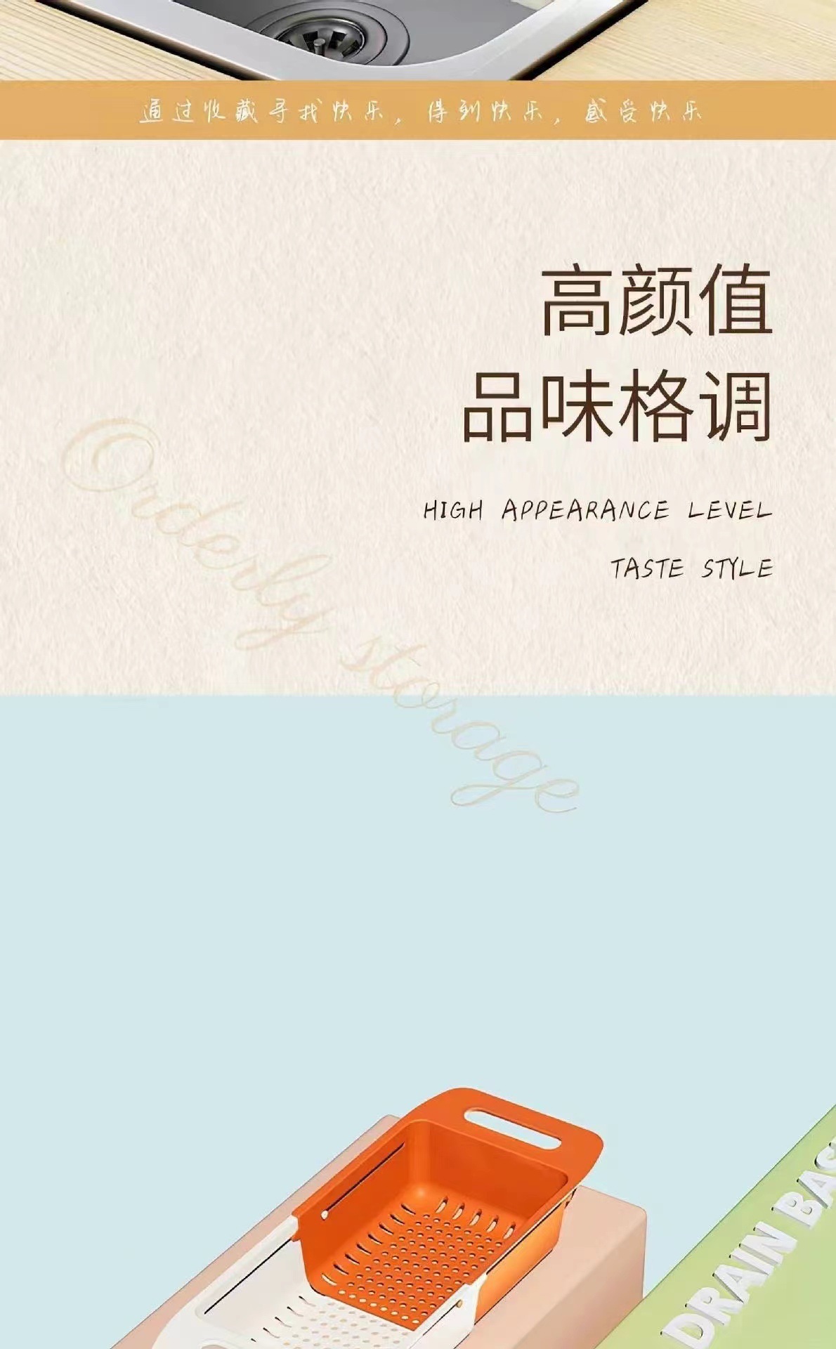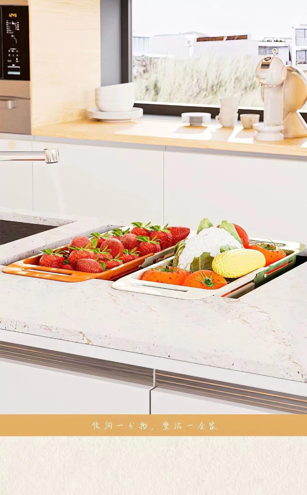 「9.9包邮!伸缩撞色设计」双层沥水篮洗菜盆 厨房用品水槽洗水果蔬菜洗菜淘米篮伸缩洗菜篮沥水架
