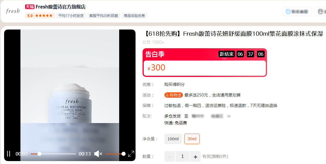【5.19王炸割肉价】馥蕾诗花妍/玫瑰润泽舒缓面膜15ml*3支