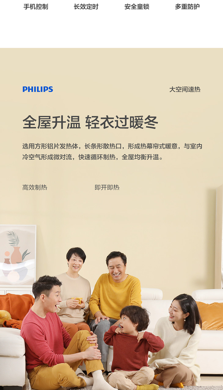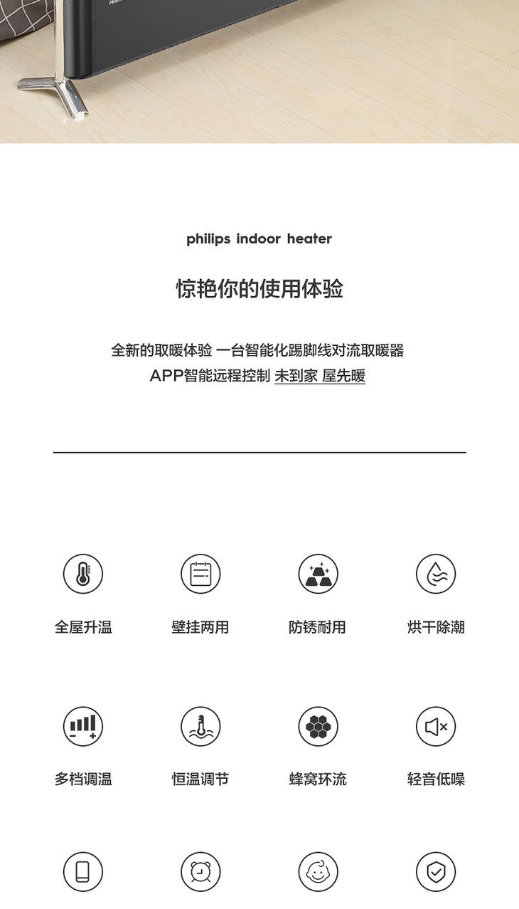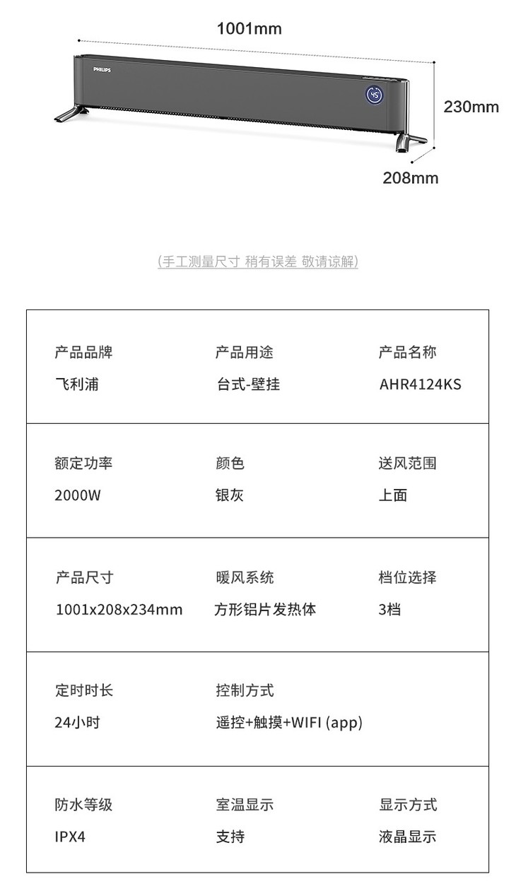 飞利浦(PHILIPS)AHR4124KS踢脚线取暖器 暖2000瓦
