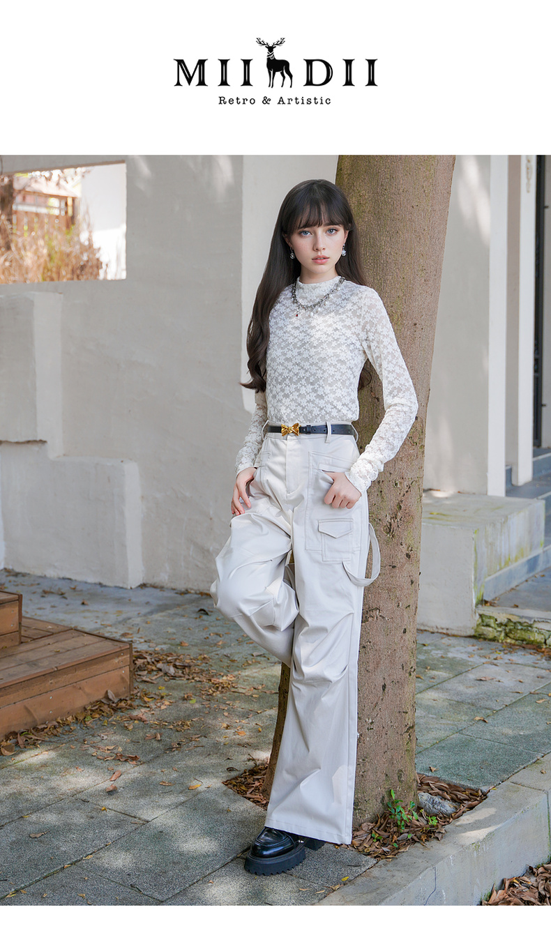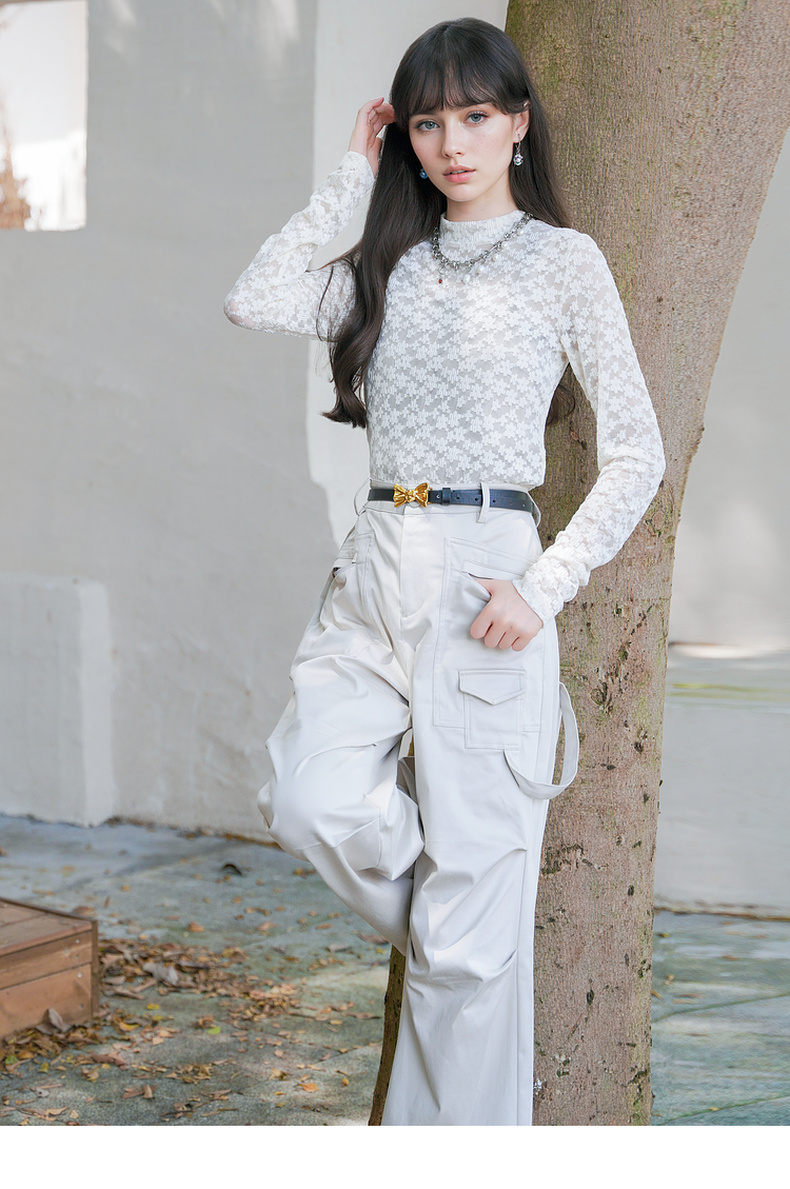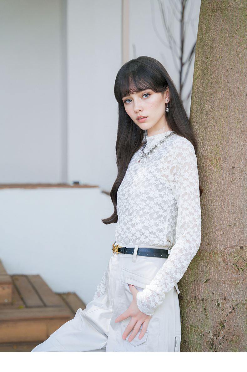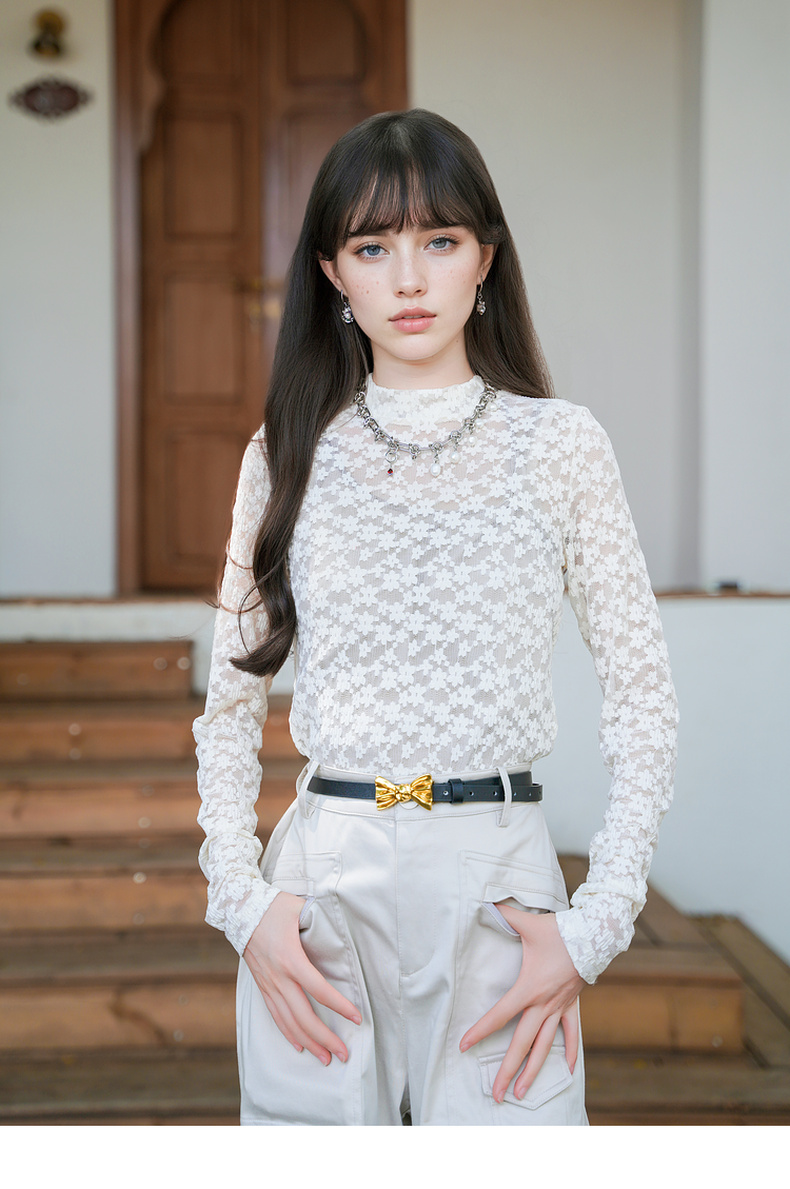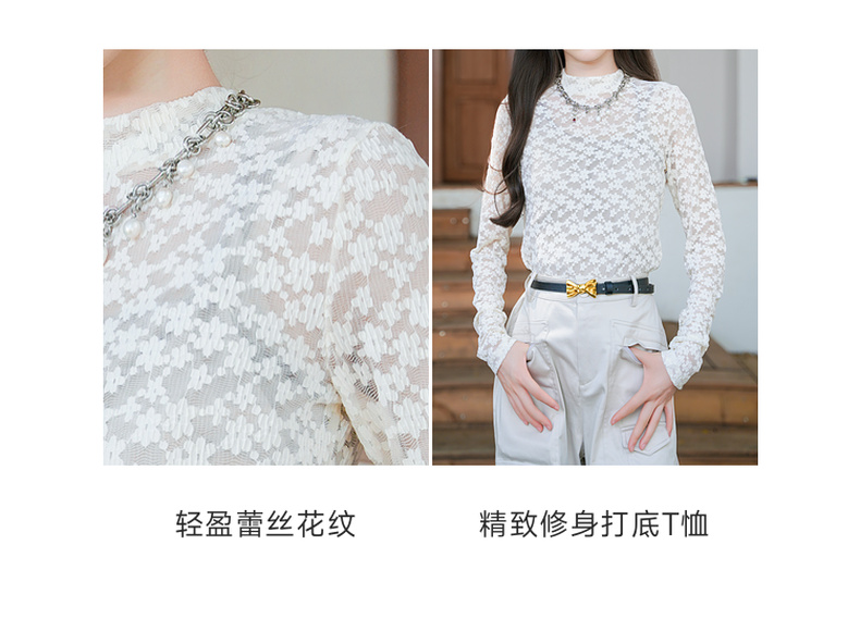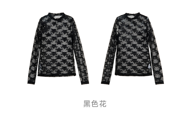 谜底蕾丝T恤长袖女2025秋新款复古文艺提花薄款内搭上衣257MT7858