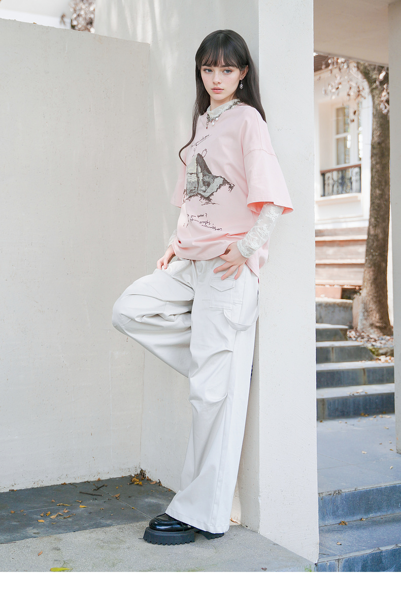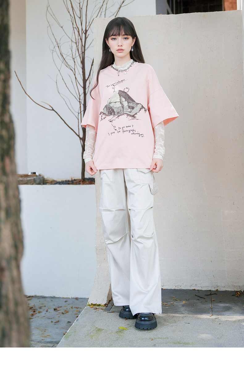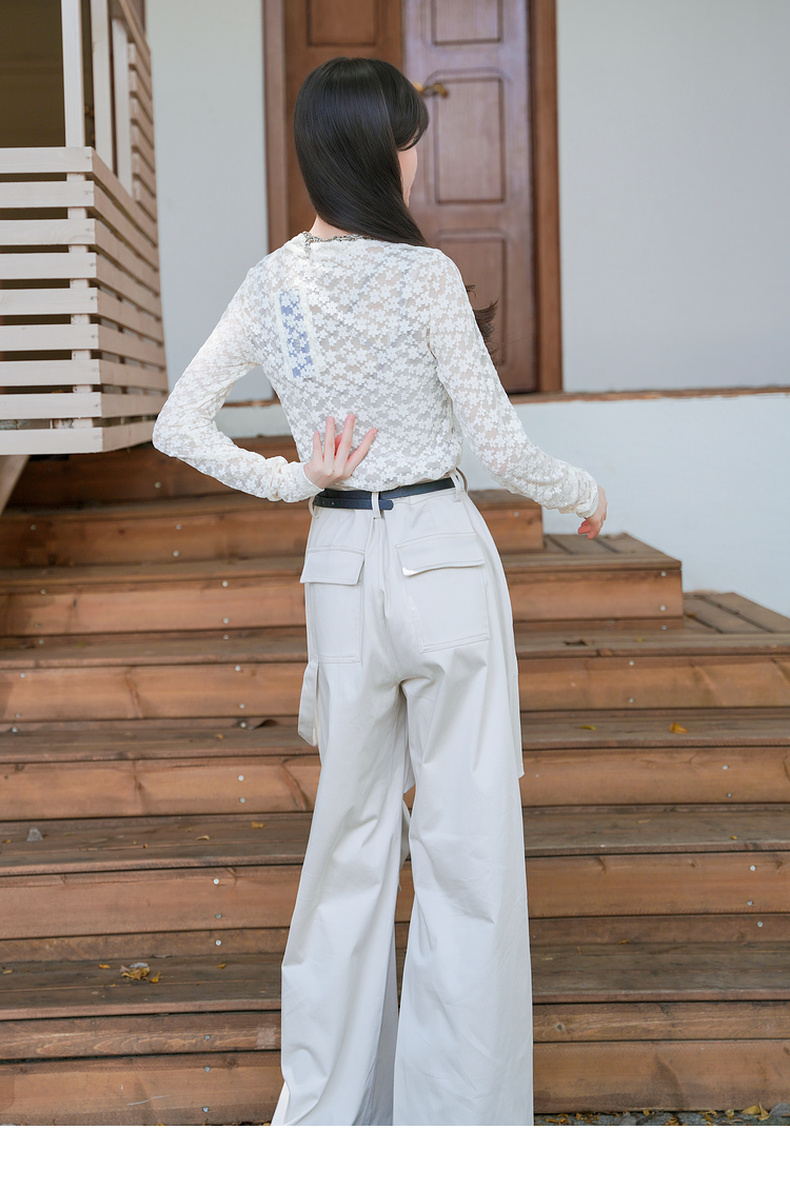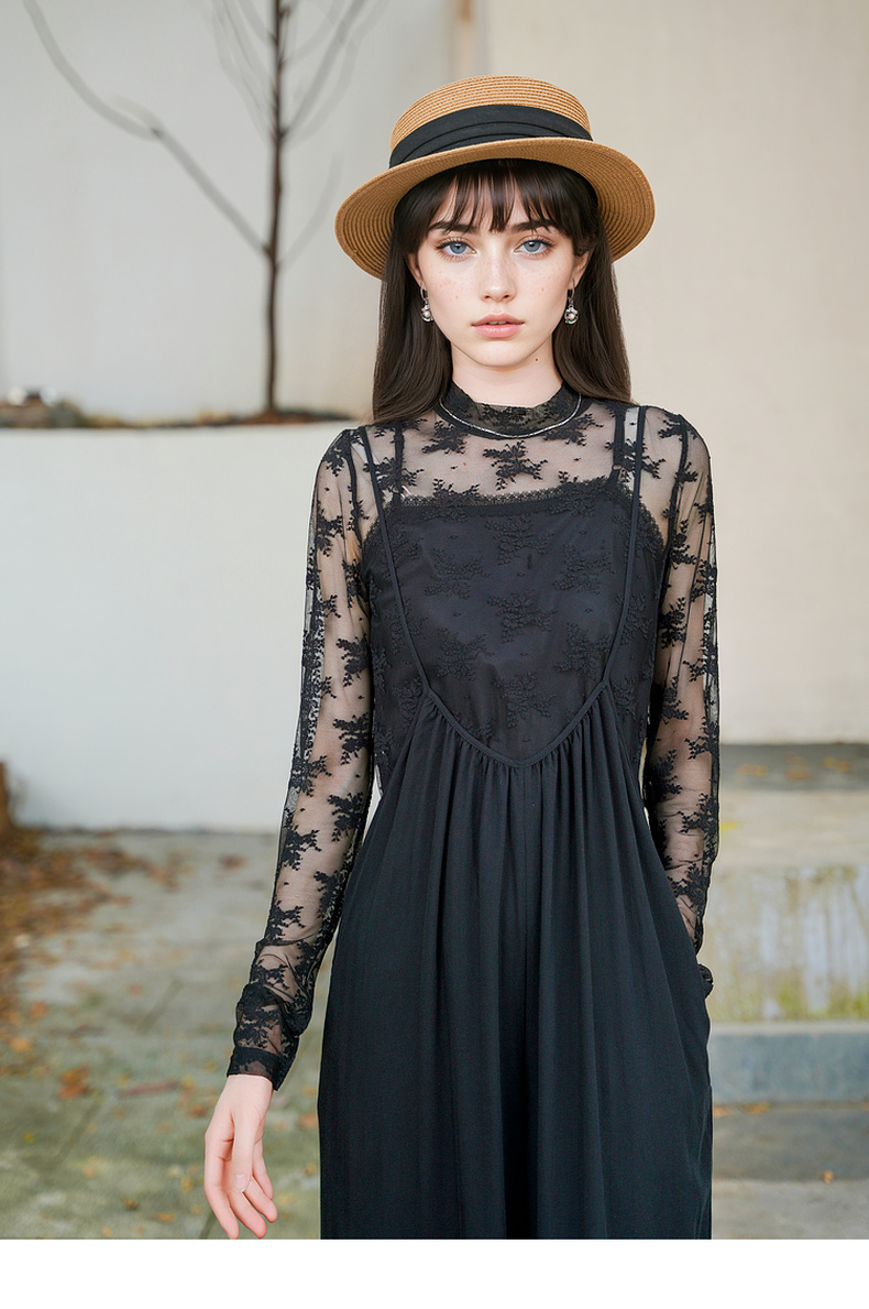 谜底蕾丝T恤长袖女2025秋新款复古文艺提花薄款内搭上衣257MT7858