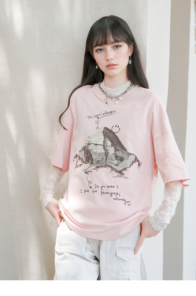 谜底白衬衫短袖女2025夏季新款百搭小翻领印花合体衬衣256MC6258