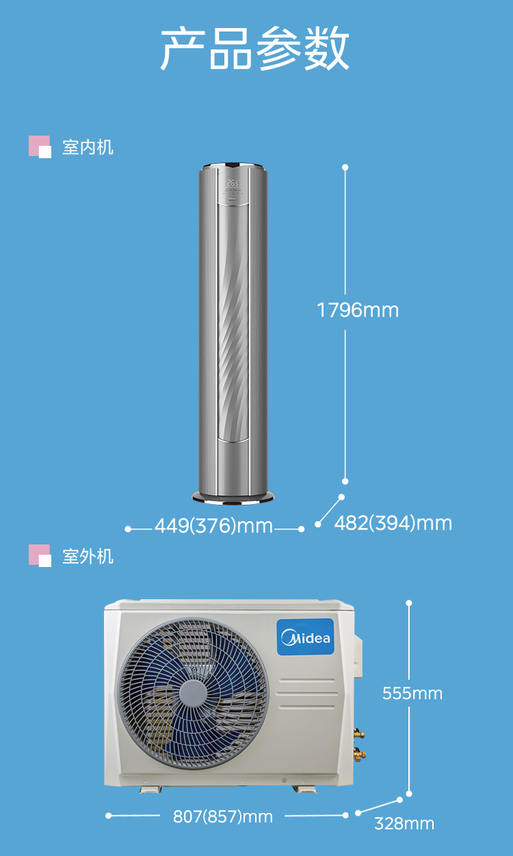 BDN8Y-YB233(1)A 变频 柜机套机 钛钢灰 美的