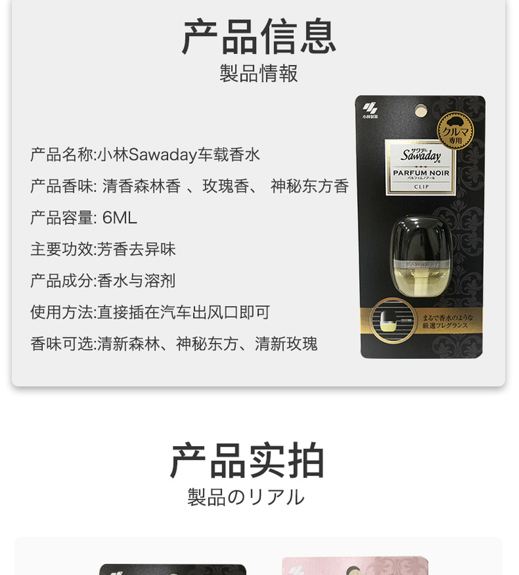 小林制药 出风口车载香水玫瑰香 粉色 6ml/个【不足200元订单,默认顺丰快递到付】