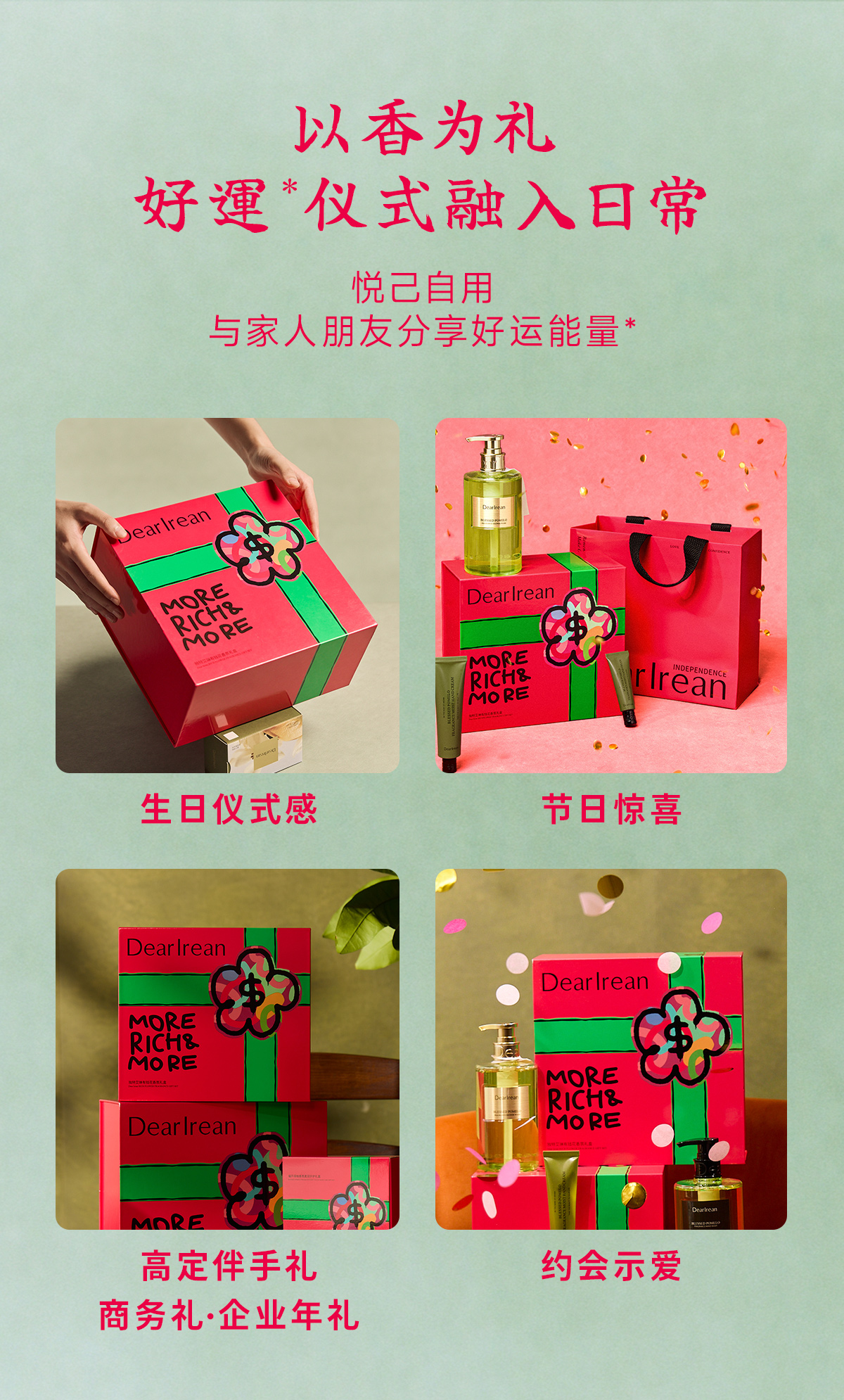 - DearIrean 独特艾琳,高定香氛生活品牌,拥有体•研究所,品牌致力于将高定香氛带入生活,同时倡导“以香之名,带给生活美好方式”的品牌理念,传递精致女性的爱、独立、自信。