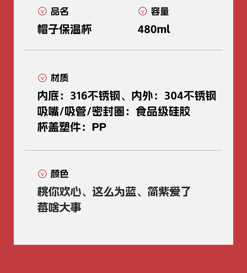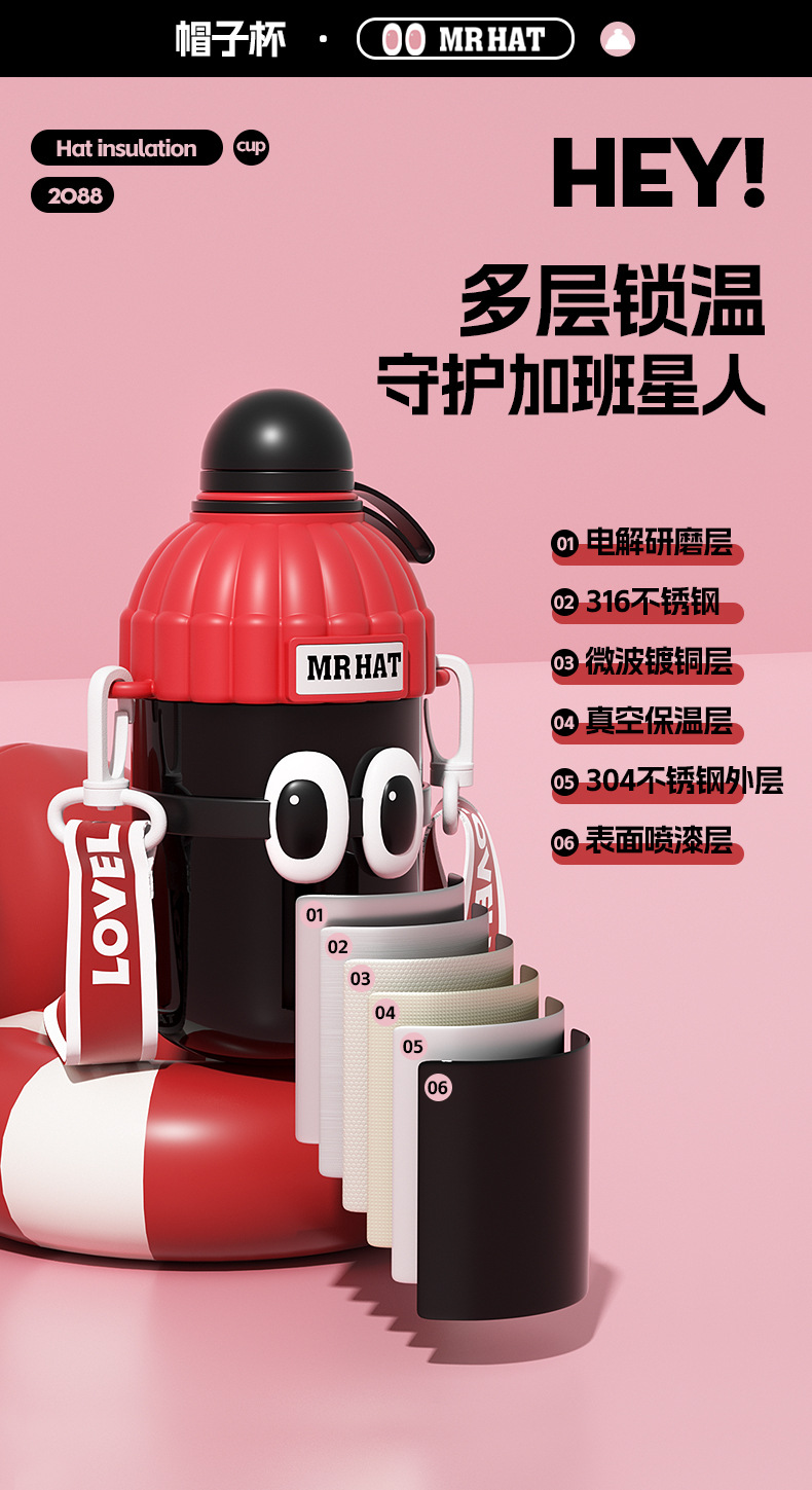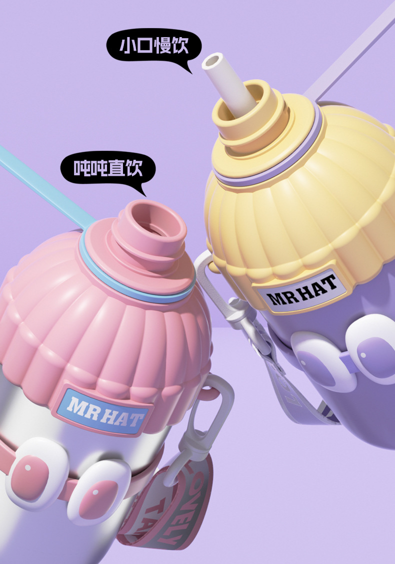 创意316不锈钢保温杯男女大容量吸管杯真空高颜值水杯潮流随手杯